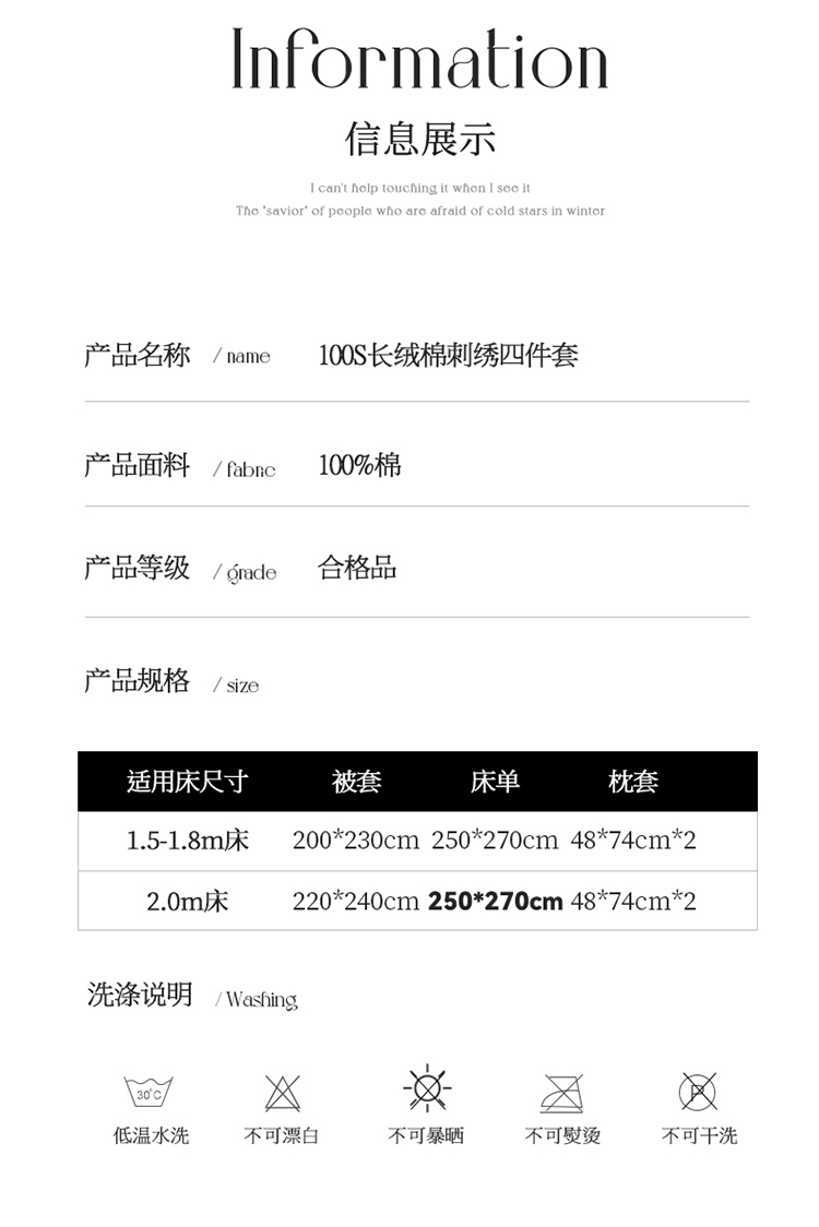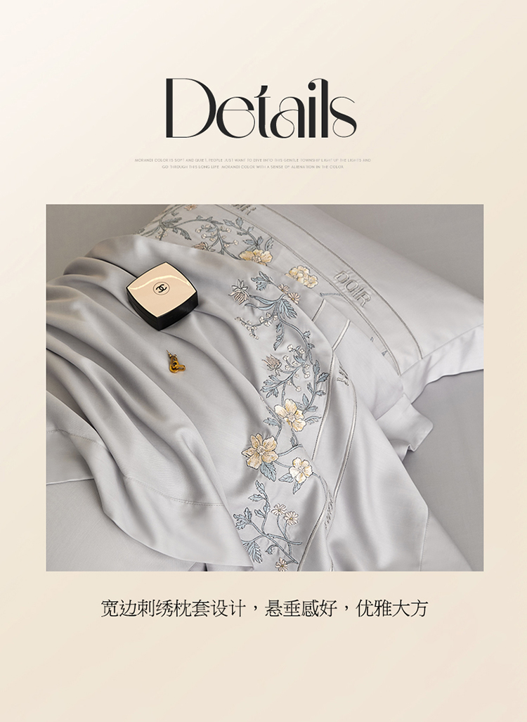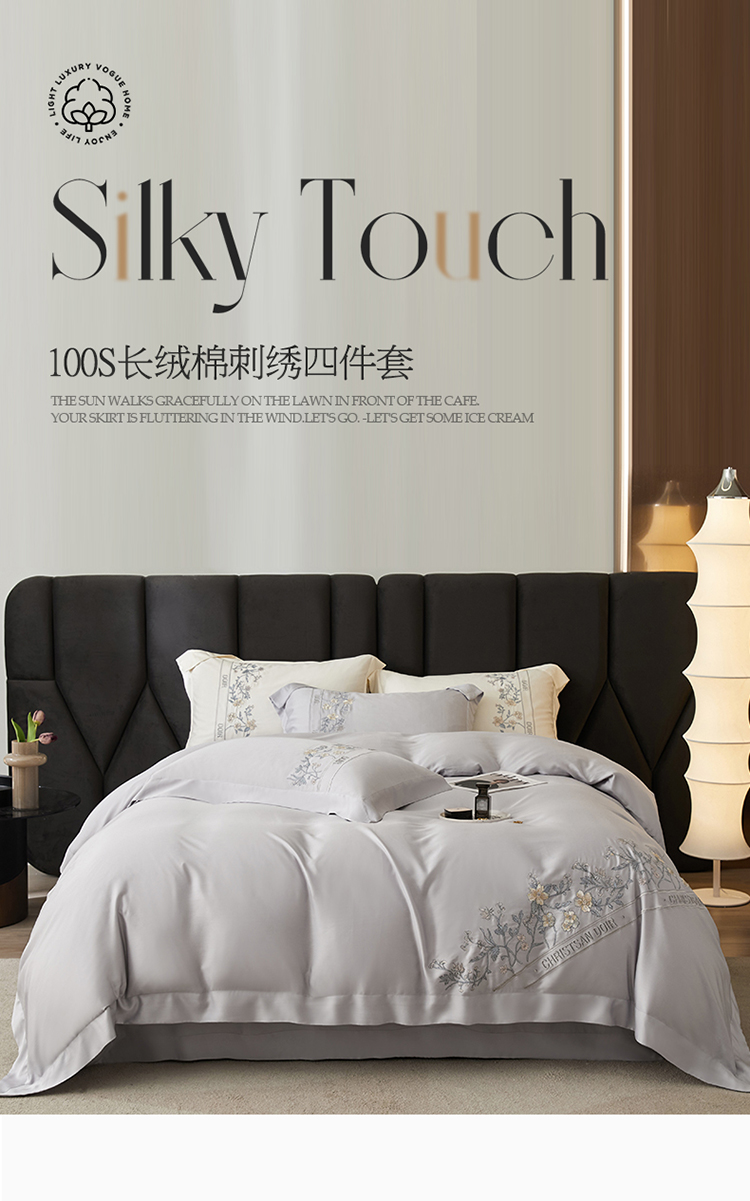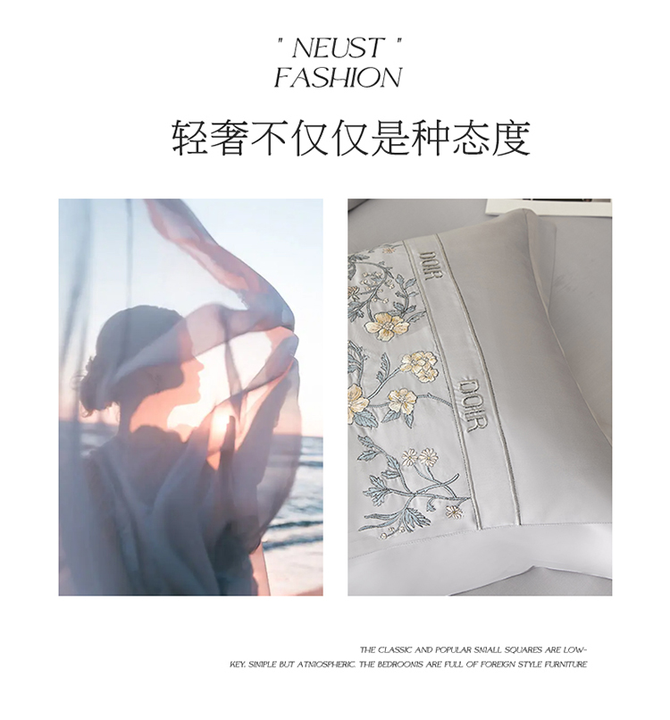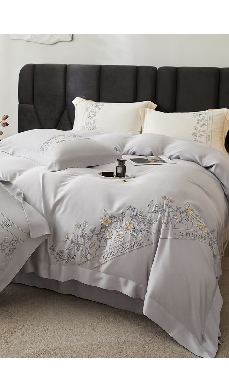 商品名称:名品优仓 2023新款高支高密长绒棉刺绣款四季可用四件套梦之境系列 梦之境(气质灰)