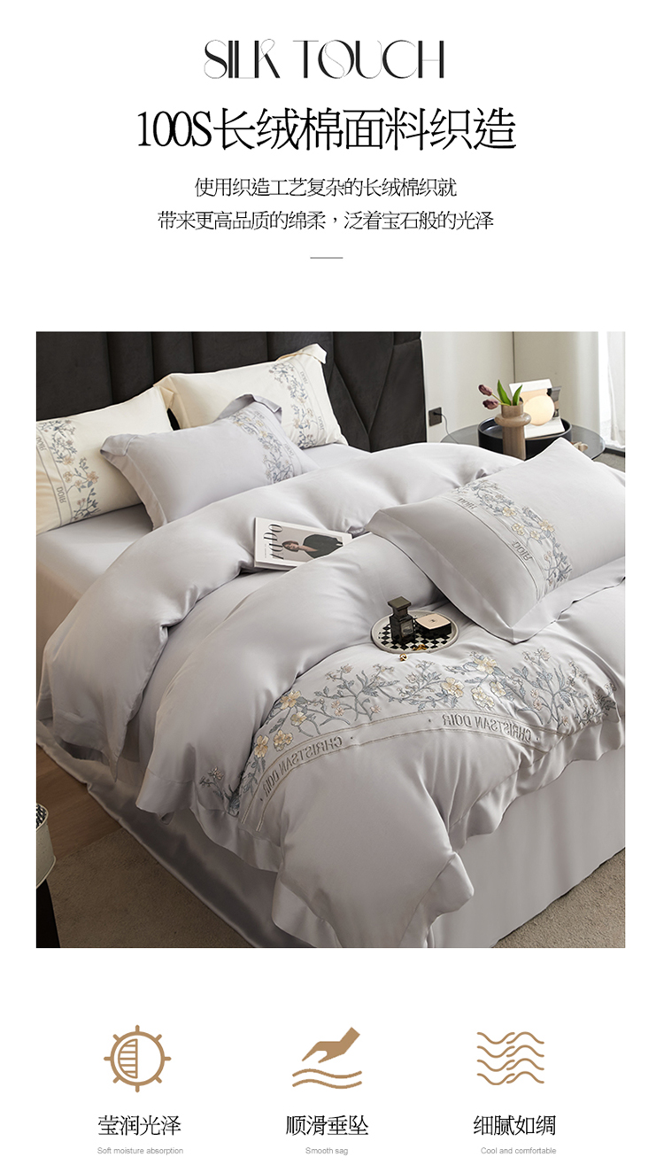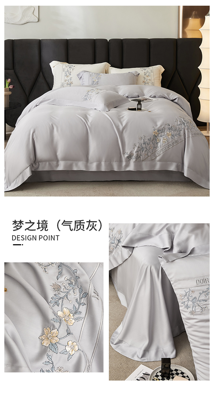 名品优仓 2023新款高支高密长绒棉刺绣款四季可用四件套梦之境系列 梦之境(气质灰)