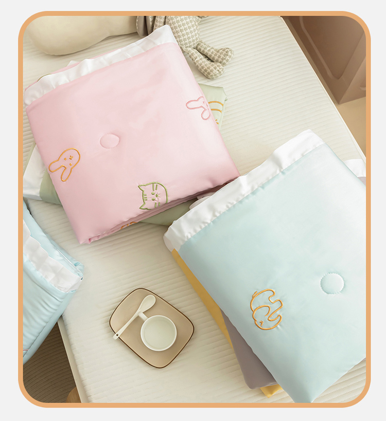 (总)喜多兔2025新款高精密人字棉贴布绣奶里奶气夏被夏凉被,粉色奶气小兔,黄色奶气小狗,咖色奶气小熊,蓝色奶气小象,绿色奶气小猫