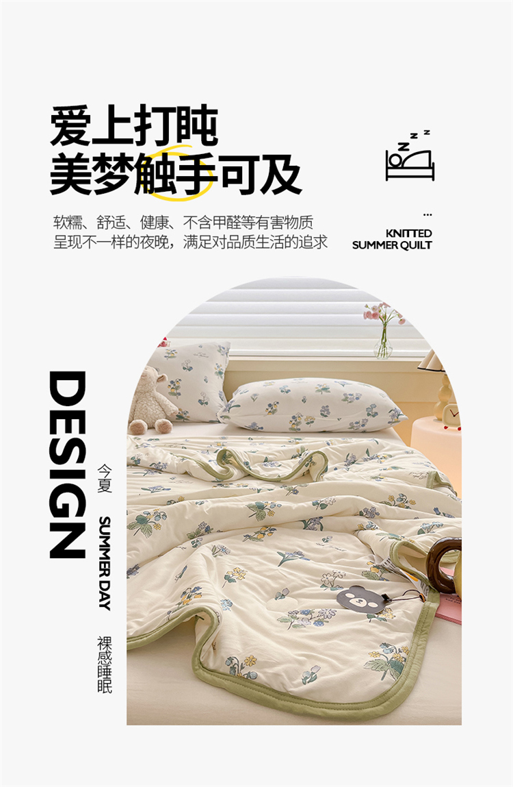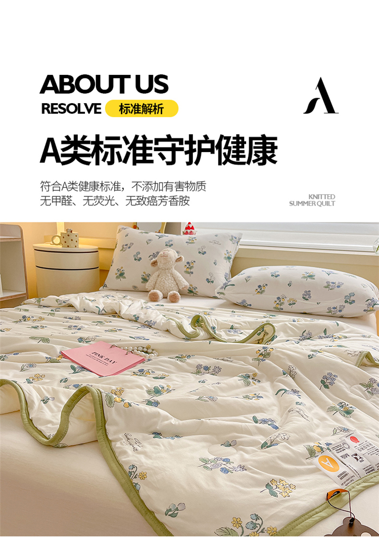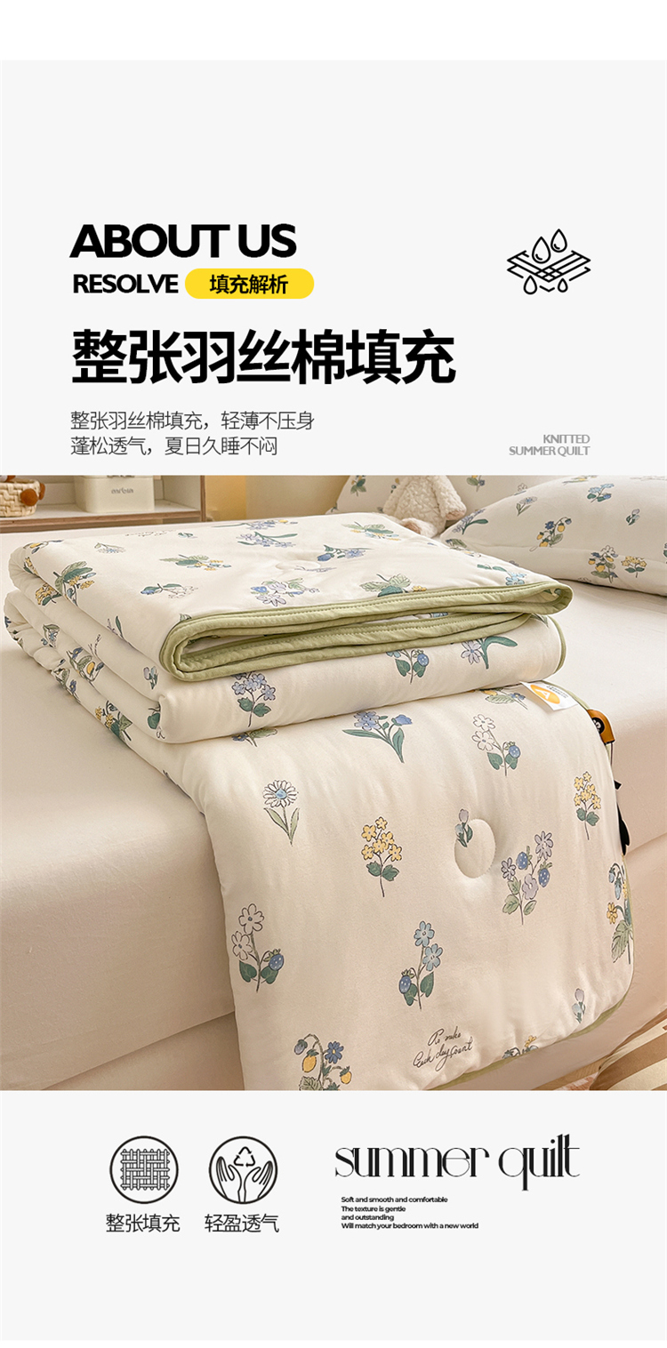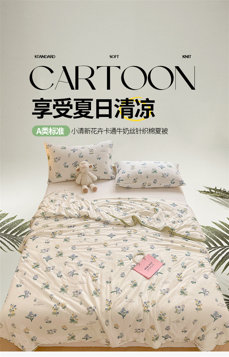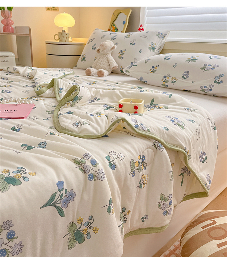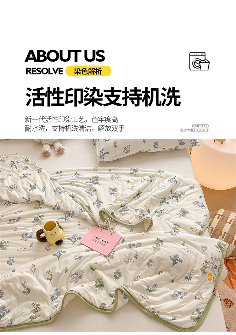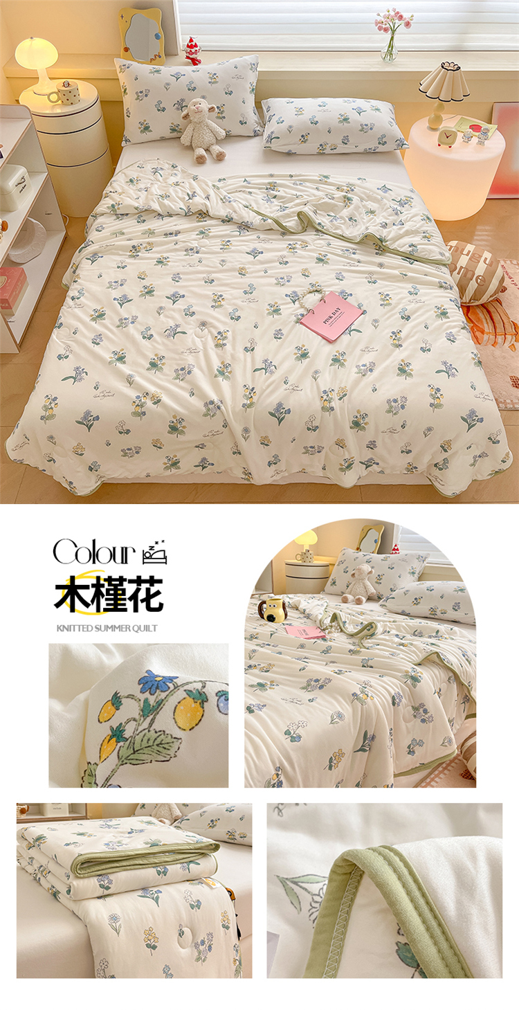 商品名称:桃子 2023新款A类ins高品质小清新花卉卡通牛奶丝针织棉夏被 针织棉夏被-木槿花