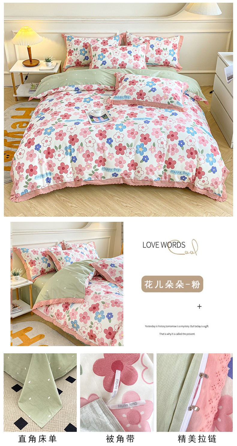 当前位置: 91家纺网 > 商品网购 > 床品套件 > 四件套 > 全棉普通四件套 > 宇彬20223年新款13372全棉韩版刺绣花边和印花花边四件套和单被套 刺绣花边 花儿朵朵-粉