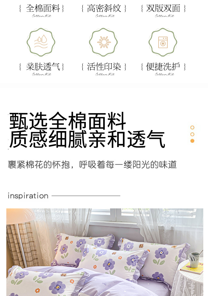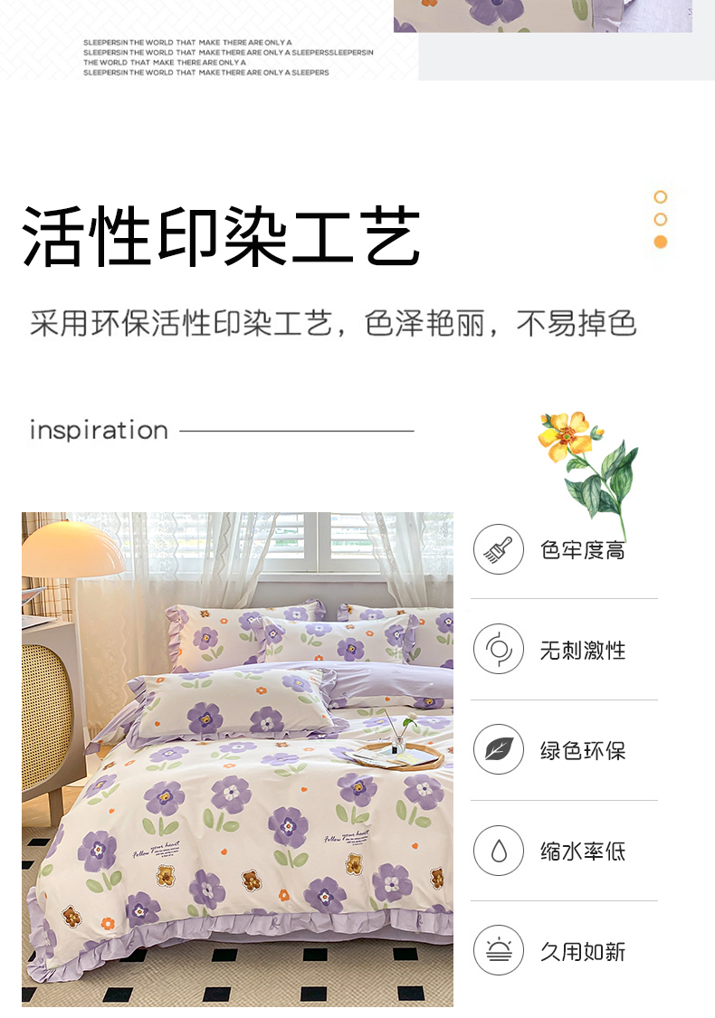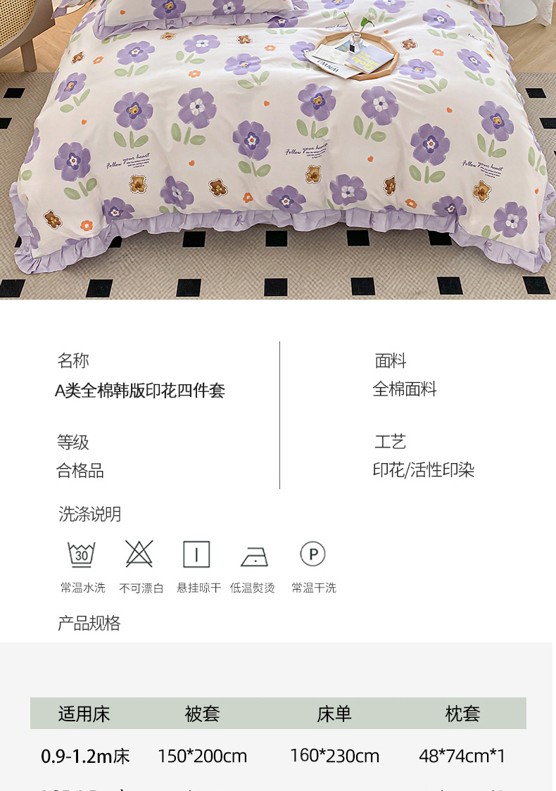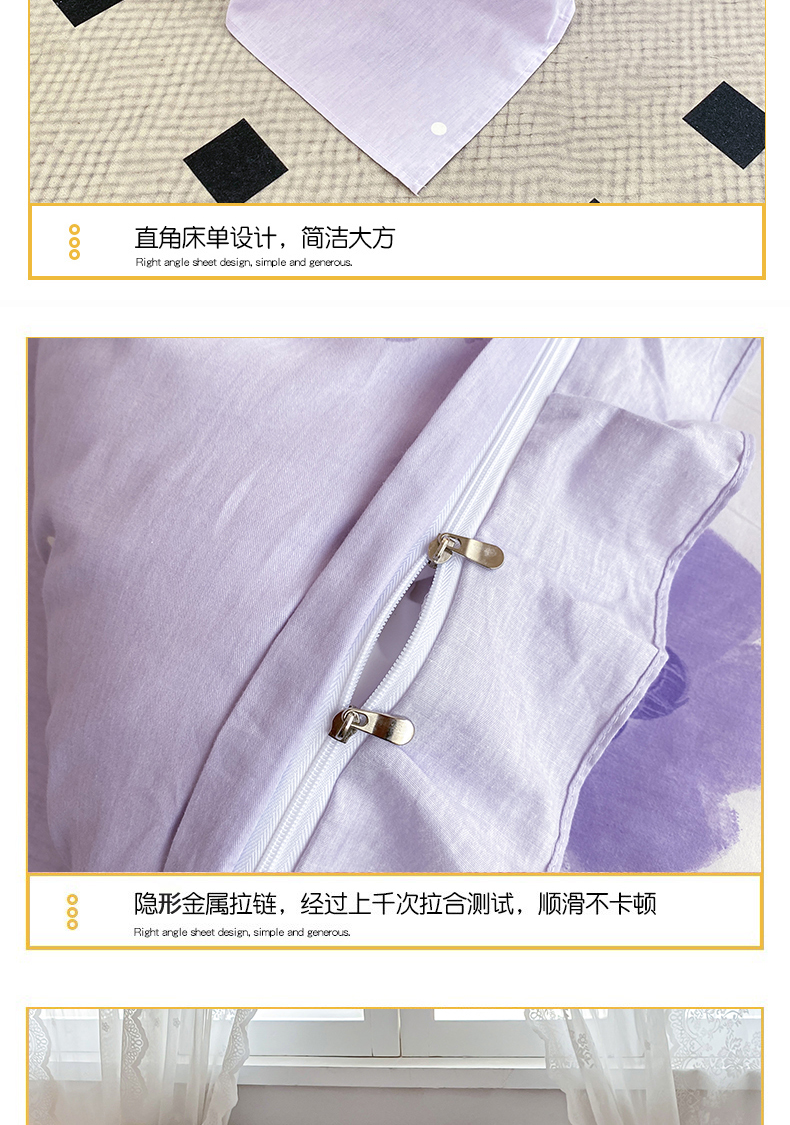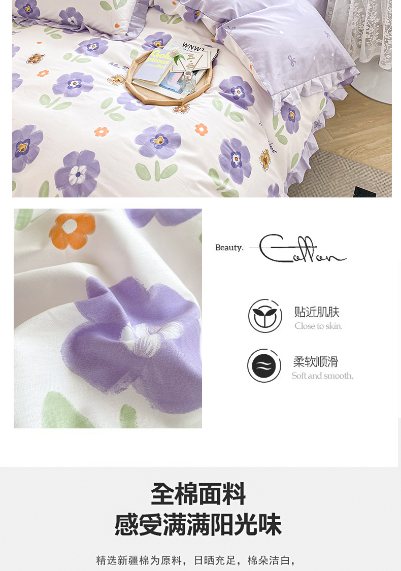 当前位置: 91家纺网 > 商品网购 > 床品套件 > 四件套 > 全棉普通四件套 > 宇彬20223年新款13372全棉韩版刺绣花边和印花花边四件套和单被套 印花花边 花田美事-紫