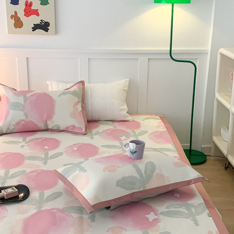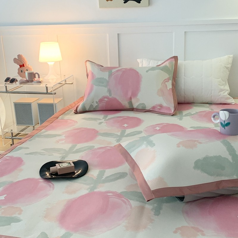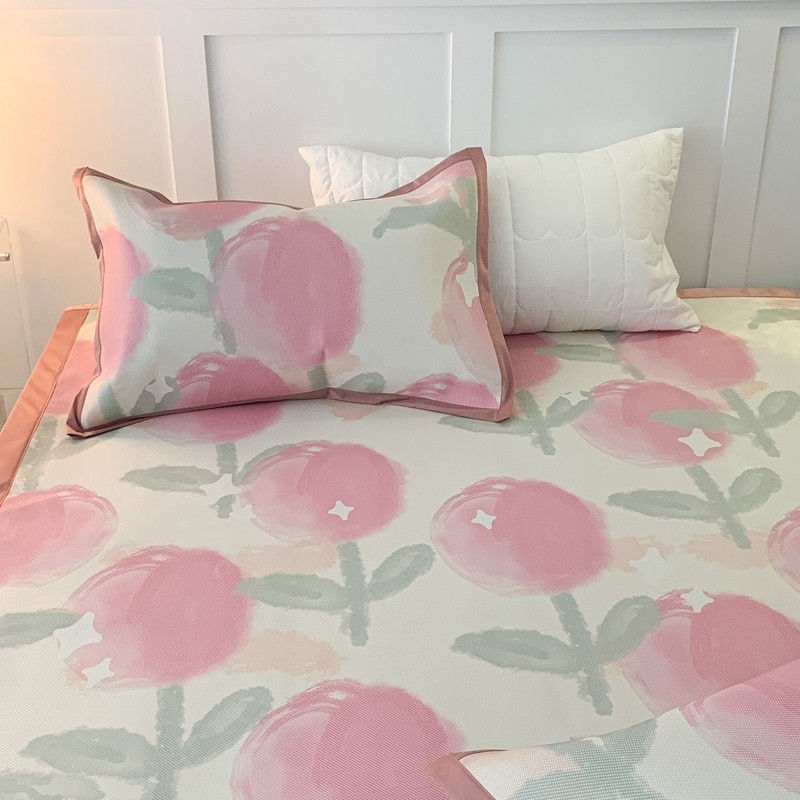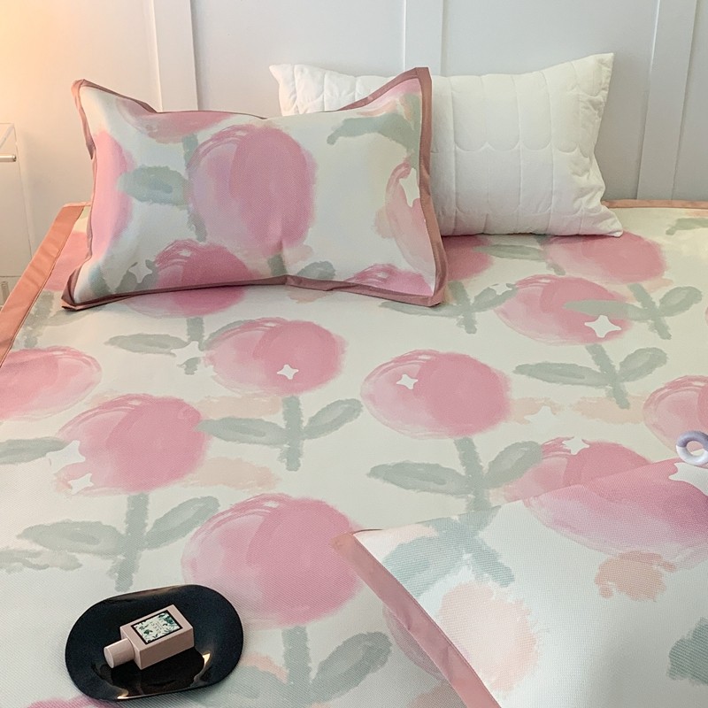 商品名称:昔可 2023新款高端数码冰藤席床席款凉席 粉水彩郁金香