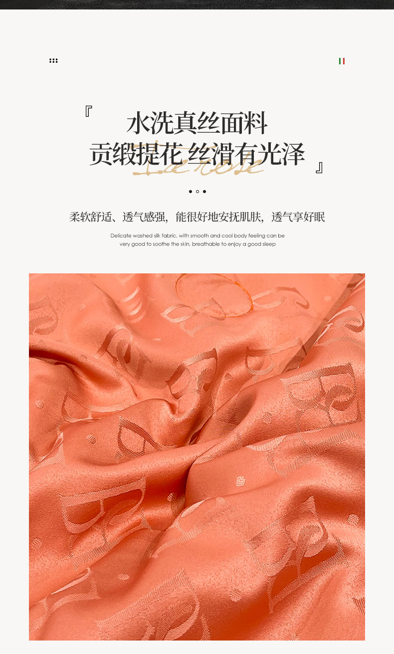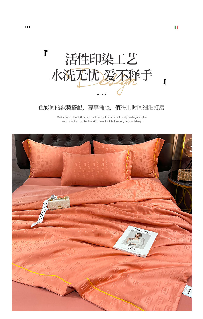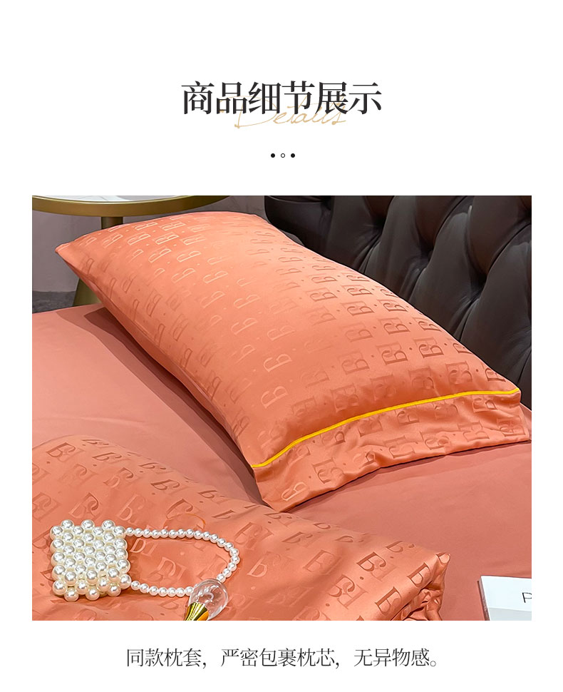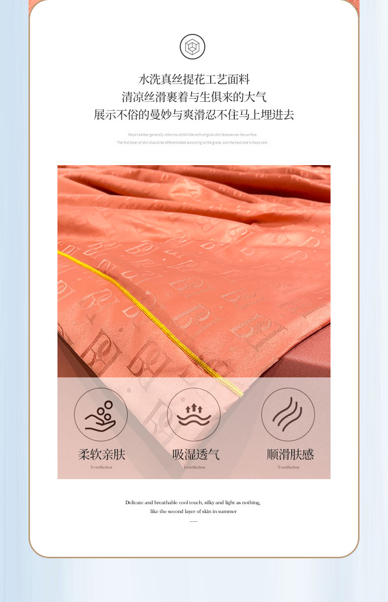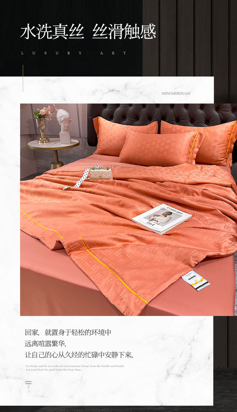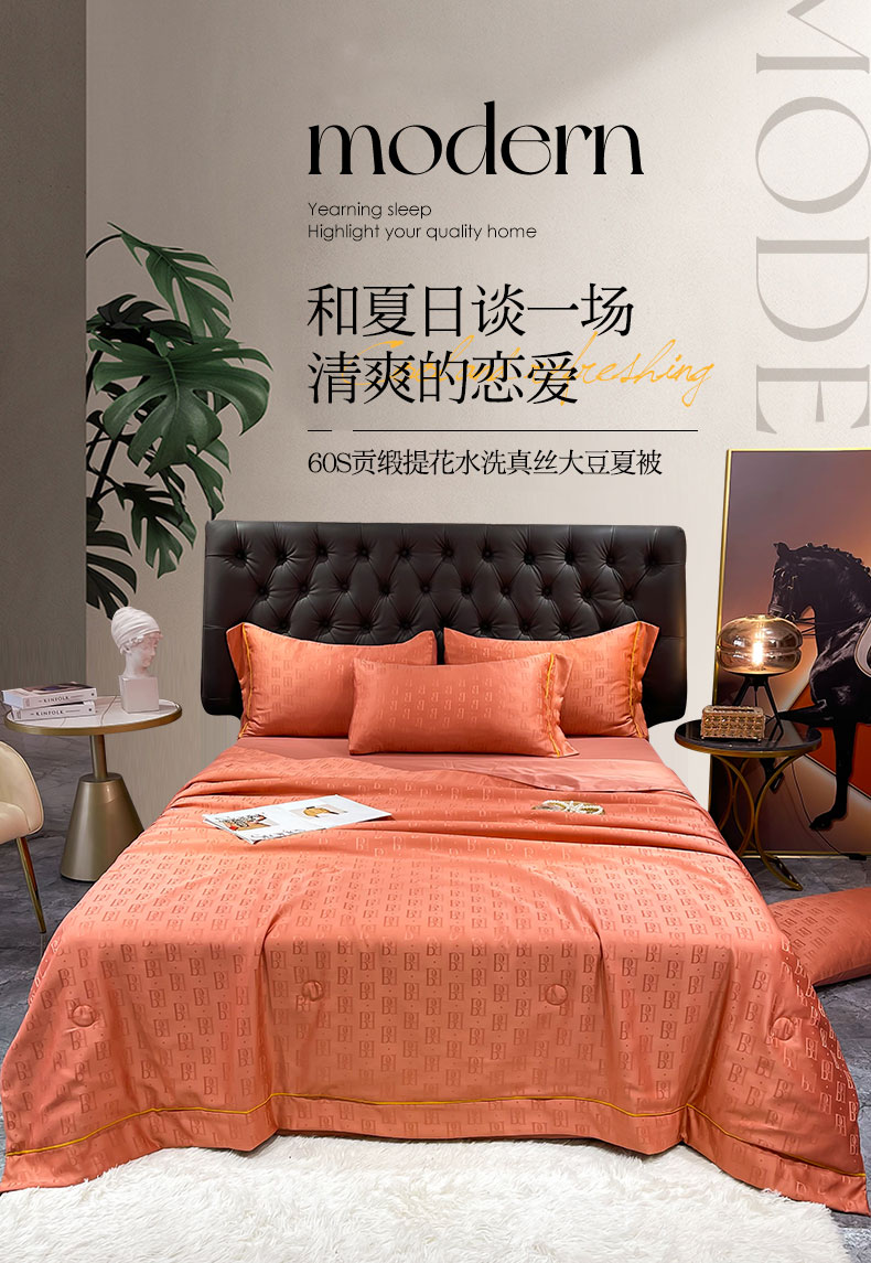 • 91家纺网 家纺一手货源 找家纺 慕晨 2023新款60s贡缎提花水洗真丝大豆夏被 巴格莉-艾玛橙