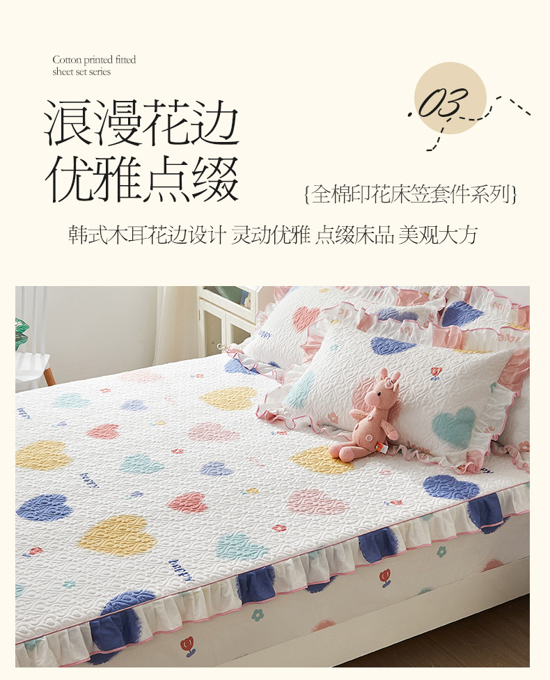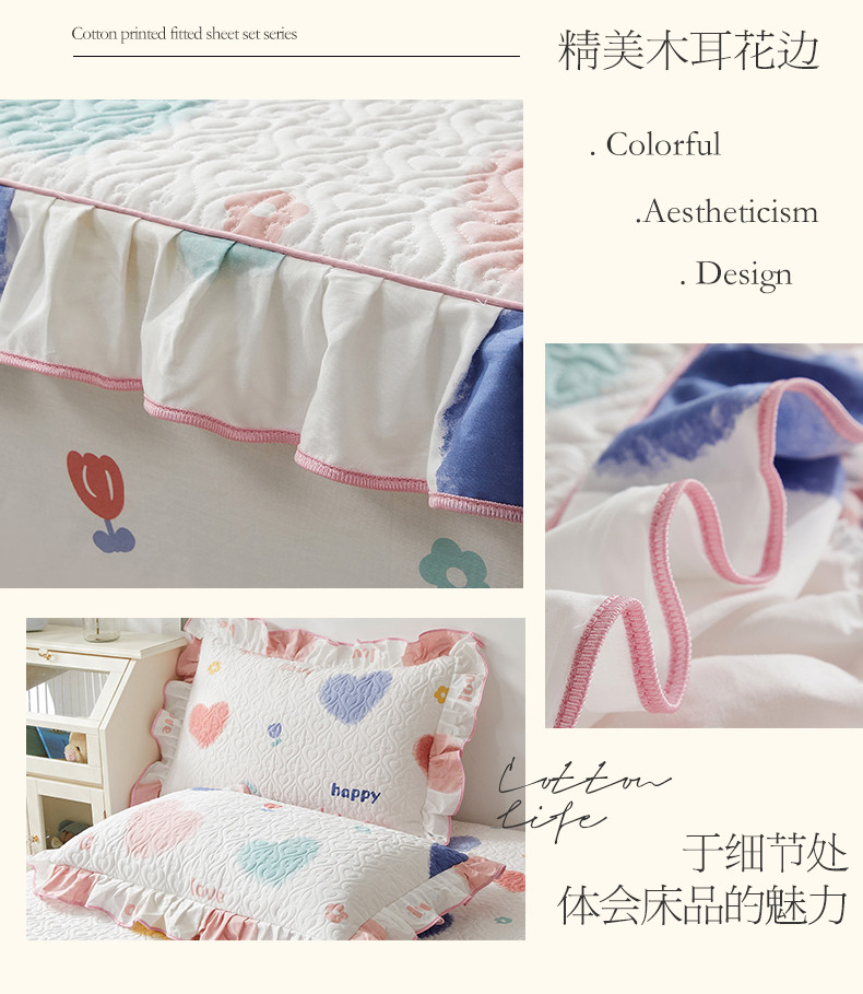 宜凡 2023新款全棉印花床笠三件套 七彩童心