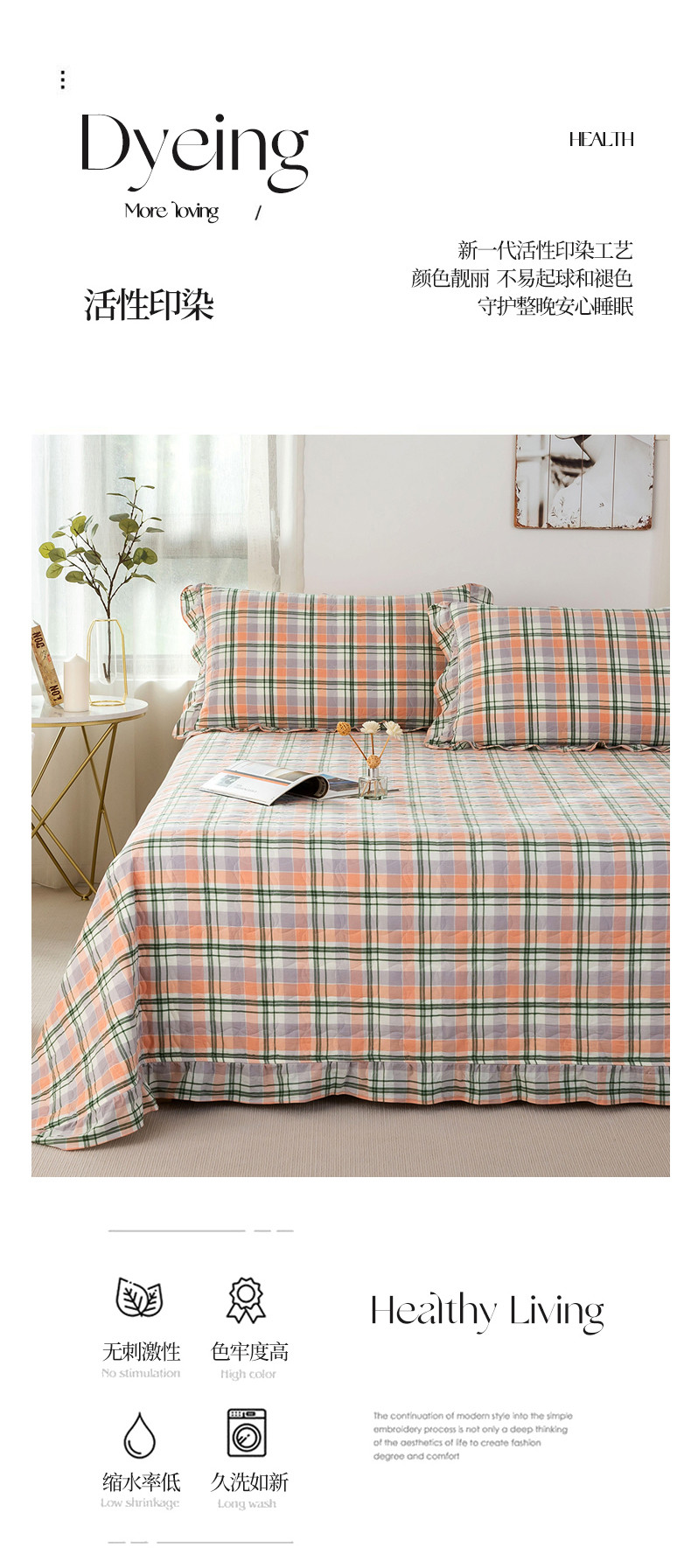 商品名称:优姿 2024新款全棉色织水洗棉床盖格子系列床盖三件套 格子绿桔