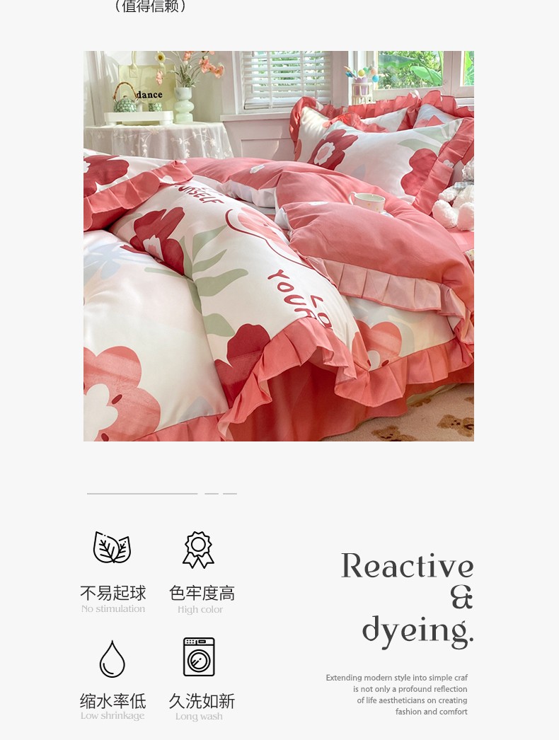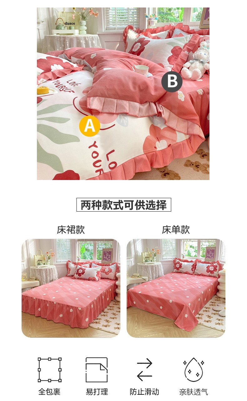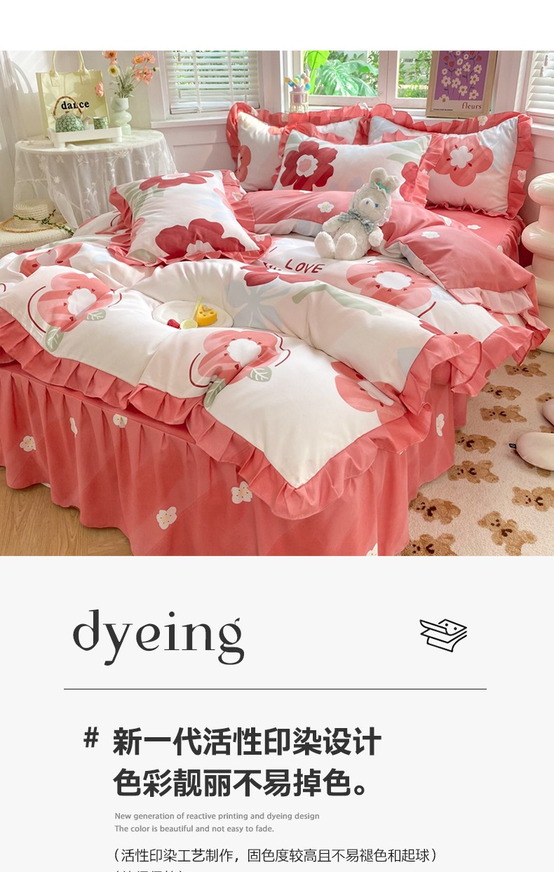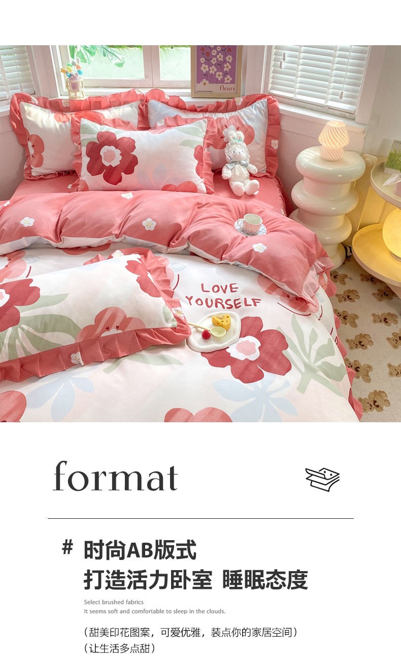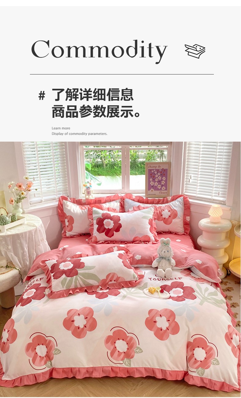 当前位置: 91家纺网 > 商品网购 > 床品套件 > 四件套 > 磨绒四件套 > 秋艳 新款直播电商爆款韩版公主风加厚磨毛植物羊绒床裙四件套 桃花印记