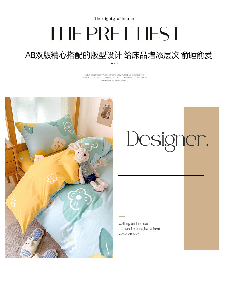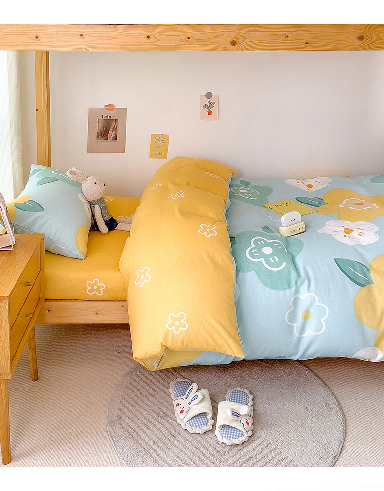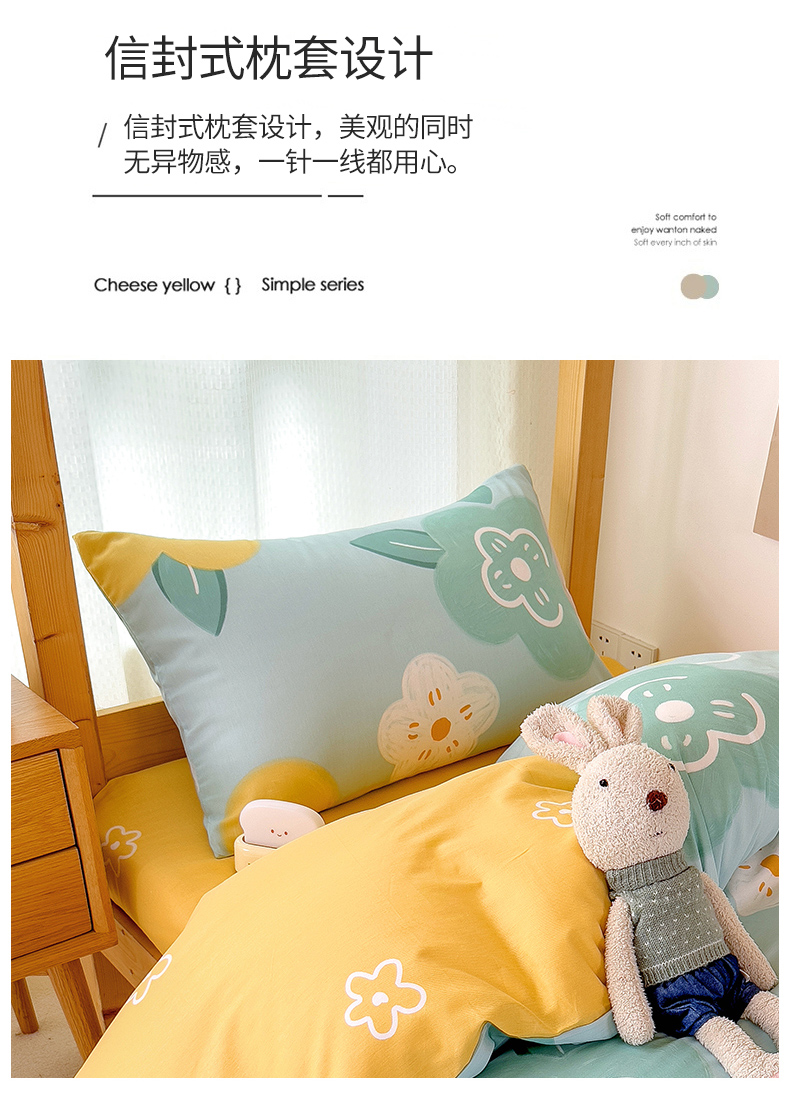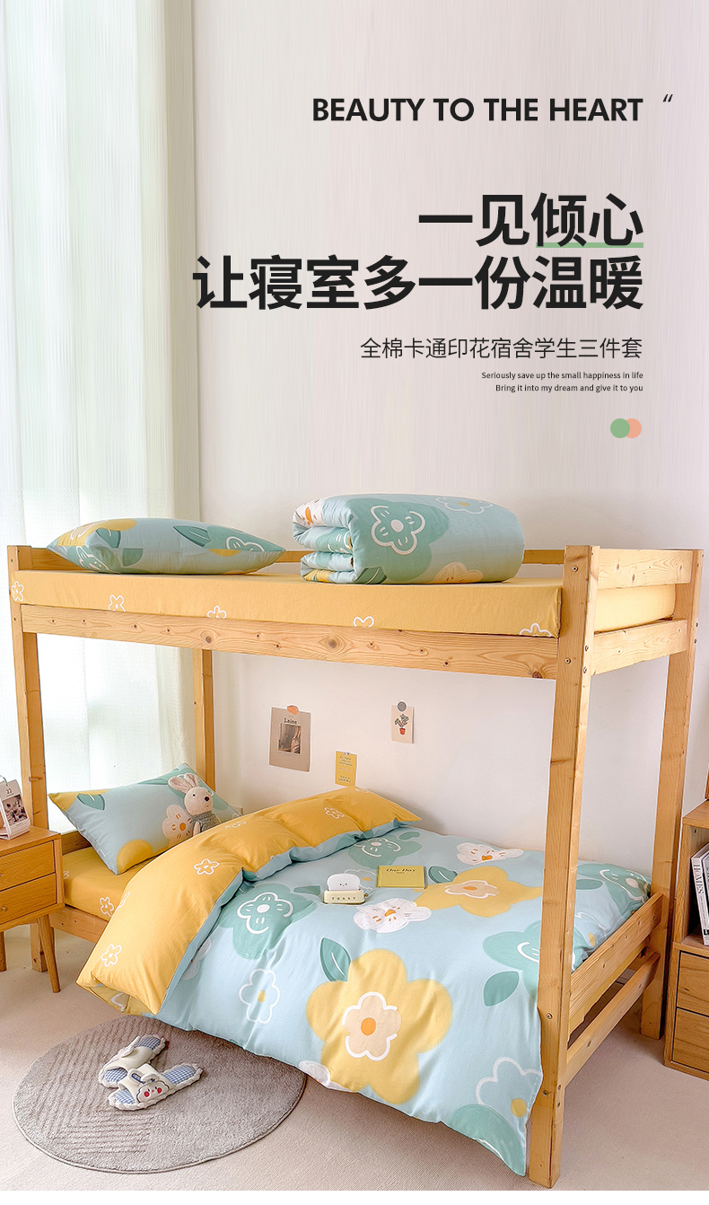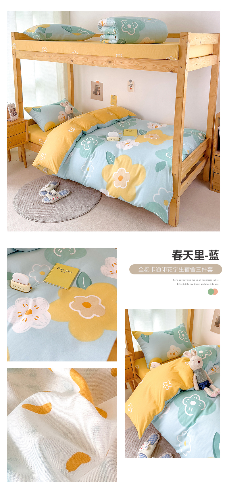 芃成家纺 2023新款全棉13070卡通印花学生三件套 春天里-蓝