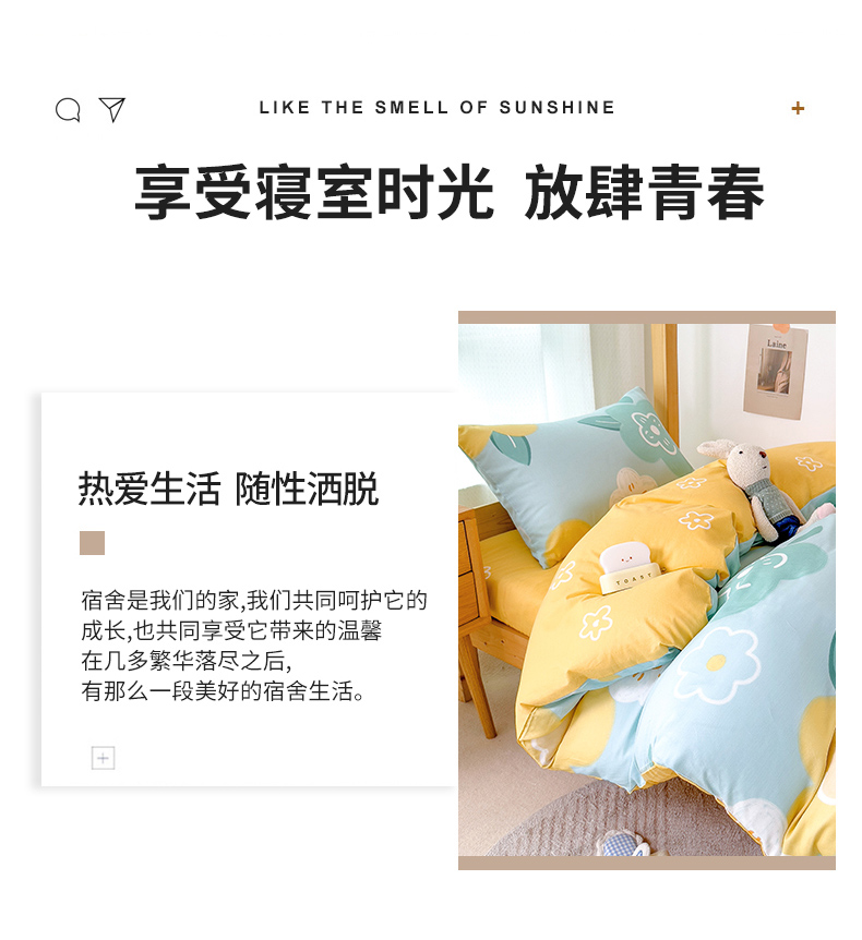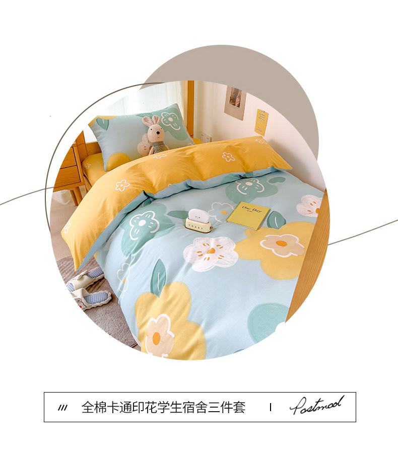 商品名称:芃成家纺 2023新款全棉13070卡通印花学生三件套 春天里-蓝