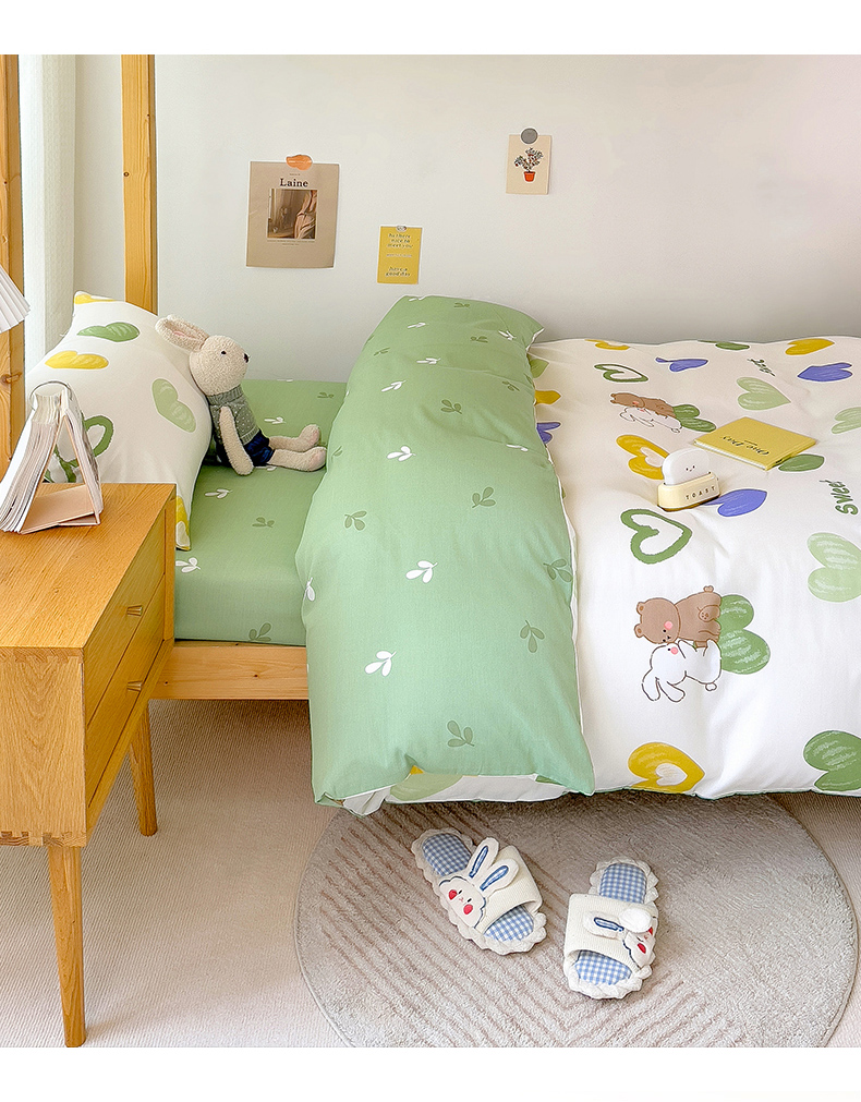 芃成家纺 2023新款全棉13070卡通印花学生三件套 两小无猜-绿