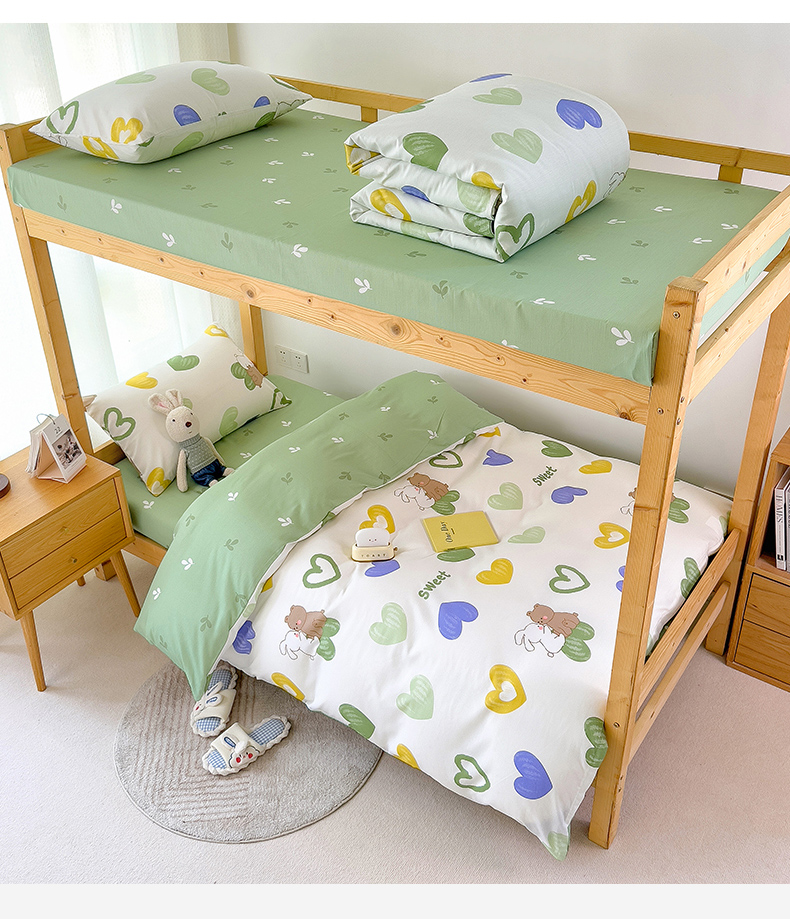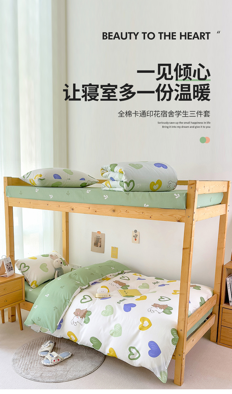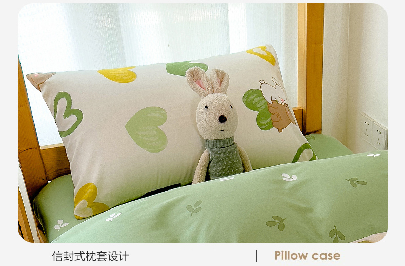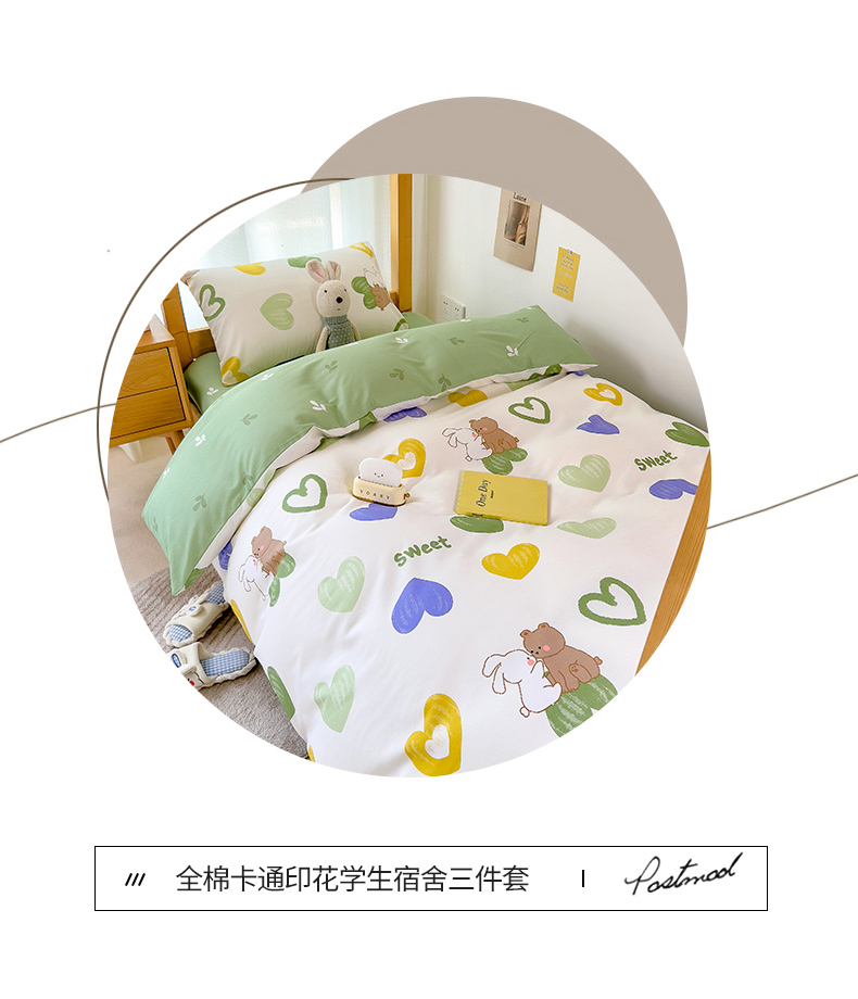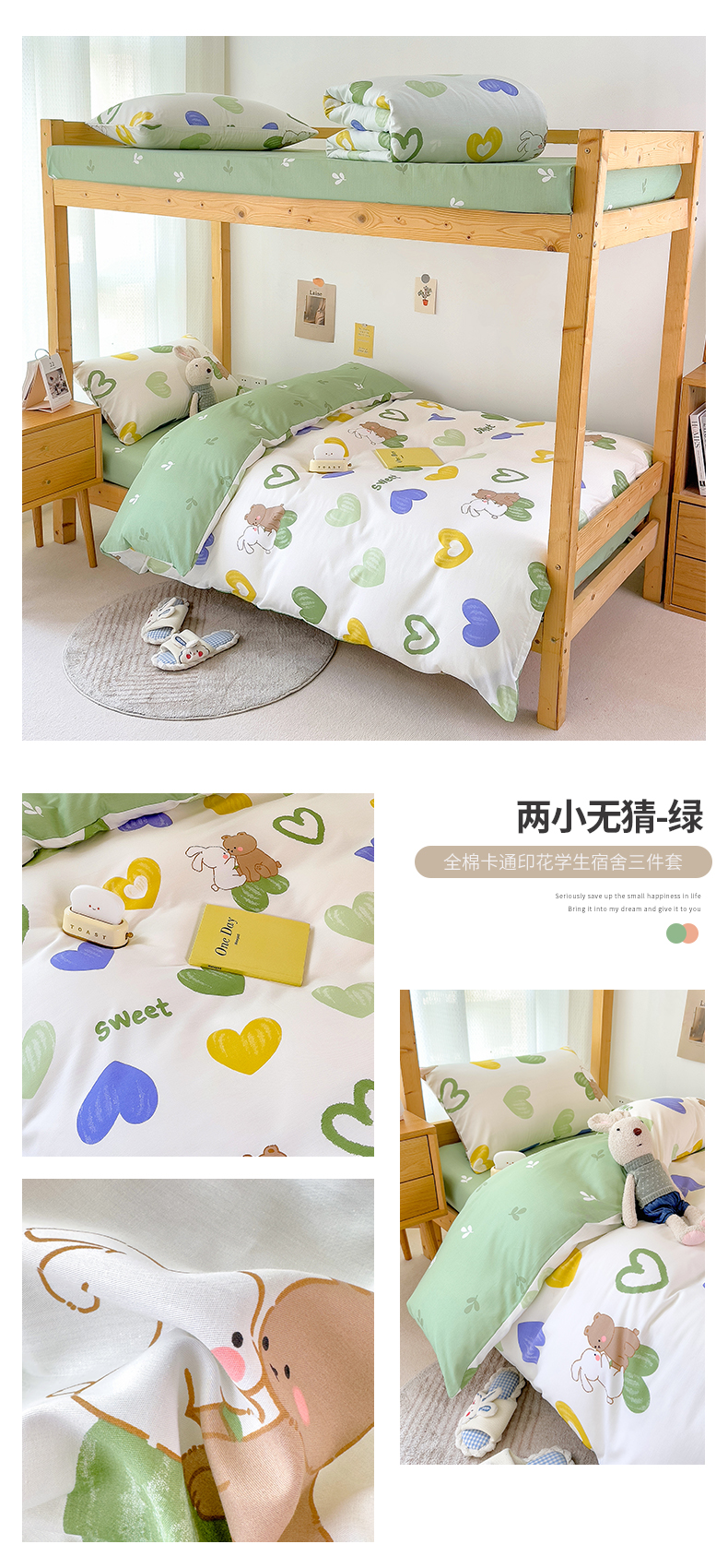 商品名称:芃成家纺 2023新款全棉13070卡通印花学生三件套 两小无猜-绿