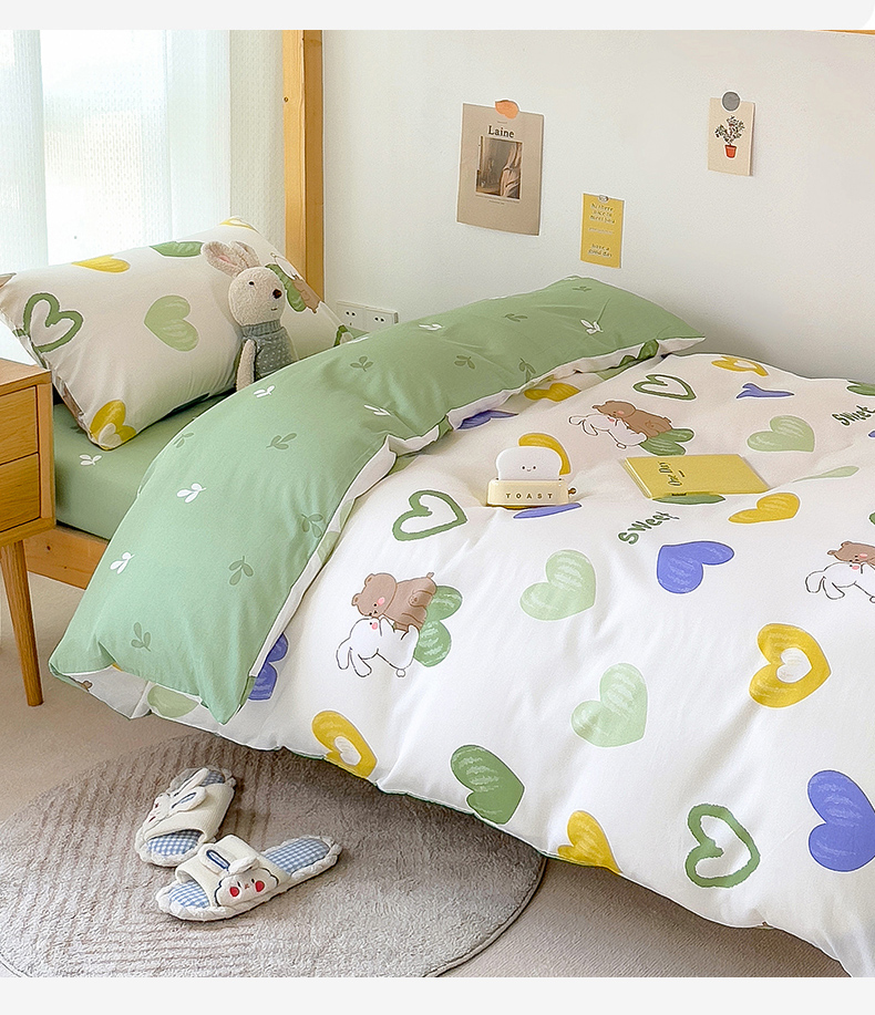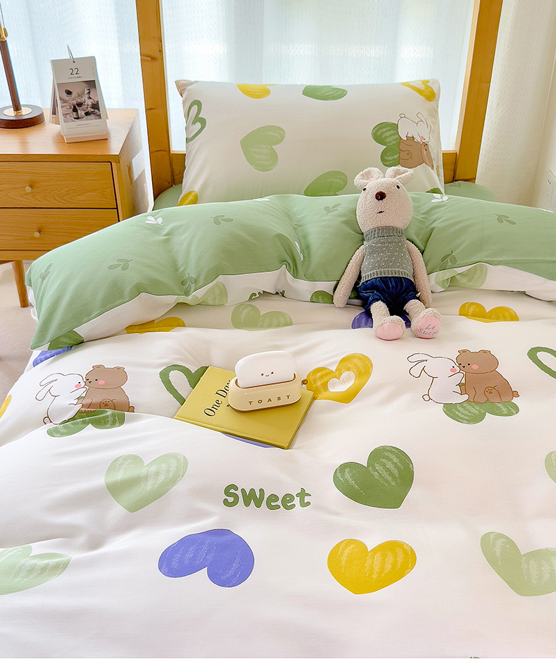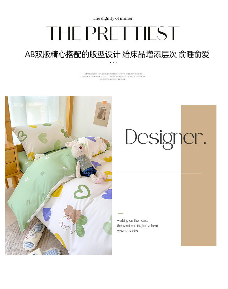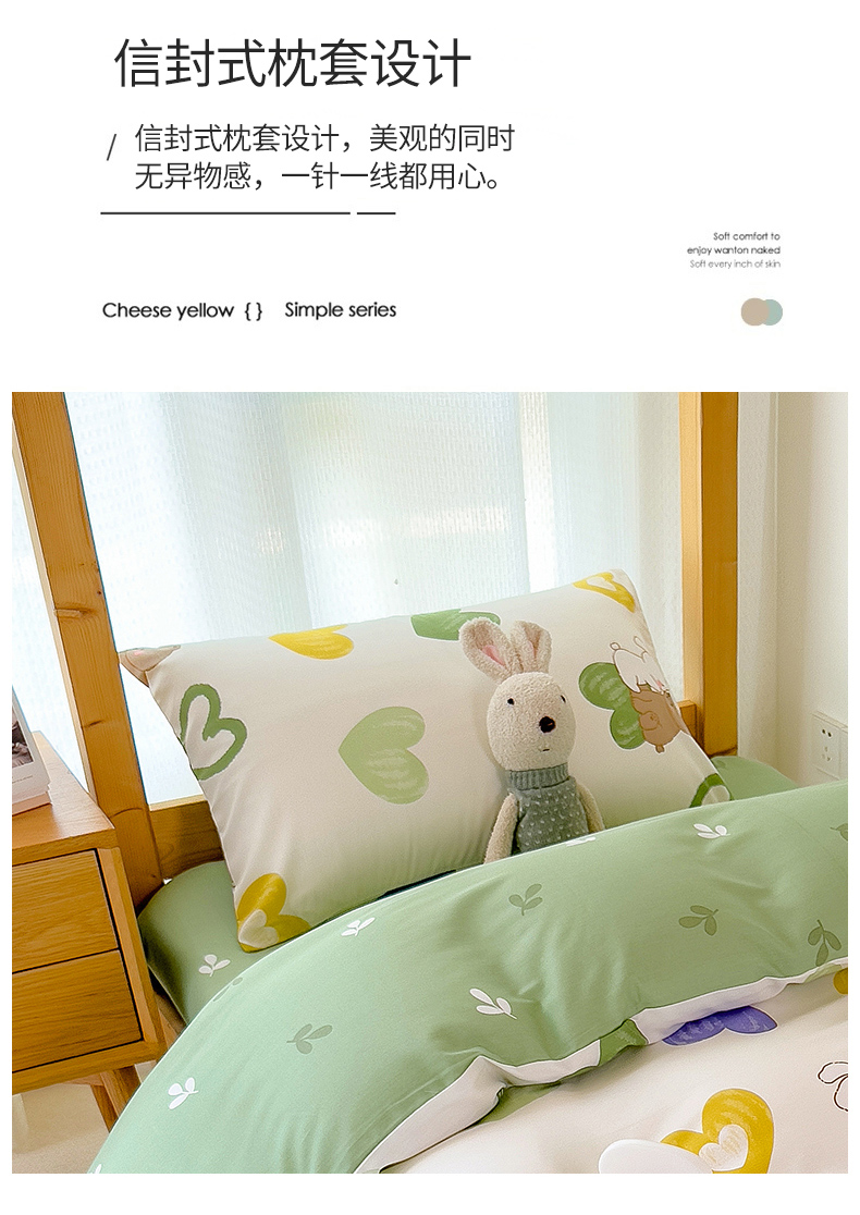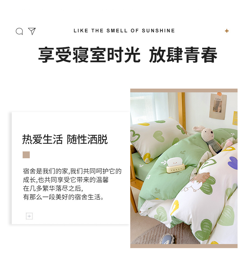 商品名称:芃成家纺 2023新款全棉13070卡通印花学生三件套 两小无猜-绿