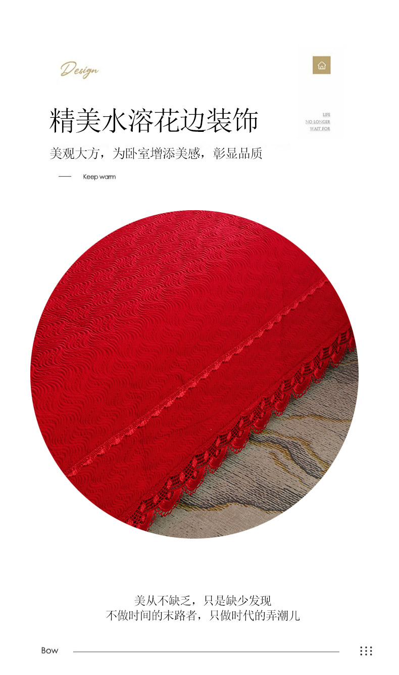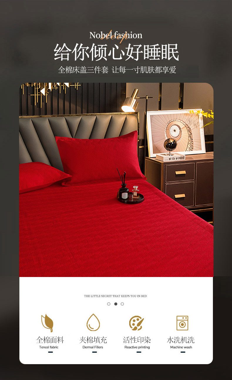 商品名称:OL家纺 2023新款全棉水溶花边素色床盖夹棉三件套 大红