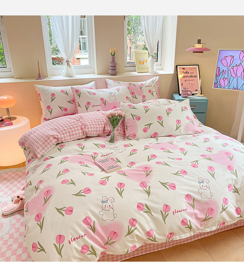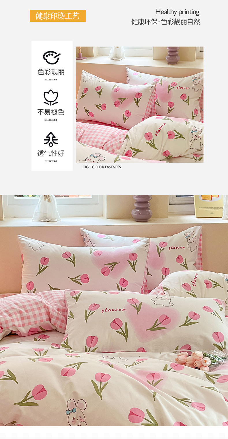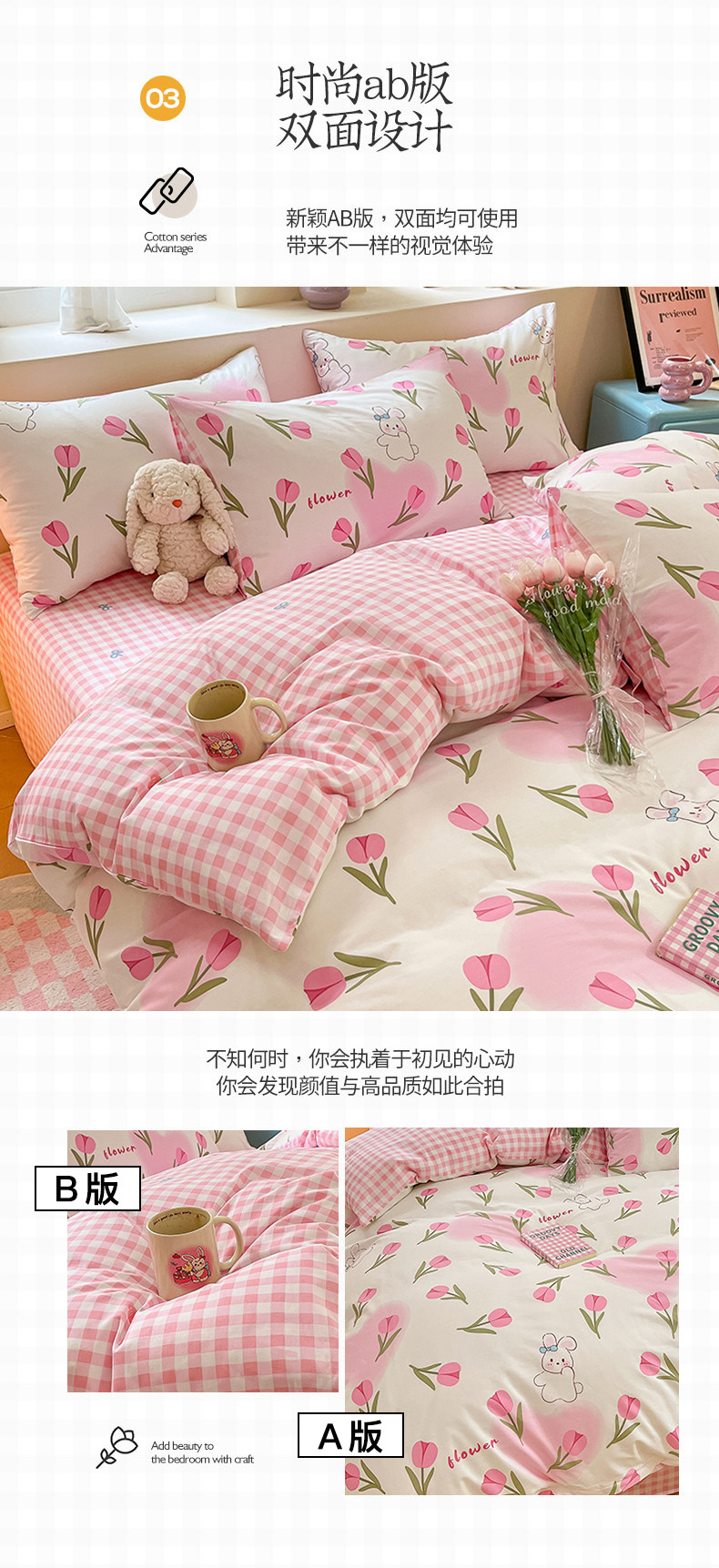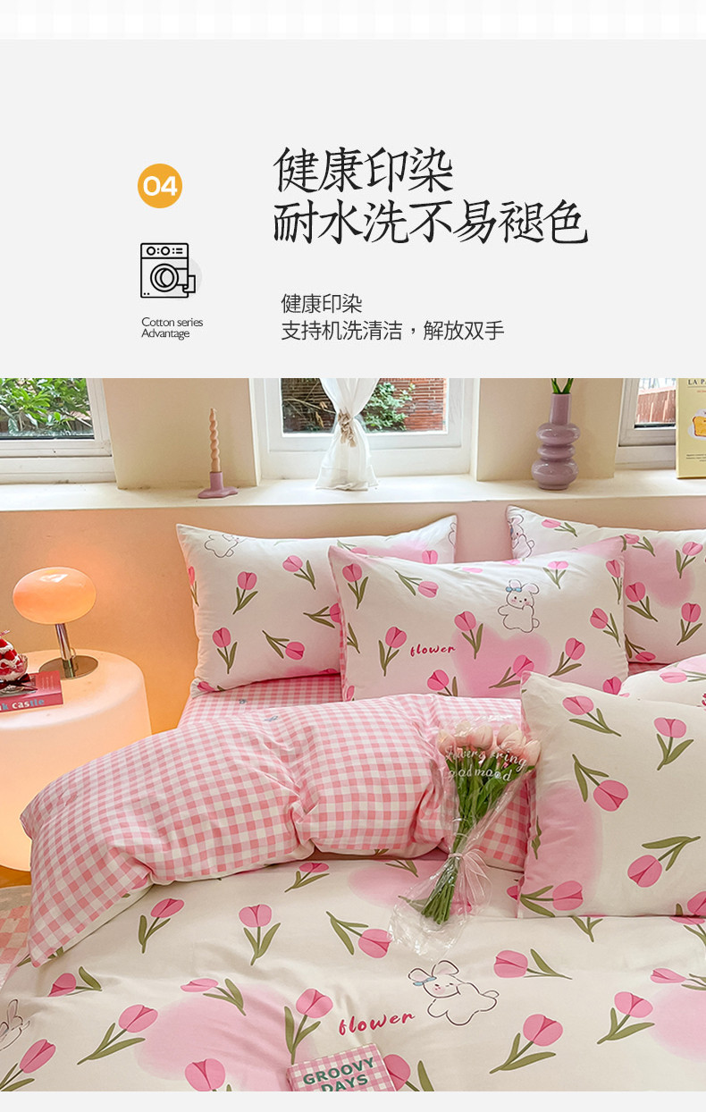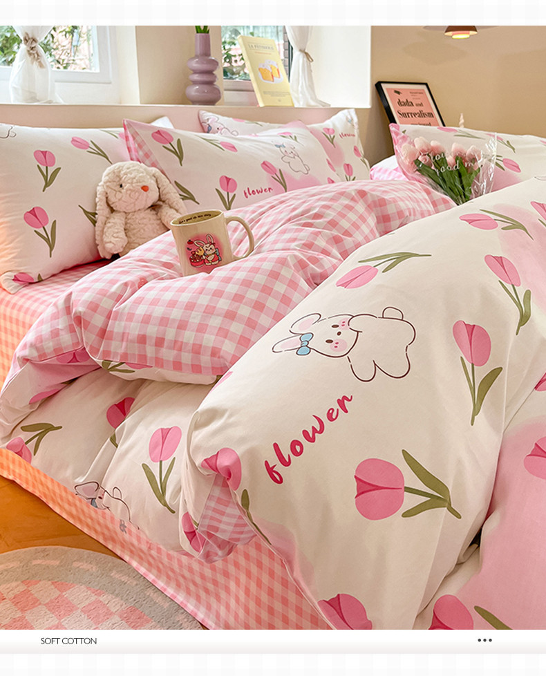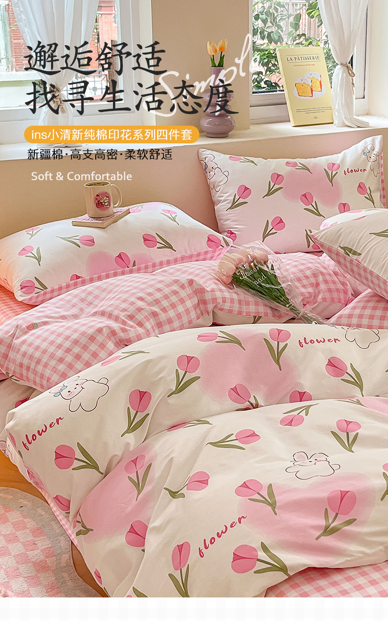 沐棉 2023新款全棉13372小清新印花四件套 花园小兔