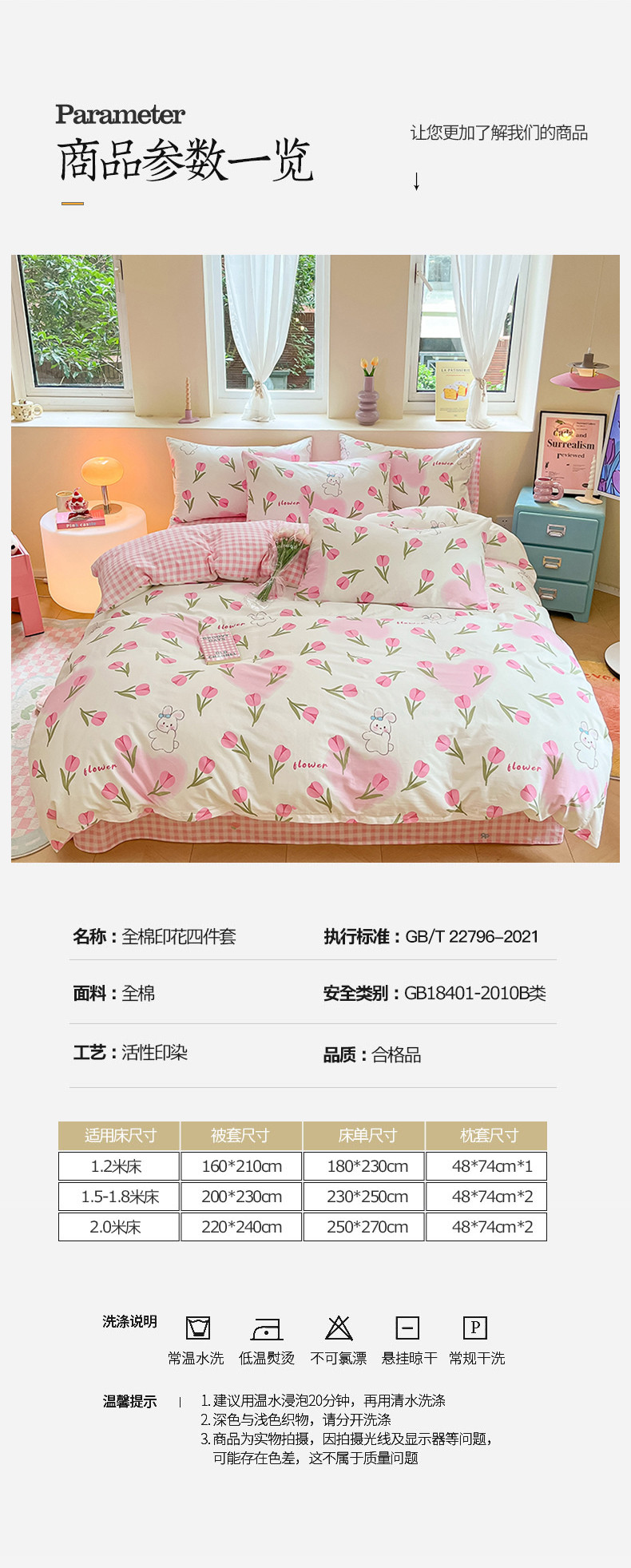 商品名称:沐棉 2023新款全棉13372小清新印花四件套 花园小兔