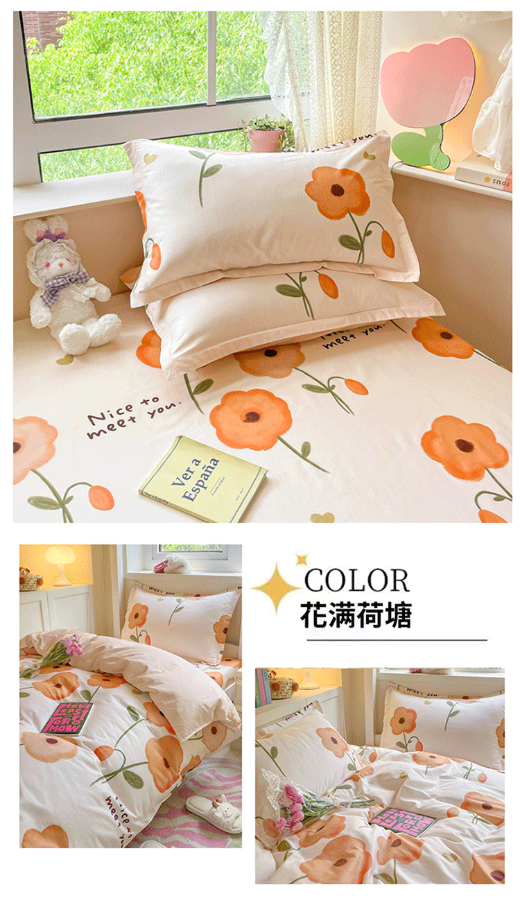 商品名称:铭成家纺 2024新款全棉小清新系列单品枕套花满荷塘