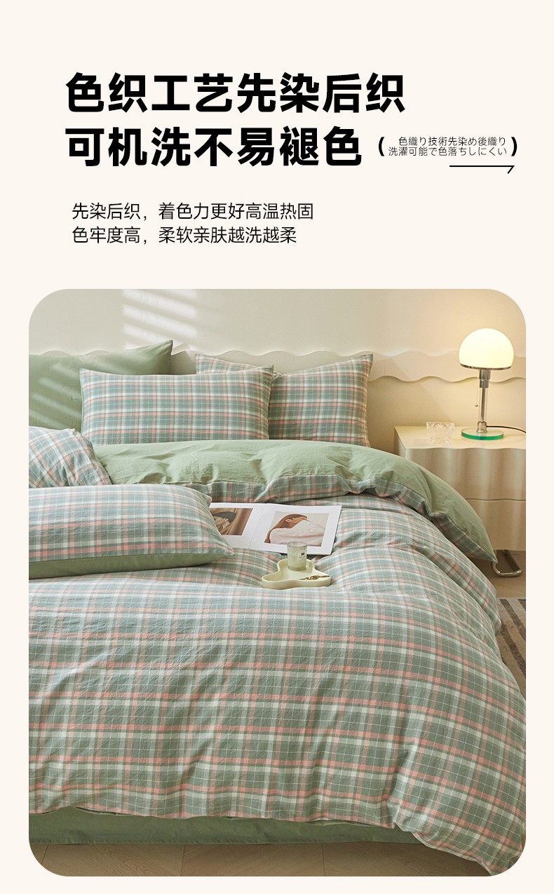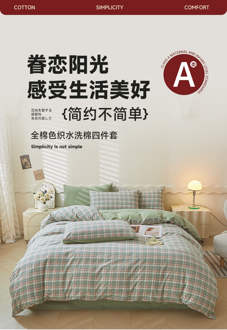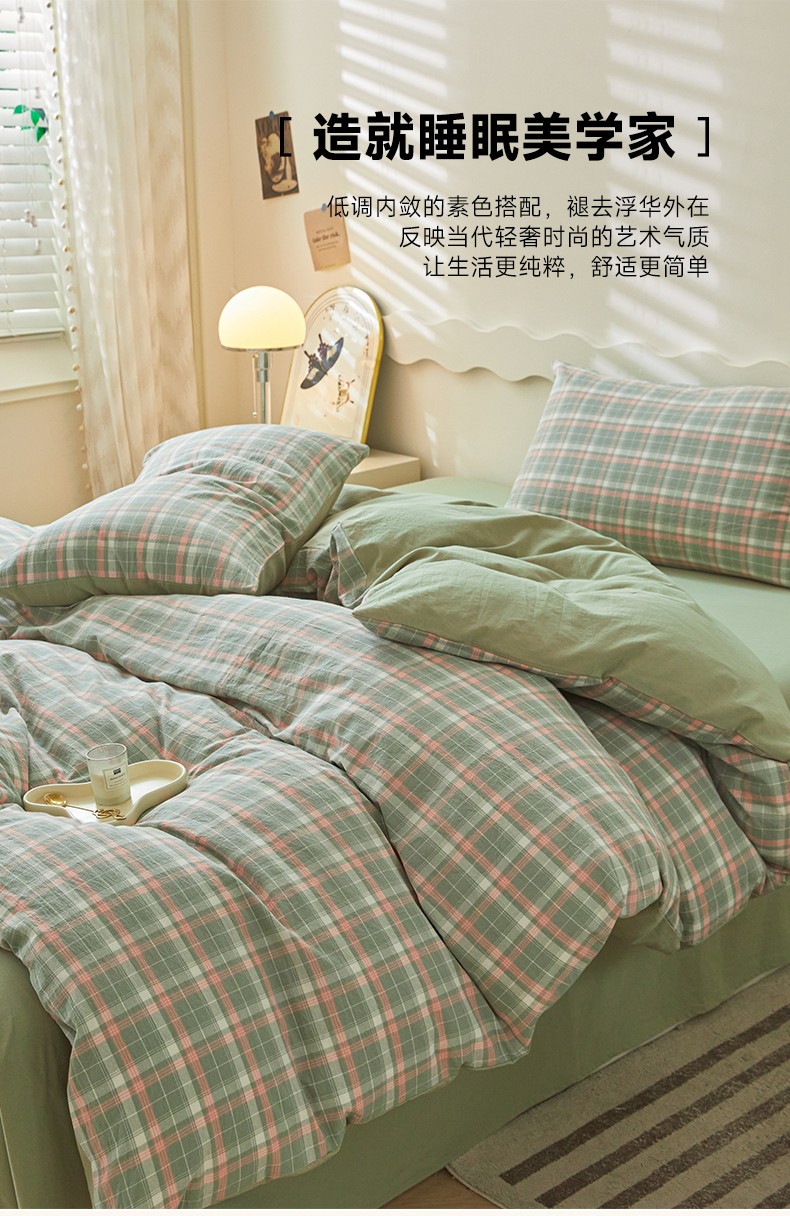 吉象 2023新款全棉色织水洗棉四件套 初晴绿
