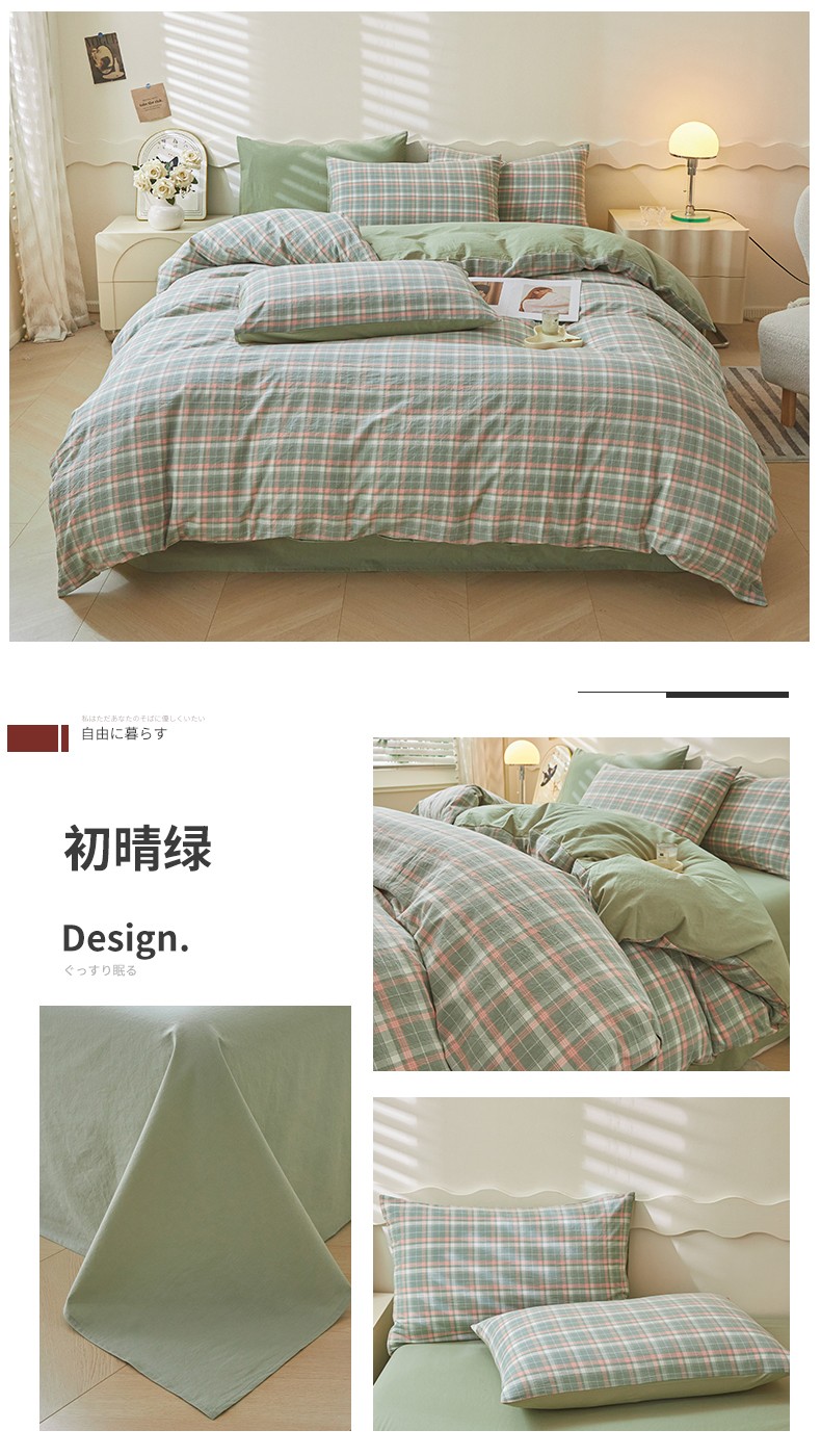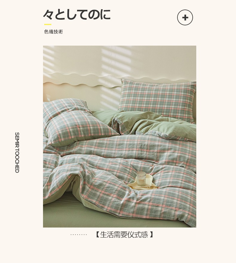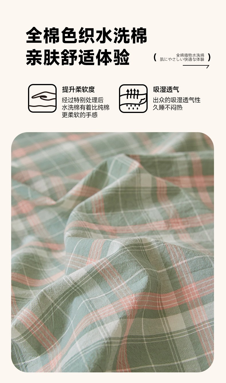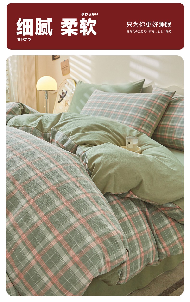 吉象 2023新款全棉色织水洗棉四件套 初晴绿