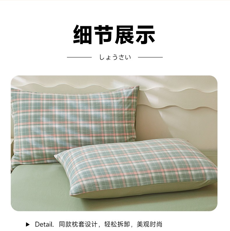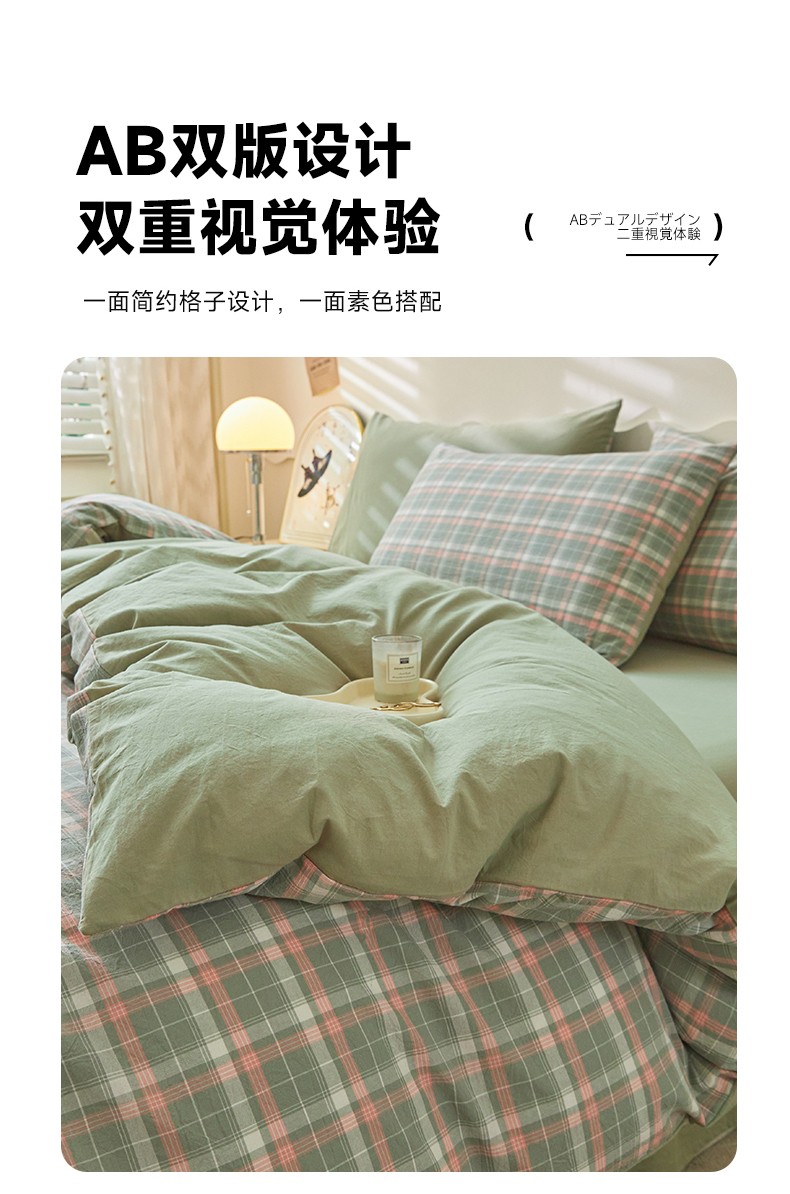 商品名称:吉象 2023新款全棉色织水洗棉四件套 初晴绿