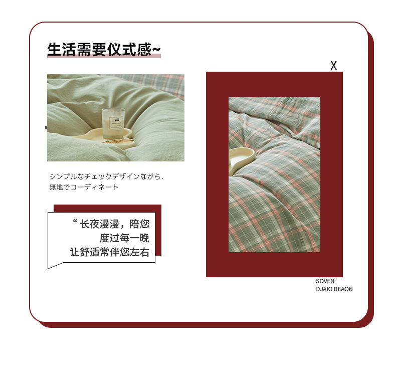 (总)吉象家纺 2025新款全棉磨毛三角针贝壳边印花四件套,枫叶,满园花开 -桔,墨染,浅夏 -绿,清浅,薰染 -红