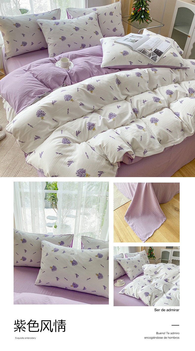 商品名称:赫然 2026新款水洗双层纱四件套 紫色风情