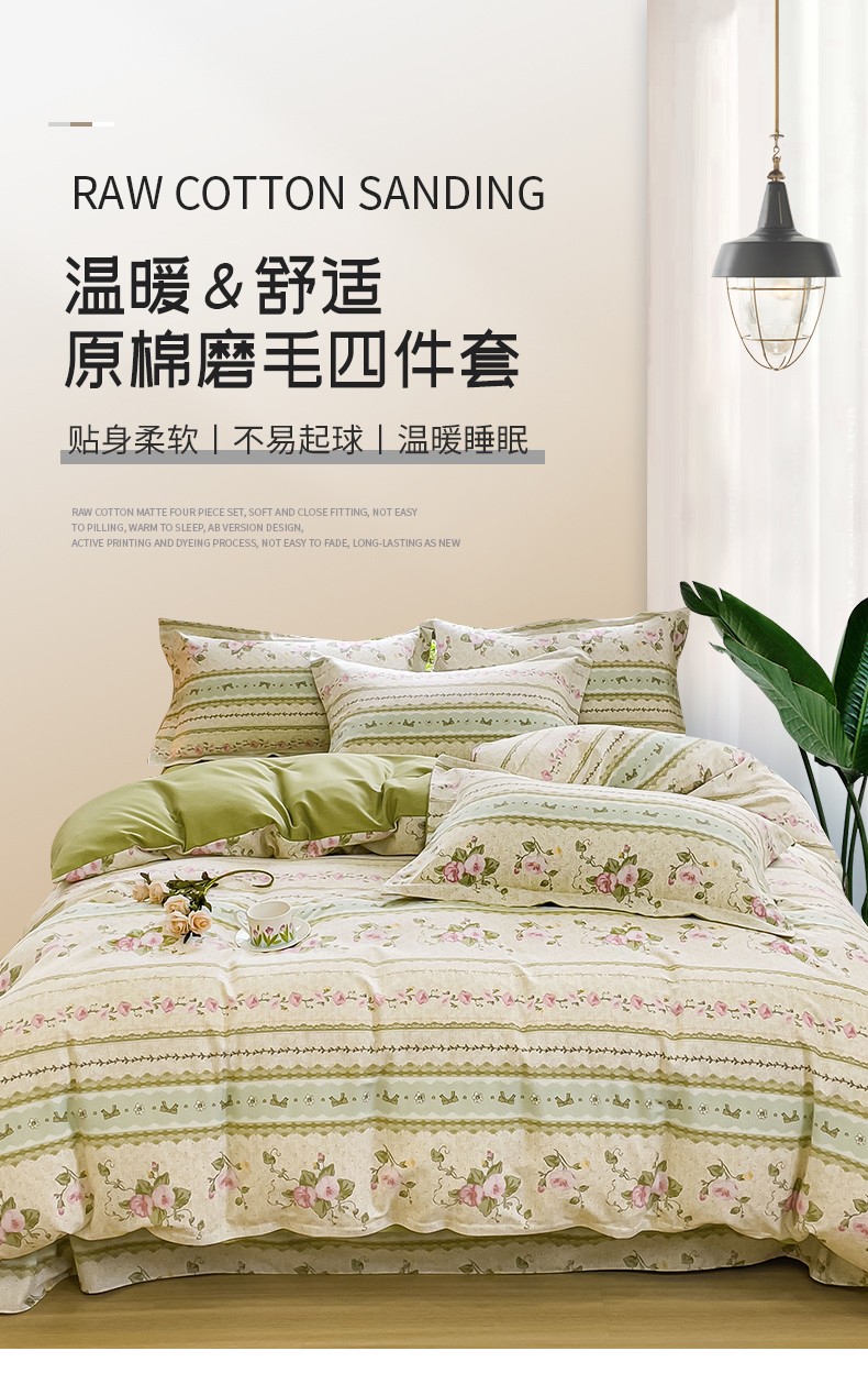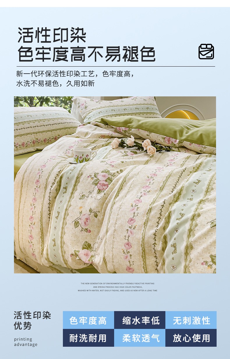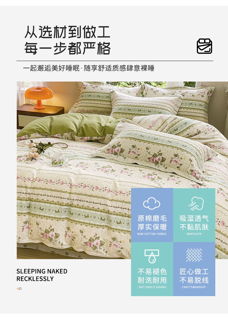 商品名称:金丝鸟 2023新款原棉磨毛四件套小清新系列 花知晓