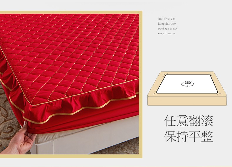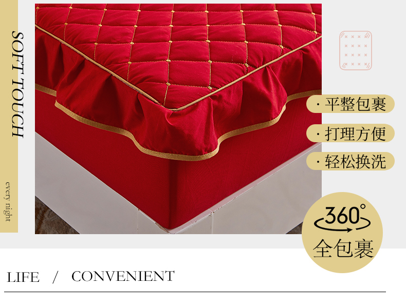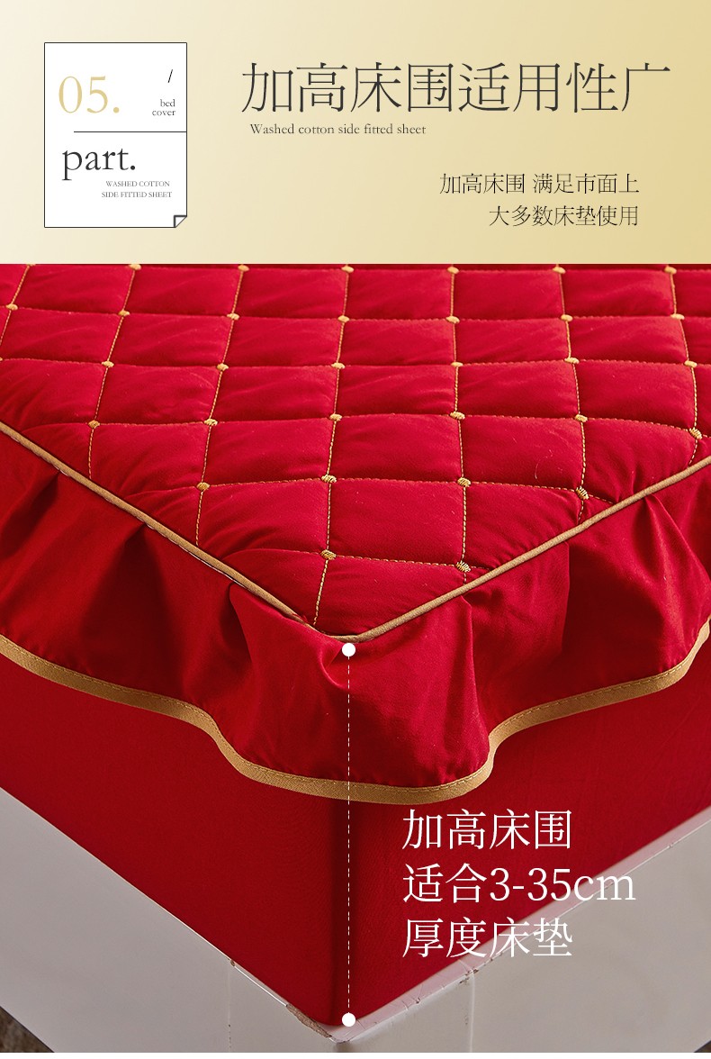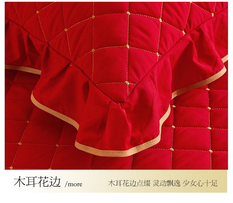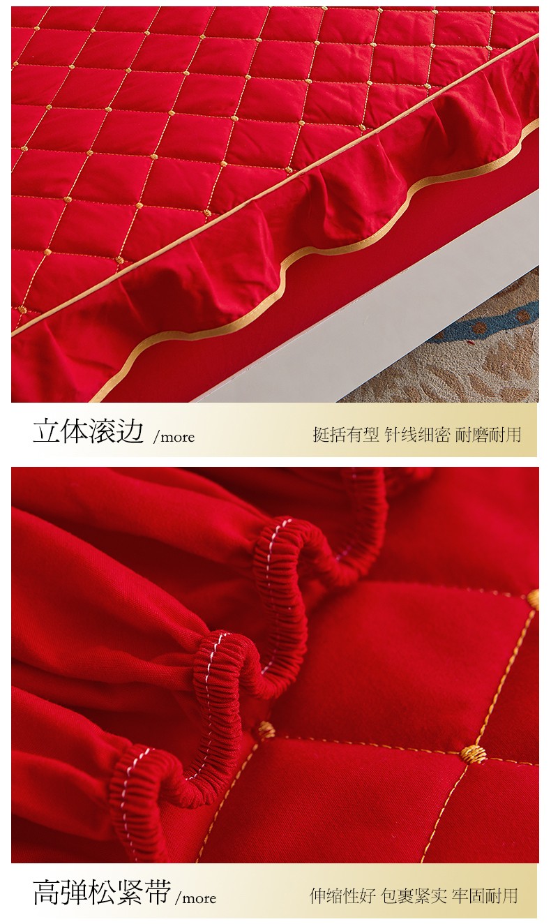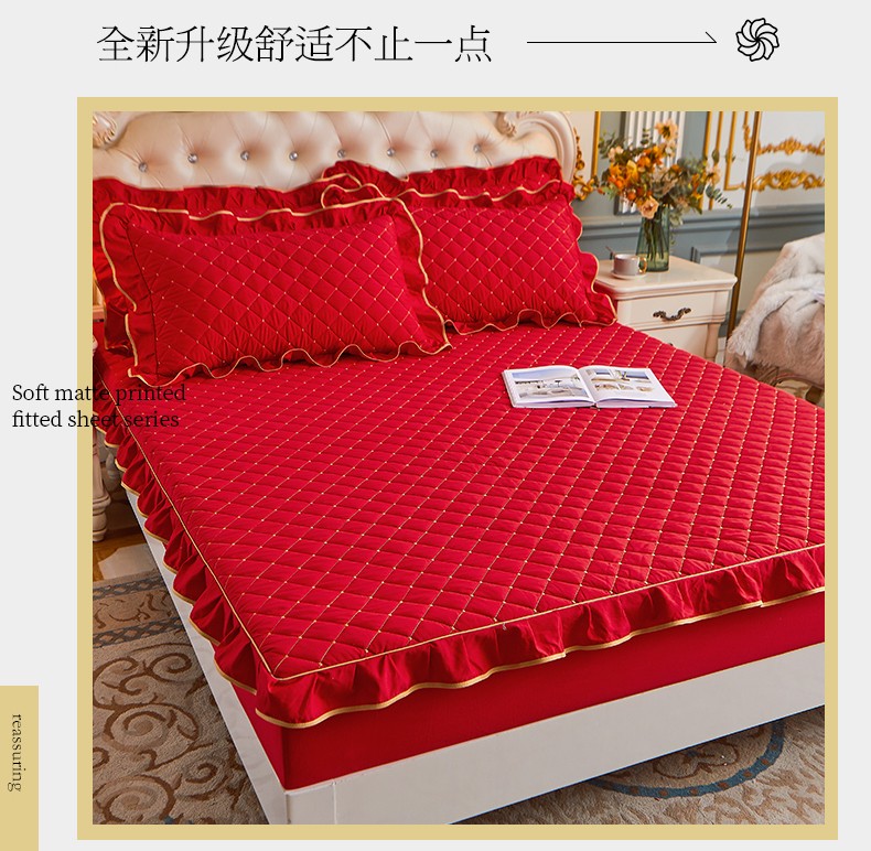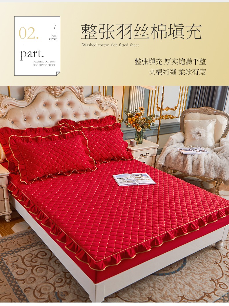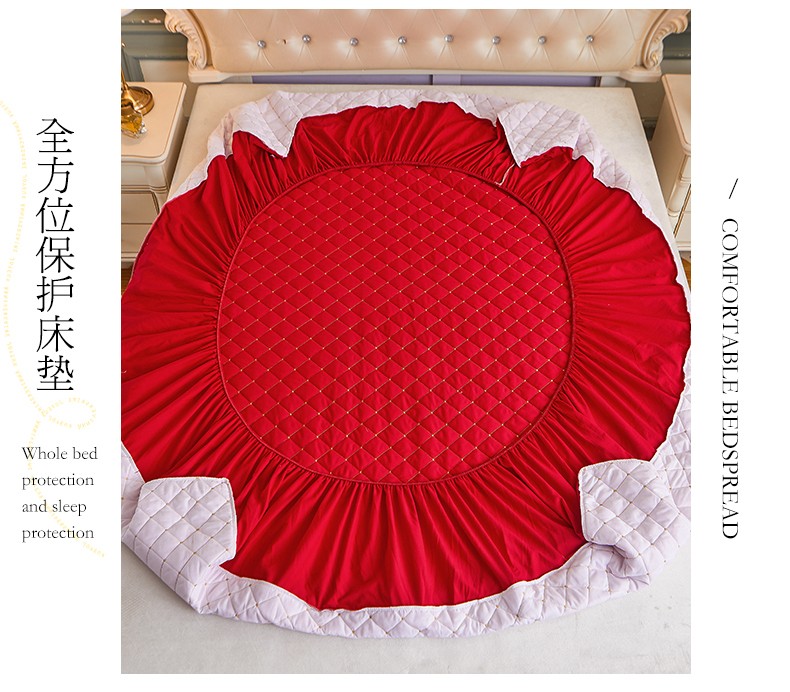 (总)屹成家纺2025新款水晶绒夹棉绗缝蕾丝床裙三件套(塞纳河畔)床裙单件起售价不低于105元,大红,豆沙,翡翠绿,粉玉,橄榄绿,蔚蓝,银灰