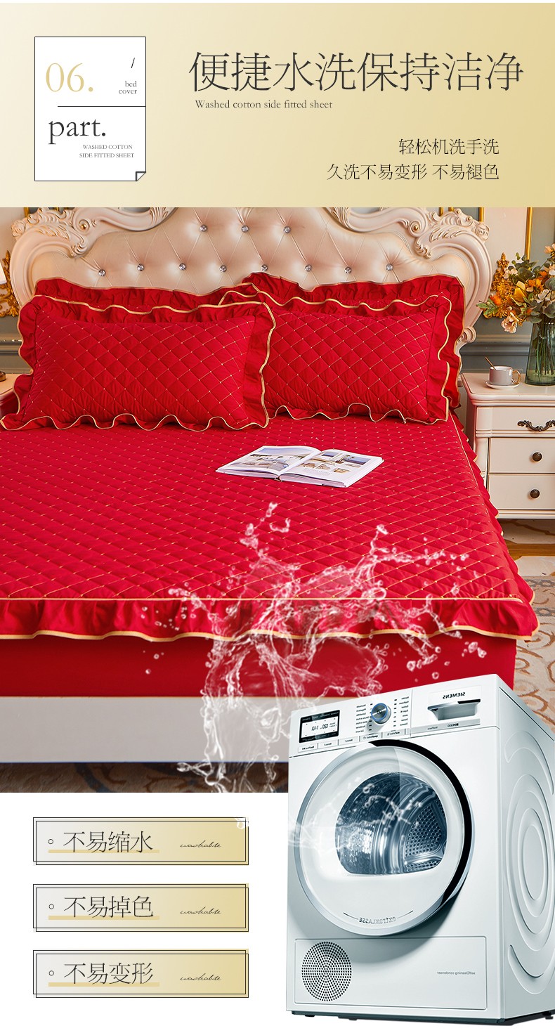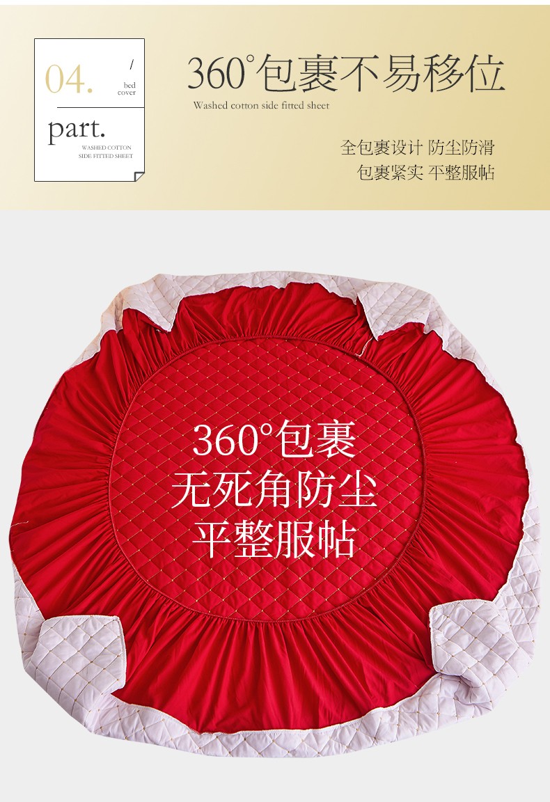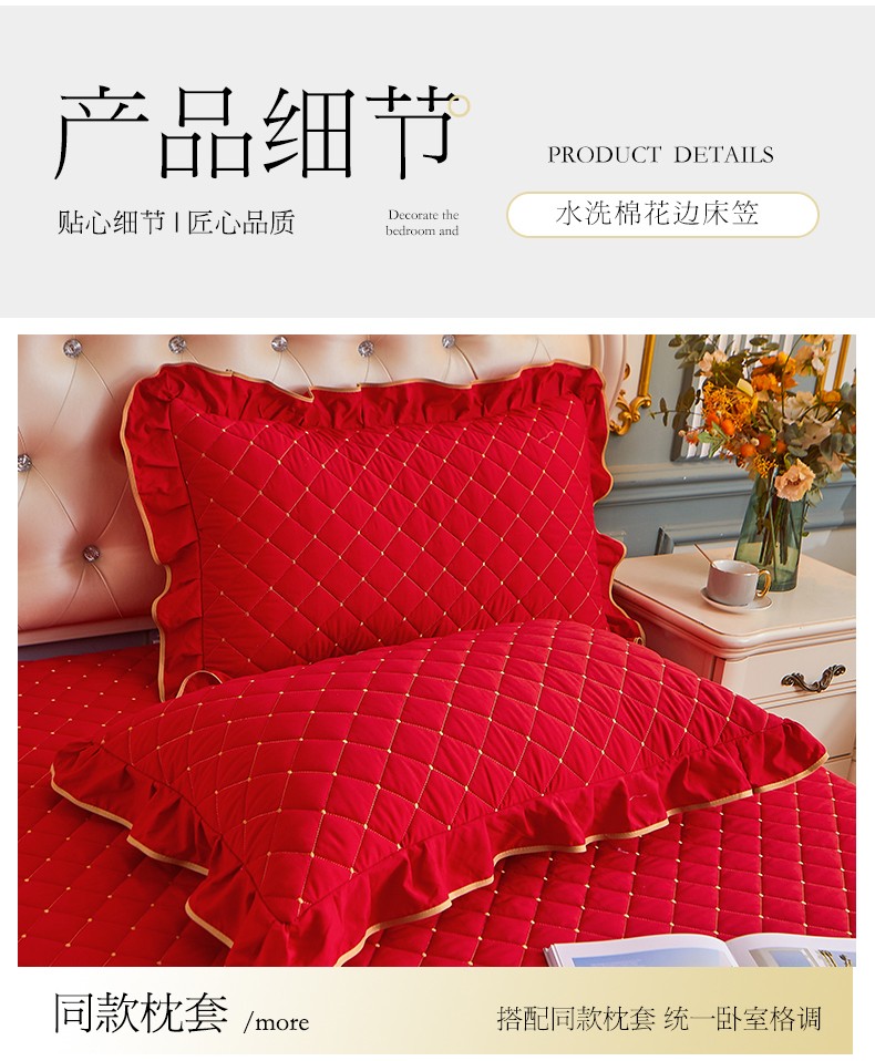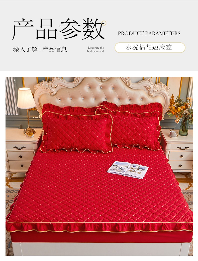 商品名称:屹成 2024新款水洗棉蕾丝四季款床笠床裙单品套件-床笠三件套 大红