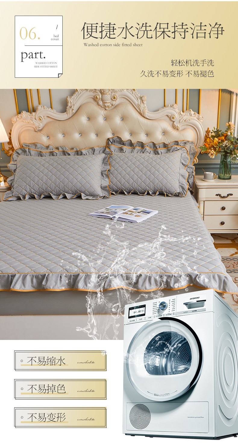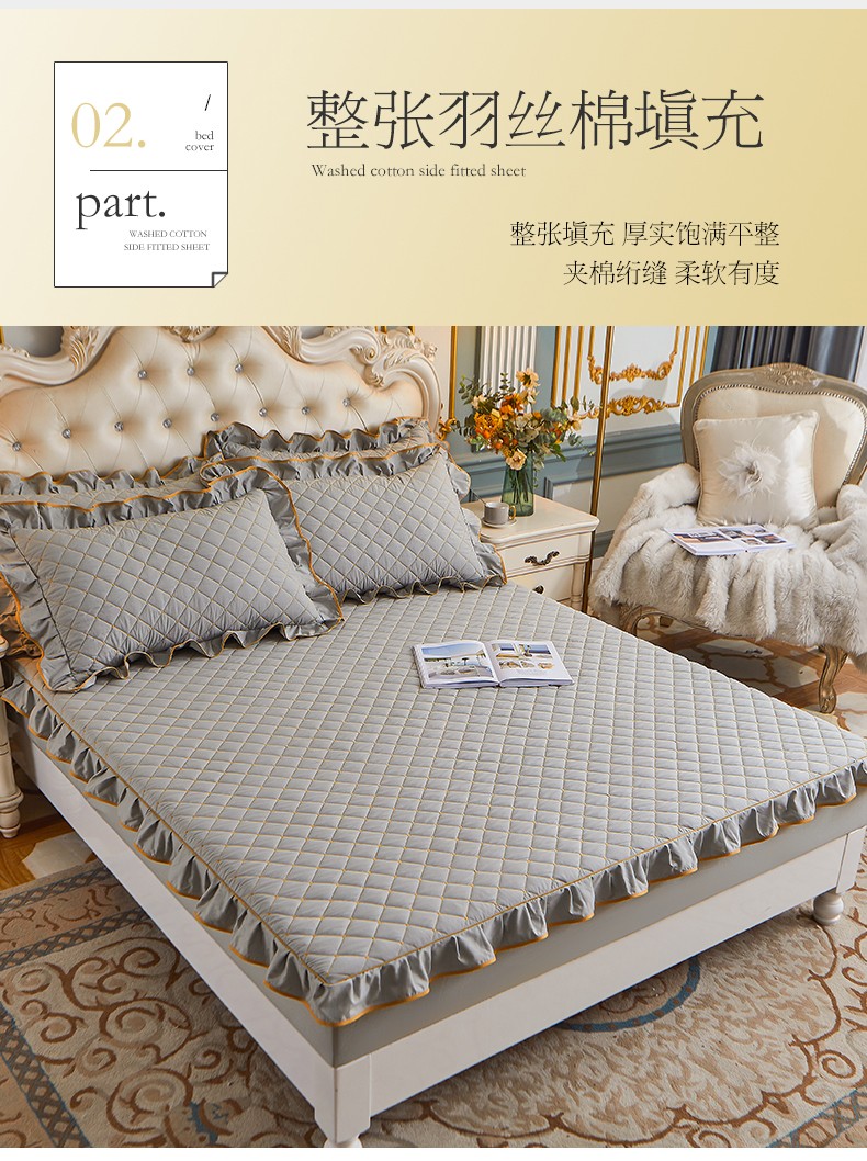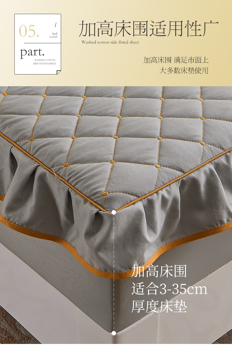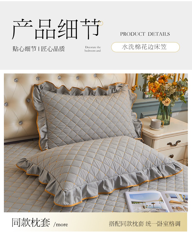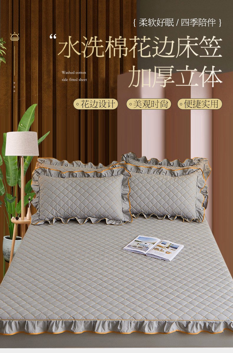 屹成 2024新款水洗棉蕾丝四季款床笠床裙单品套件-床笠三件套 银灰