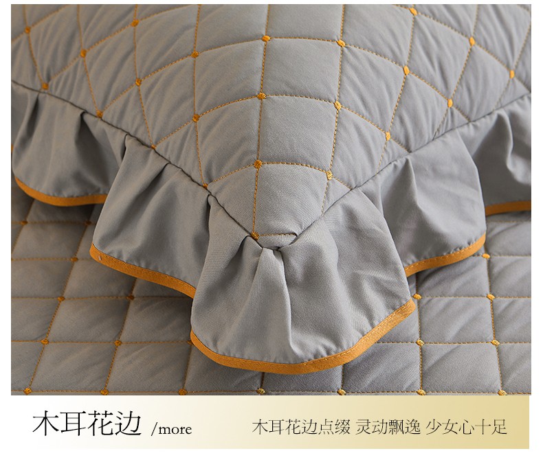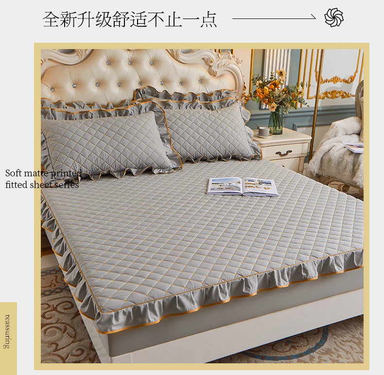 (总)屹成家纺2025新款水晶绒夹棉绗缝蕾丝床裙三件套(塞纳河畔)床裙单件起售价不低于105元,大红,豆沙,翡翠绿,粉玉,橄榄绿,蔚蓝,银灰