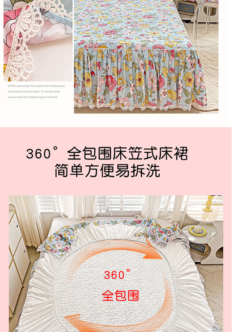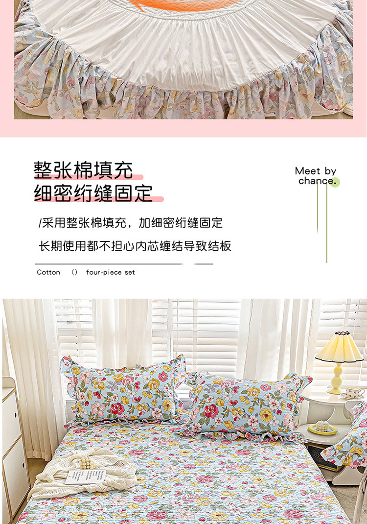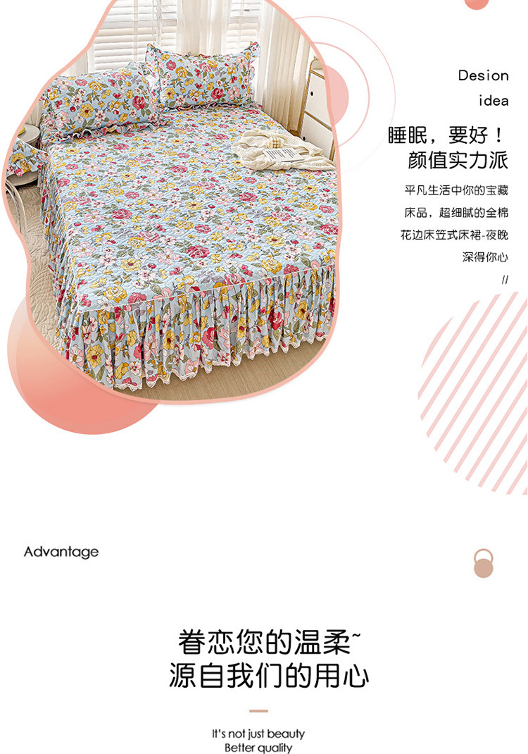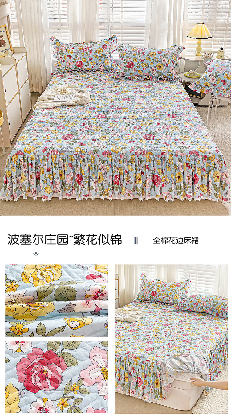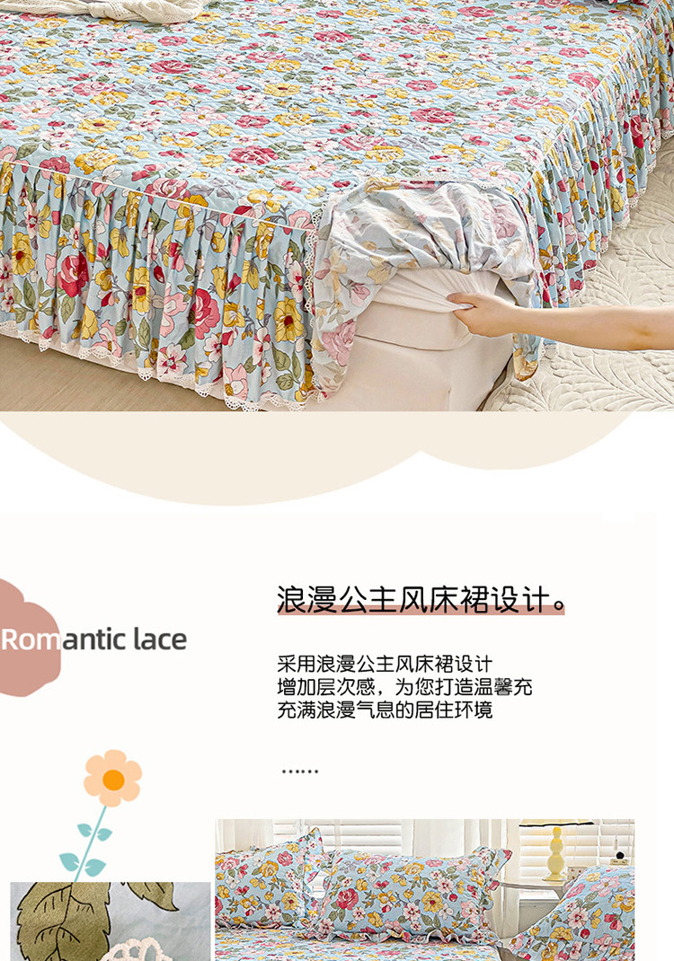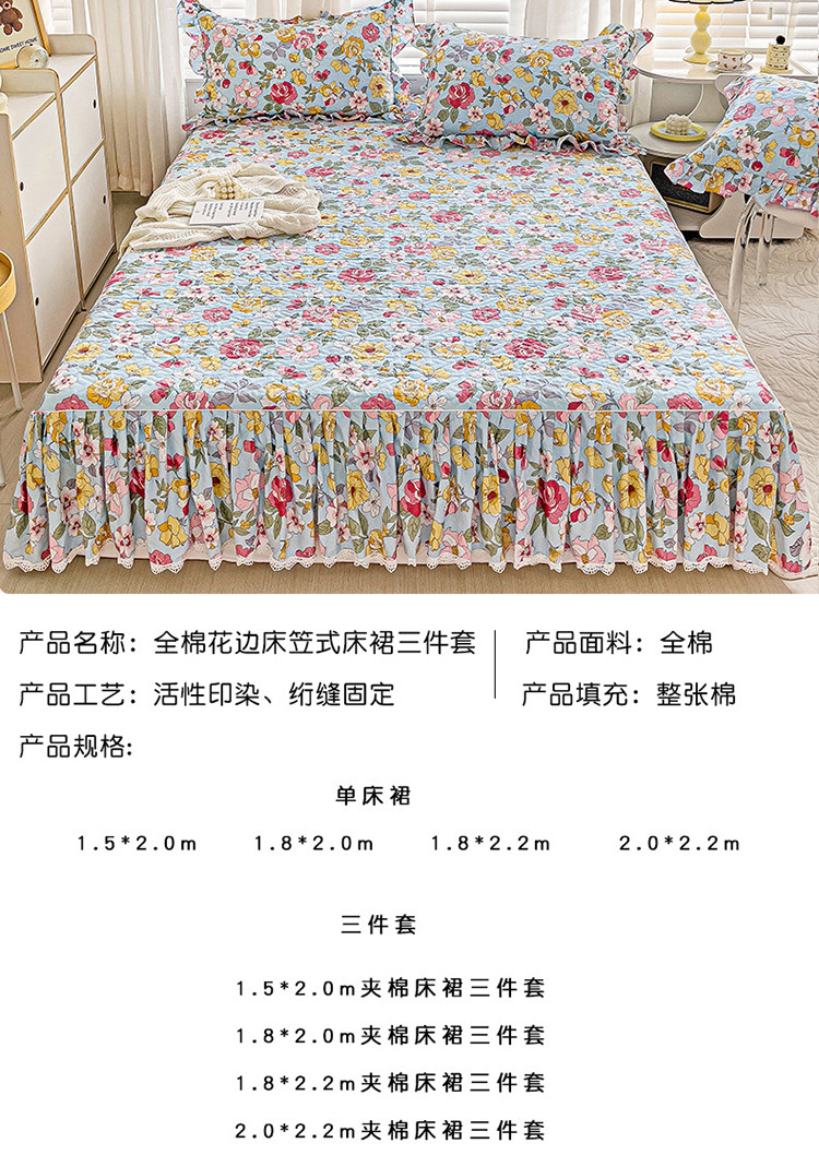 • 91家纺网 家纺一手货源 找家纺 罗艺轩 2024新款全棉花边床笠式夹棉床裙三件套波塞尔庄园繁花似锦