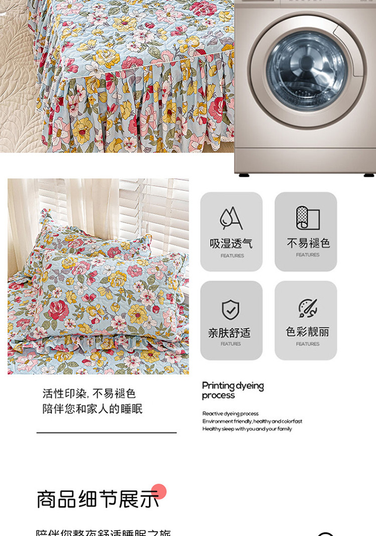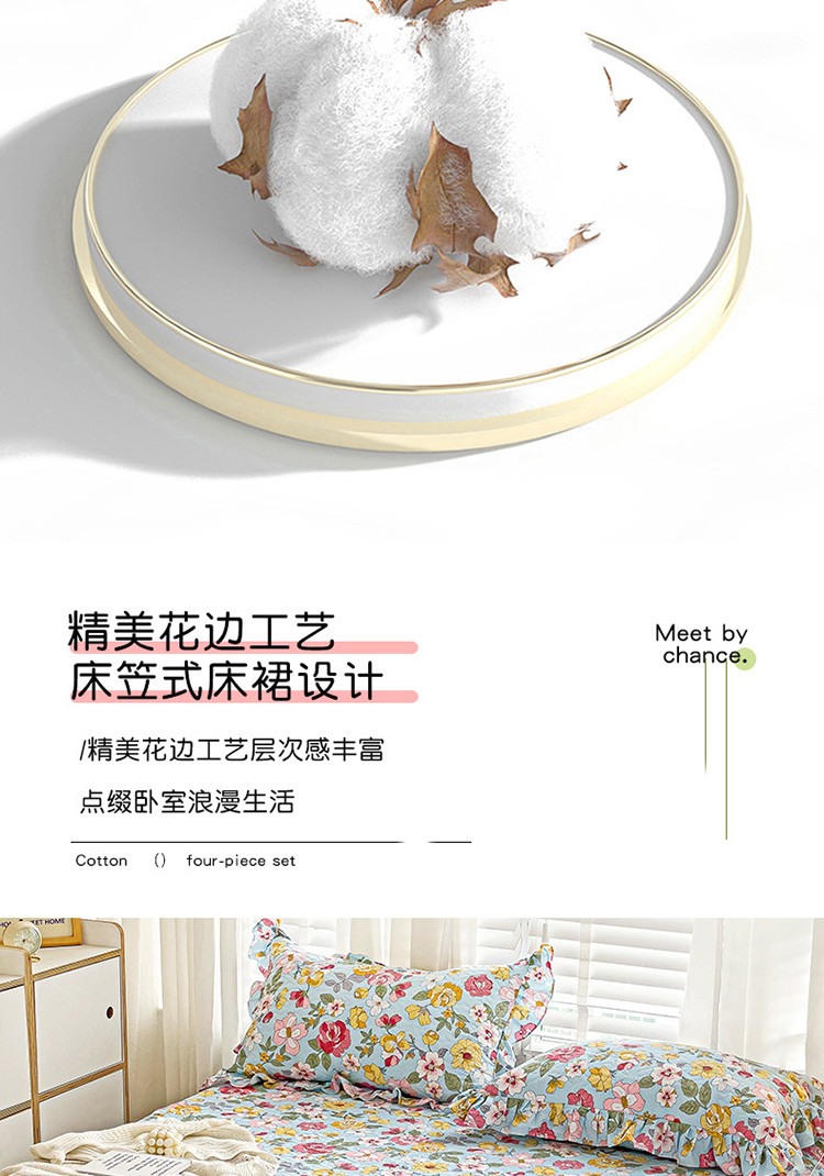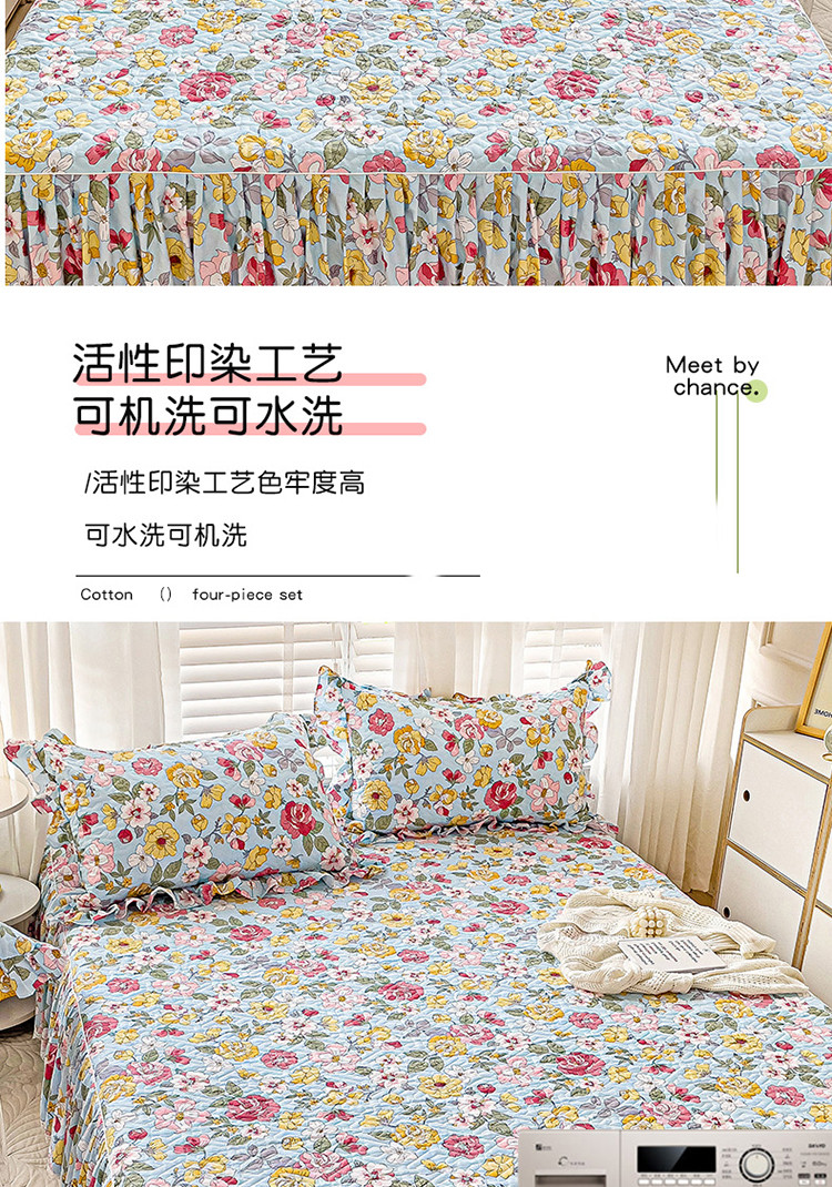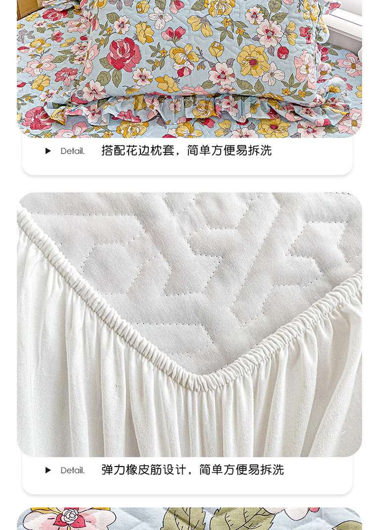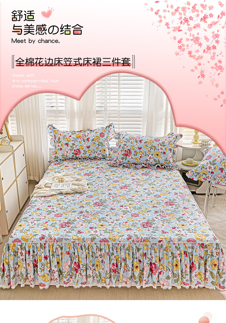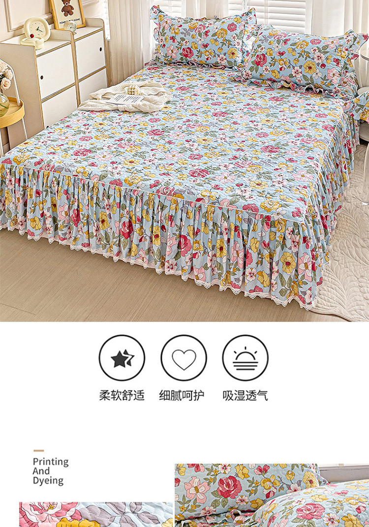 • 91家纺网 家纺一手货源 找家纺 罗艺轩 2024新款全棉花边床笠式夹棉床裙三件套波塞尔庄园繁花似锦
