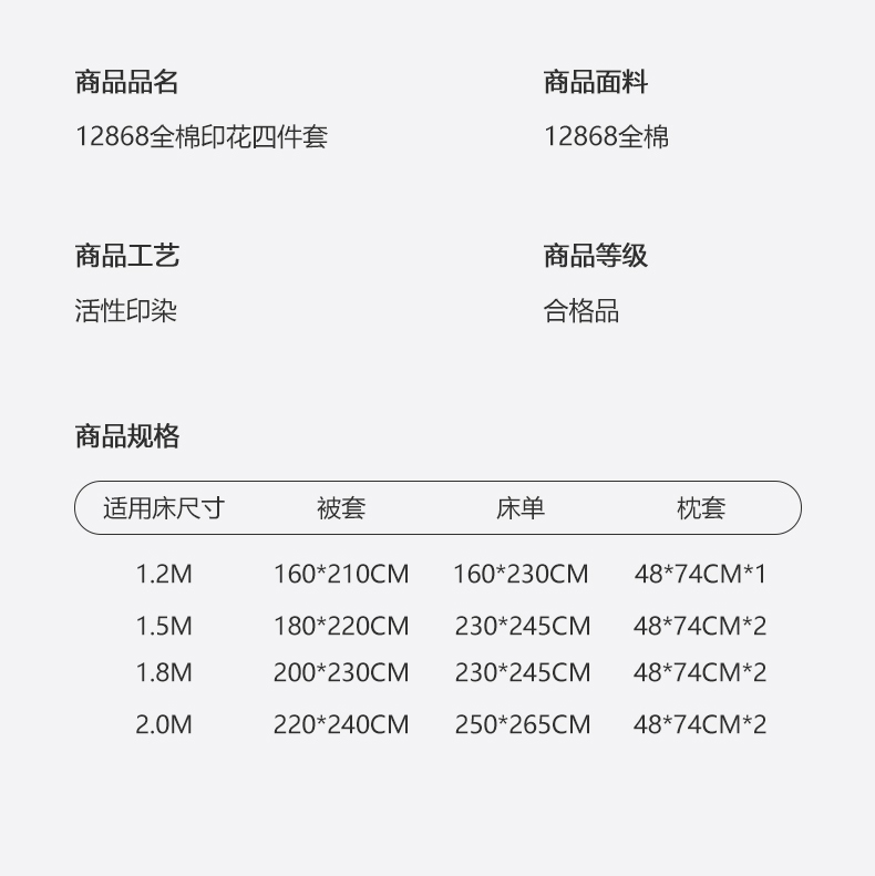 1.8m床单款四件套(被套200*230) | ¥85.00 |