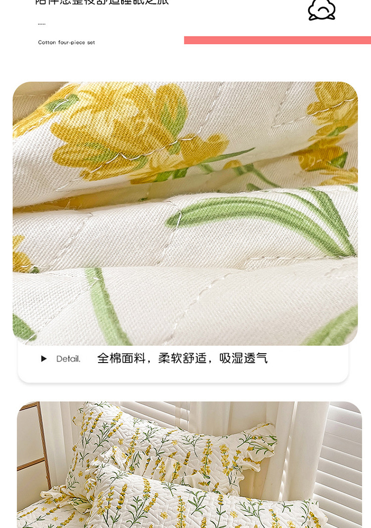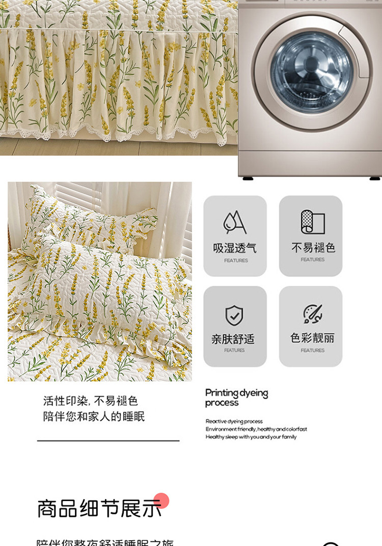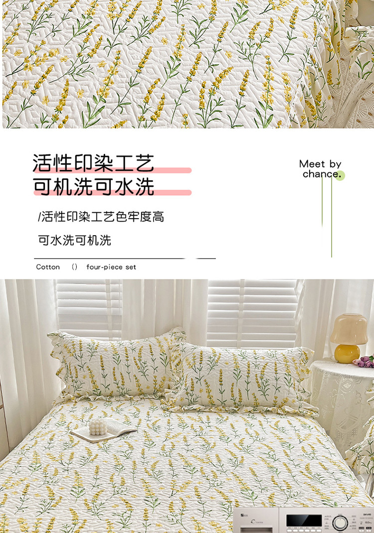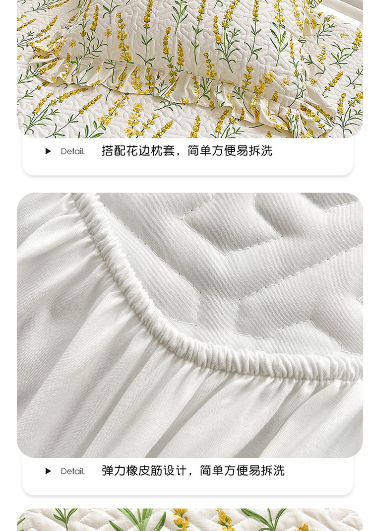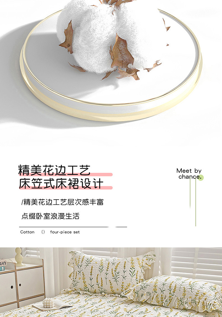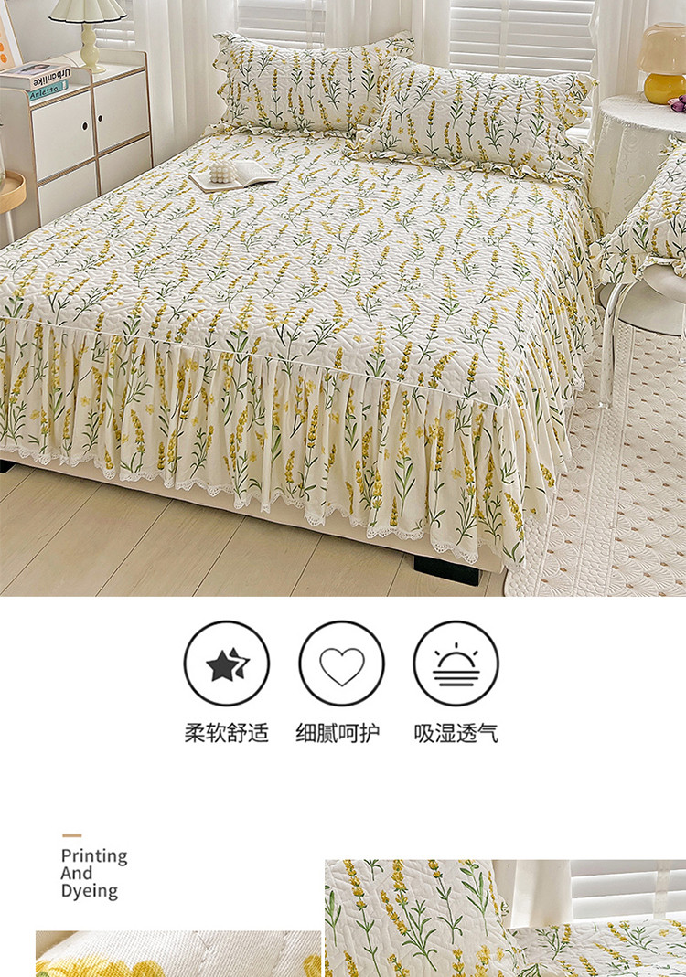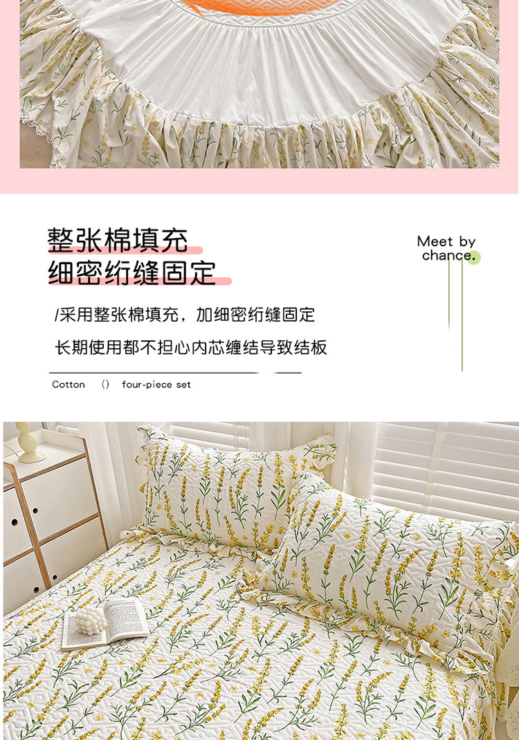 • 91家纺网 家纺一手货源 找家纺 罗艺轩 2024新款全棉花边床笠式夹棉床裙三件套波赛尔庄园-飘絮