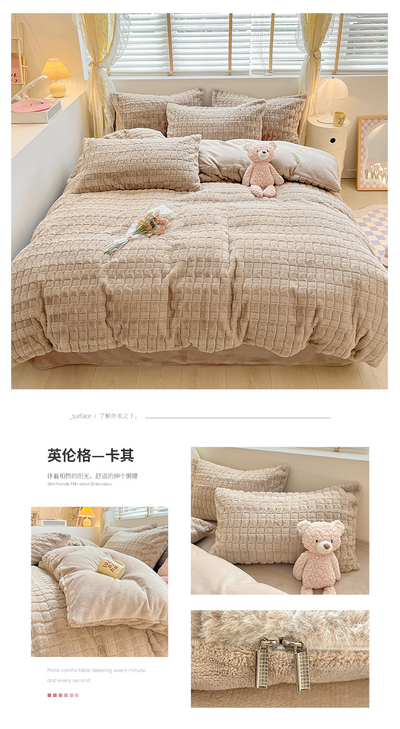 商品名称:莱米 2023新款兔绒四件套 英伦格—卡其