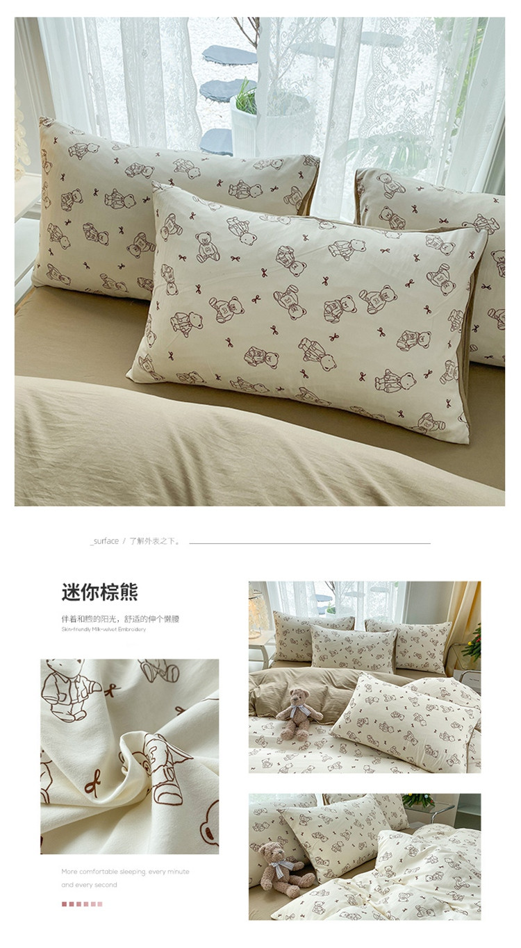 • 91家纺网 家纺一手货源 找家纺 赫然 2026新款A类针织水洗双层纱单枕套 迷你棕熊