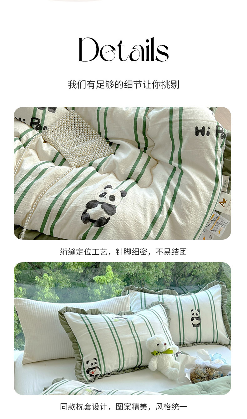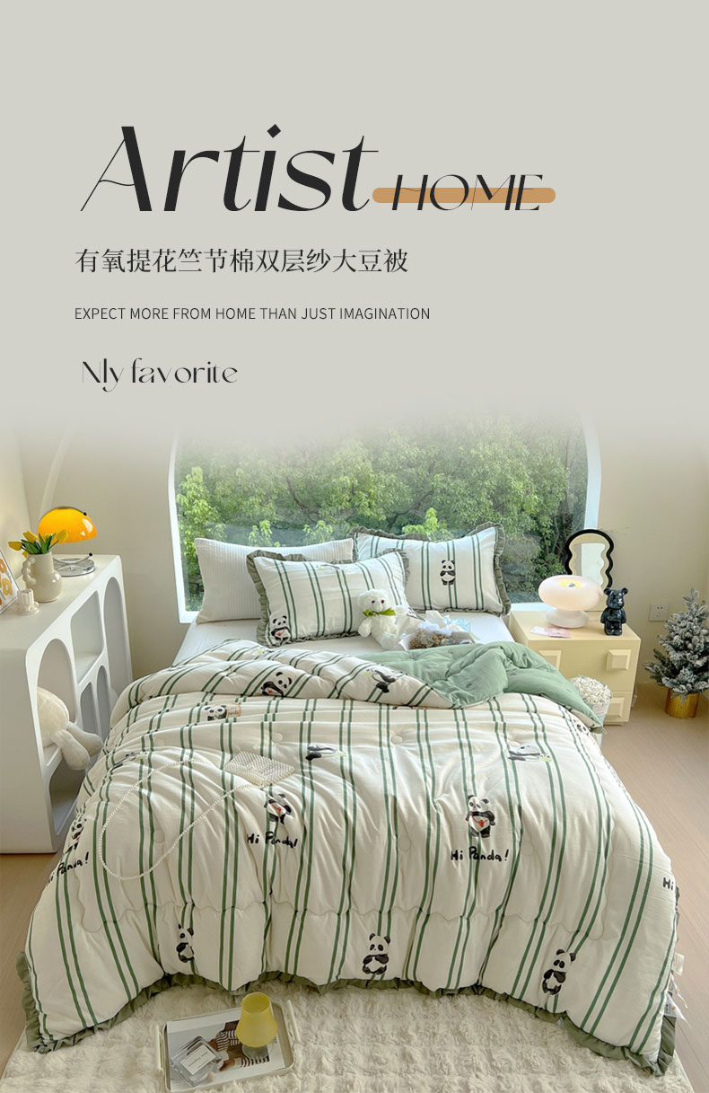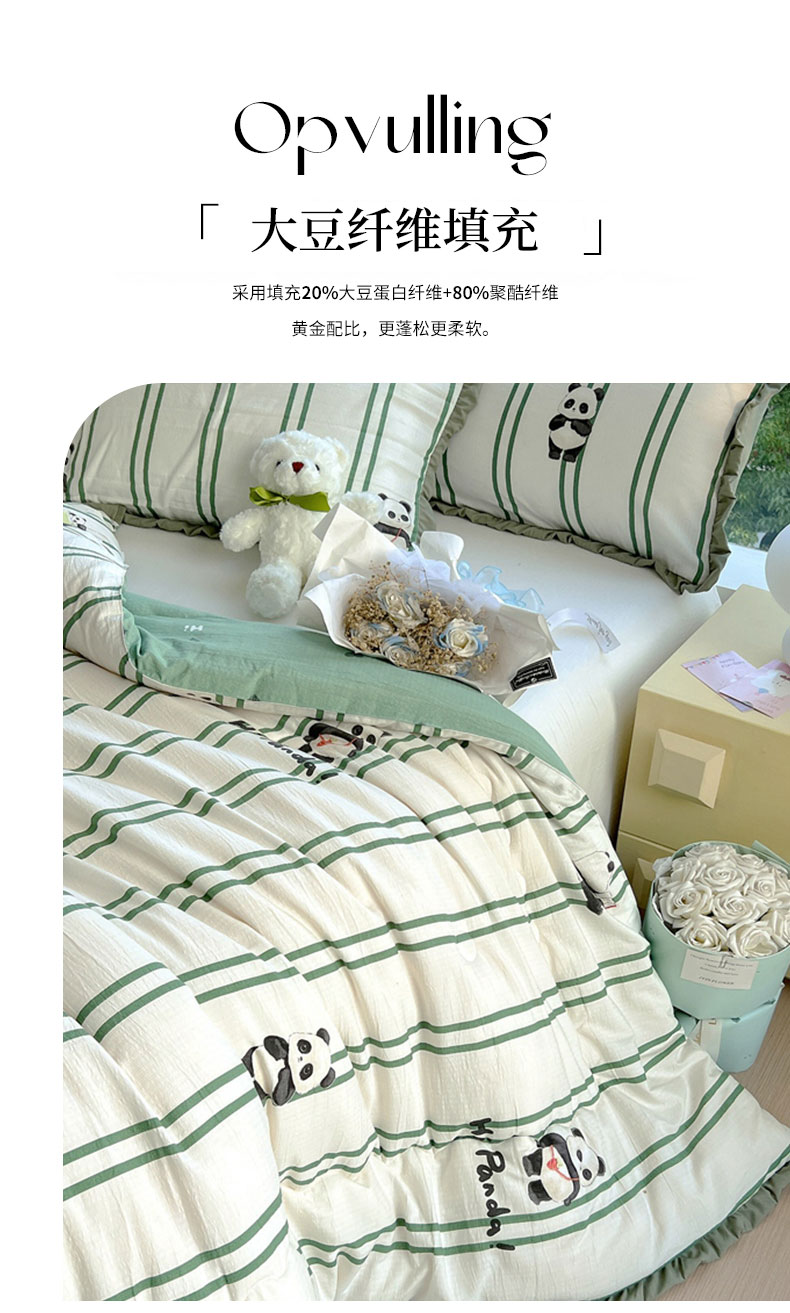 商品名称:典冠 2024新款有氧提花竺节棉双层纱大豆被春秋被冬被 熊猫乐园