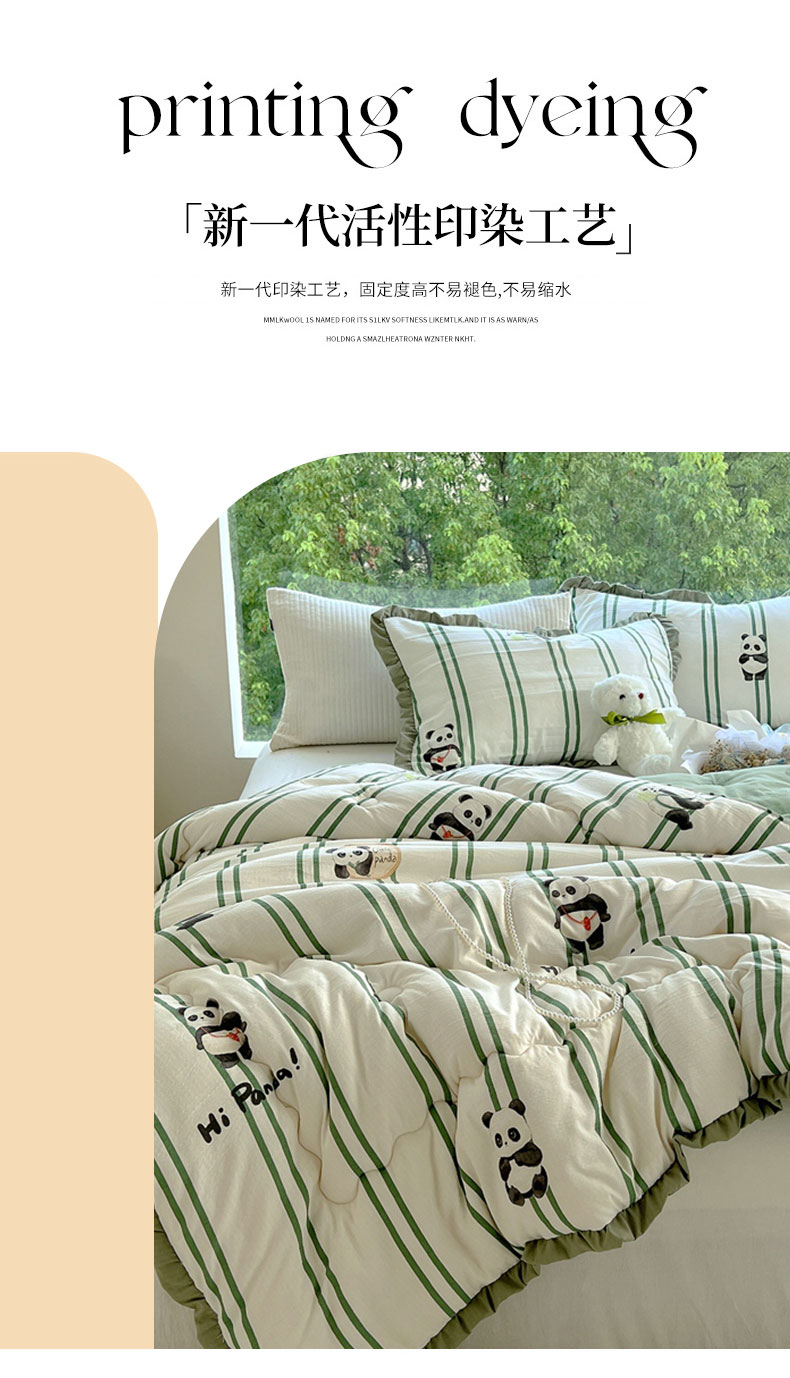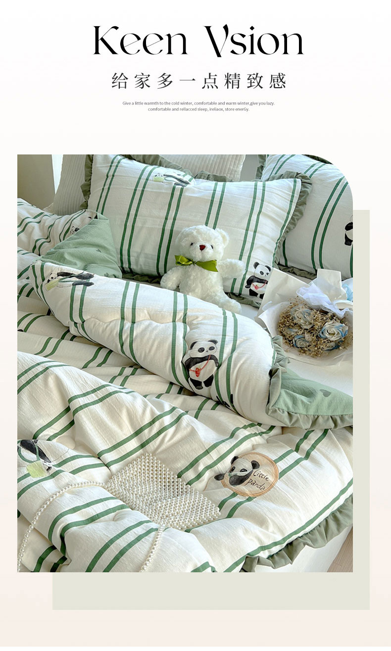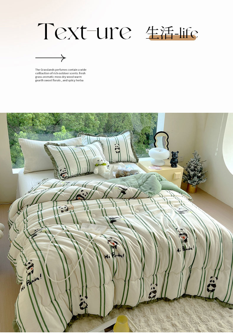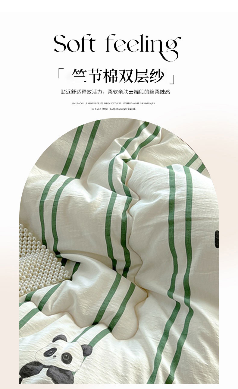 商品名称:典冠 2024新款有氧提花竺节棉双层纱大豆被春秋被冬被 熊猫乐园