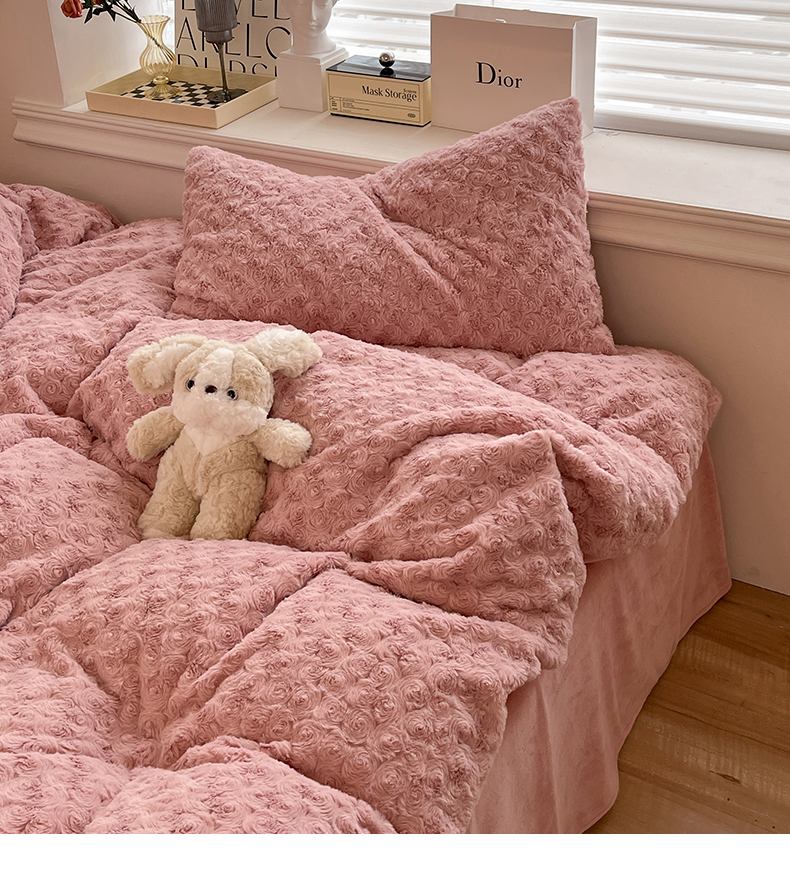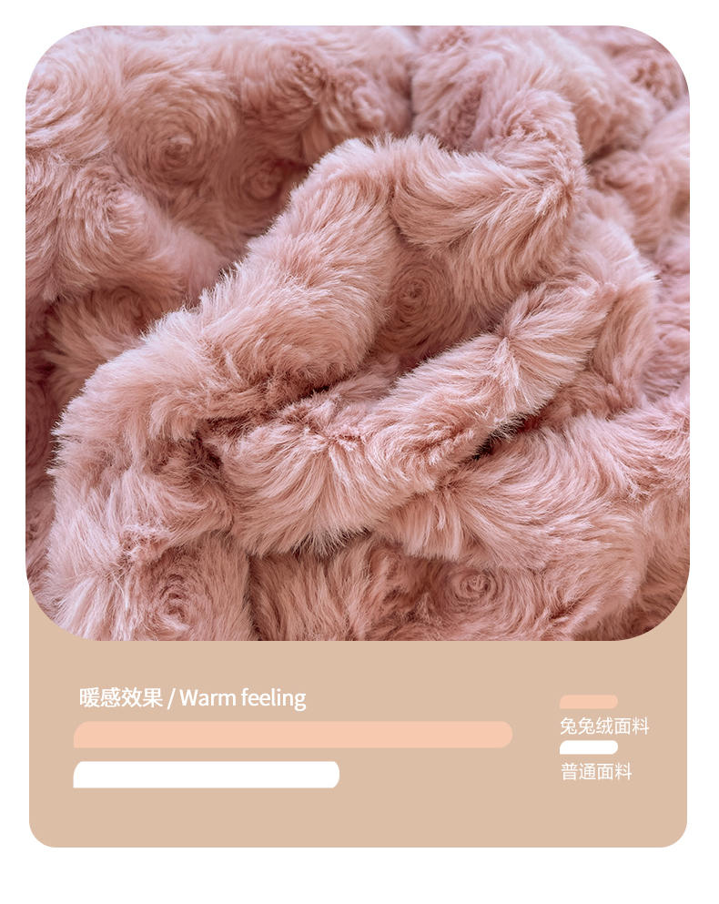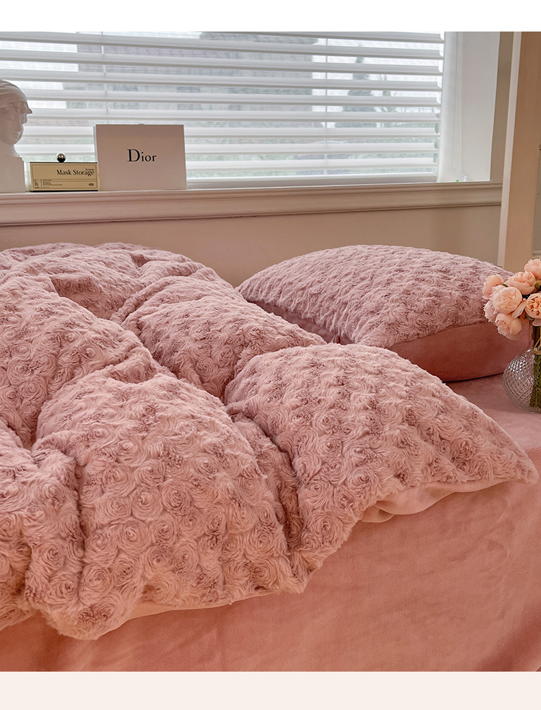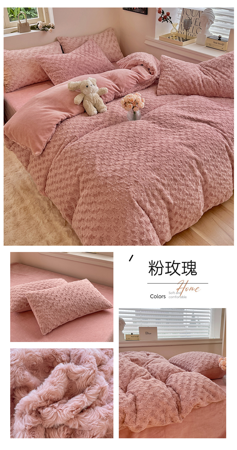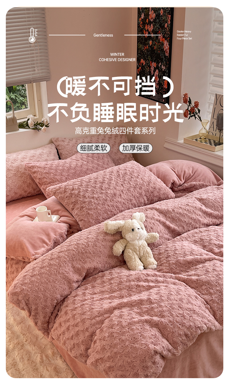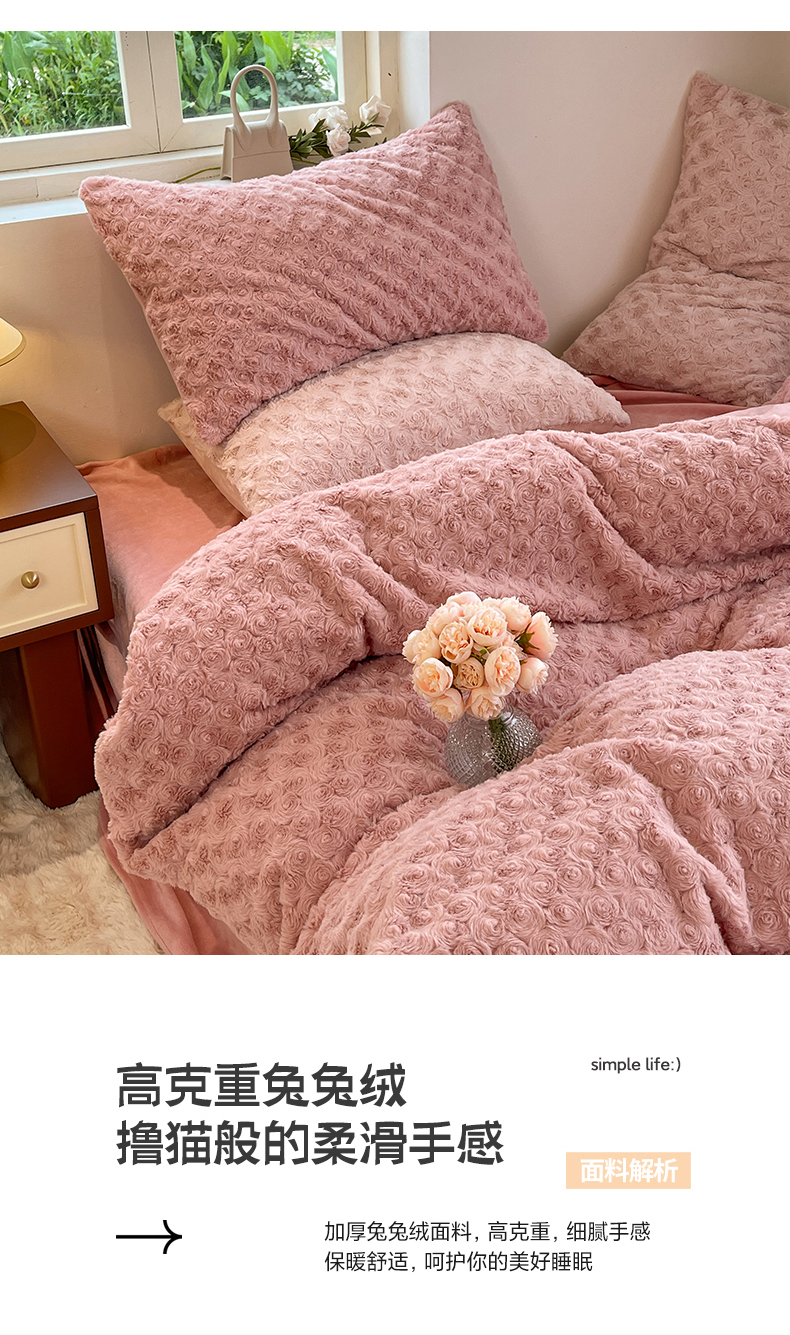 商品名称:七七 2025新款兔兔绒兔毛绒四件套 粉玫瑰