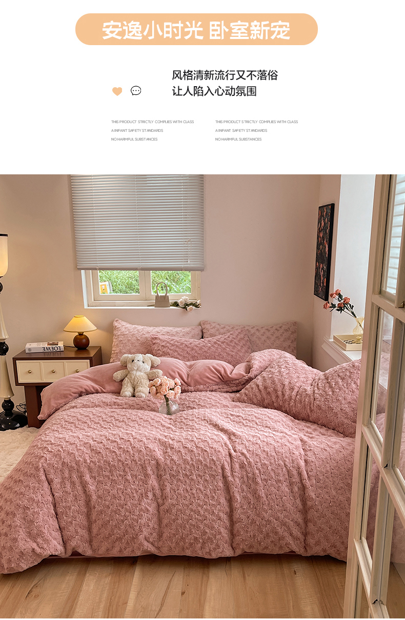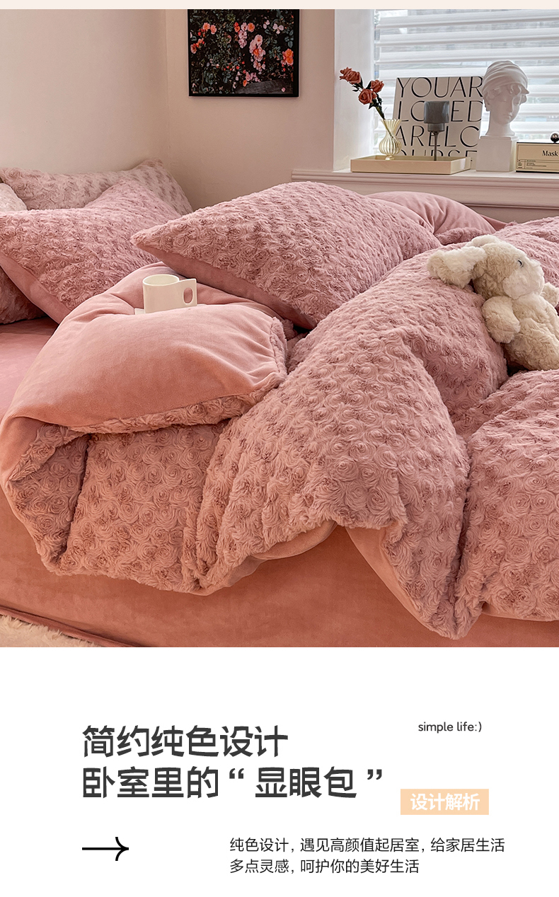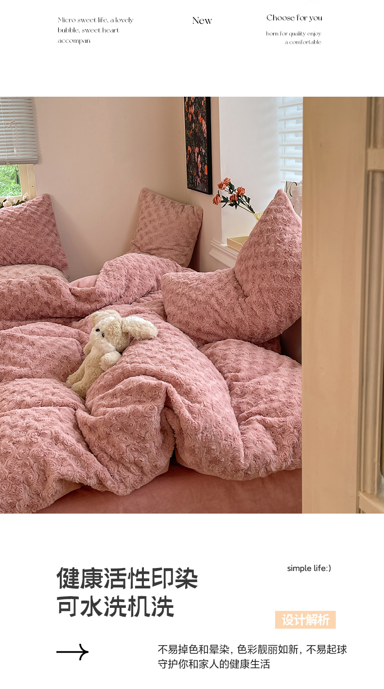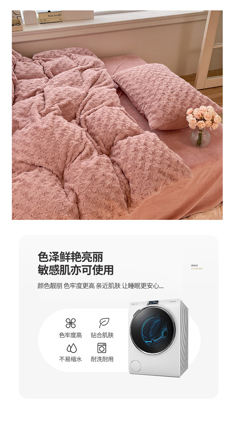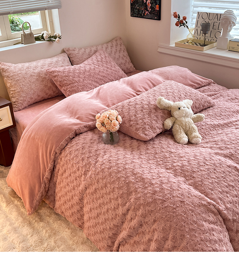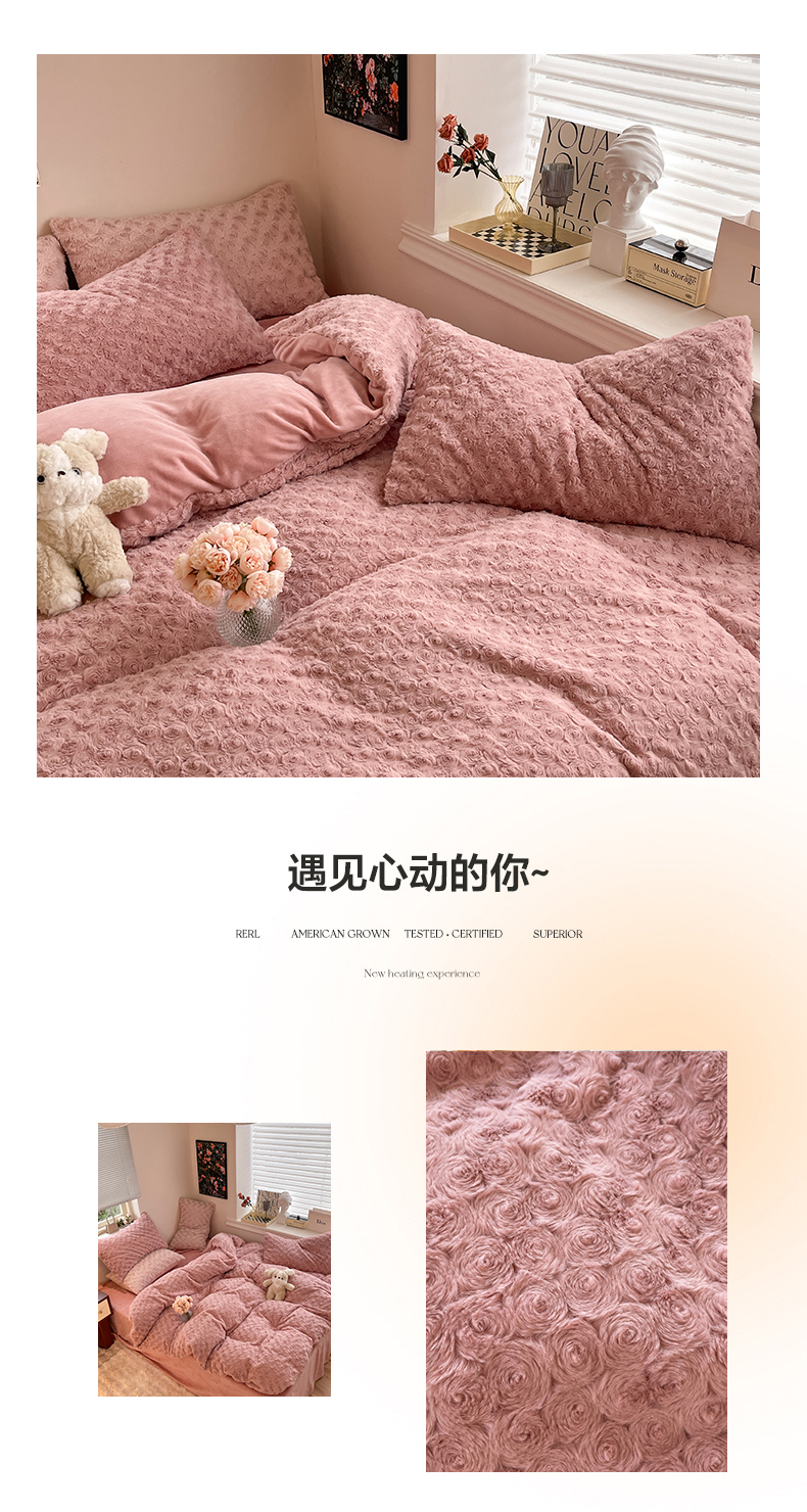 商品名称:七七 2025新款兔兔绒兔毛绒四件套 粉玫瑰