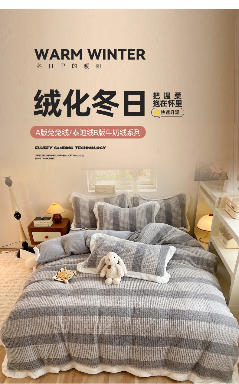 商品名称:绒世界 2024新款泰迪绒兔绒牛奶绒四件套 泰迪绒-高级灰