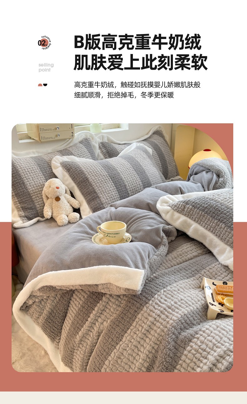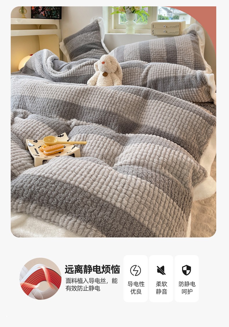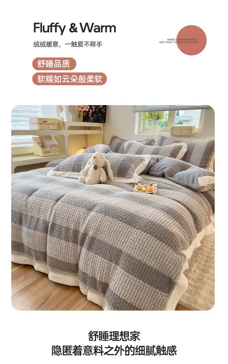 (总)绒世界 2025秋冬新款300克条纹兔绒床笠三件套,床笠款-雪灰,床笠款-卡其,床笠款-魔幻灰,床笠款-墨绿,床笠款-森林绿,床笠款-棕灰