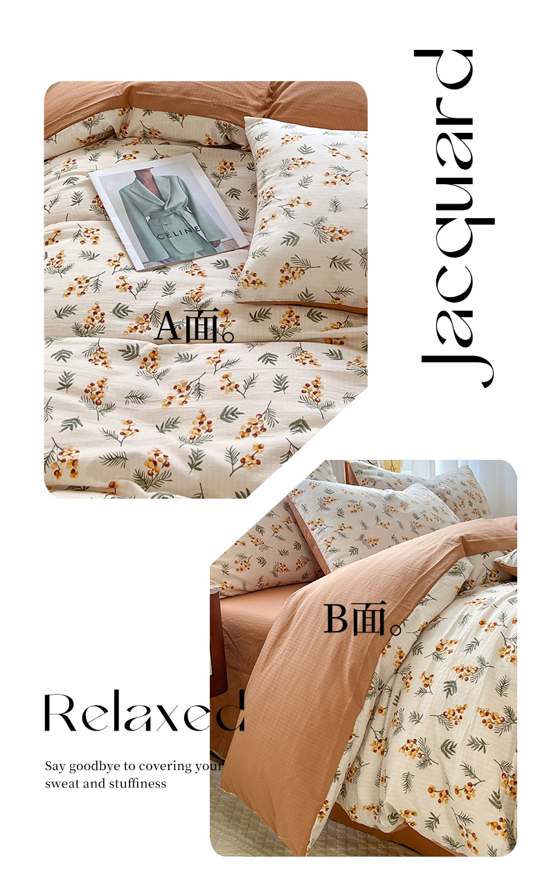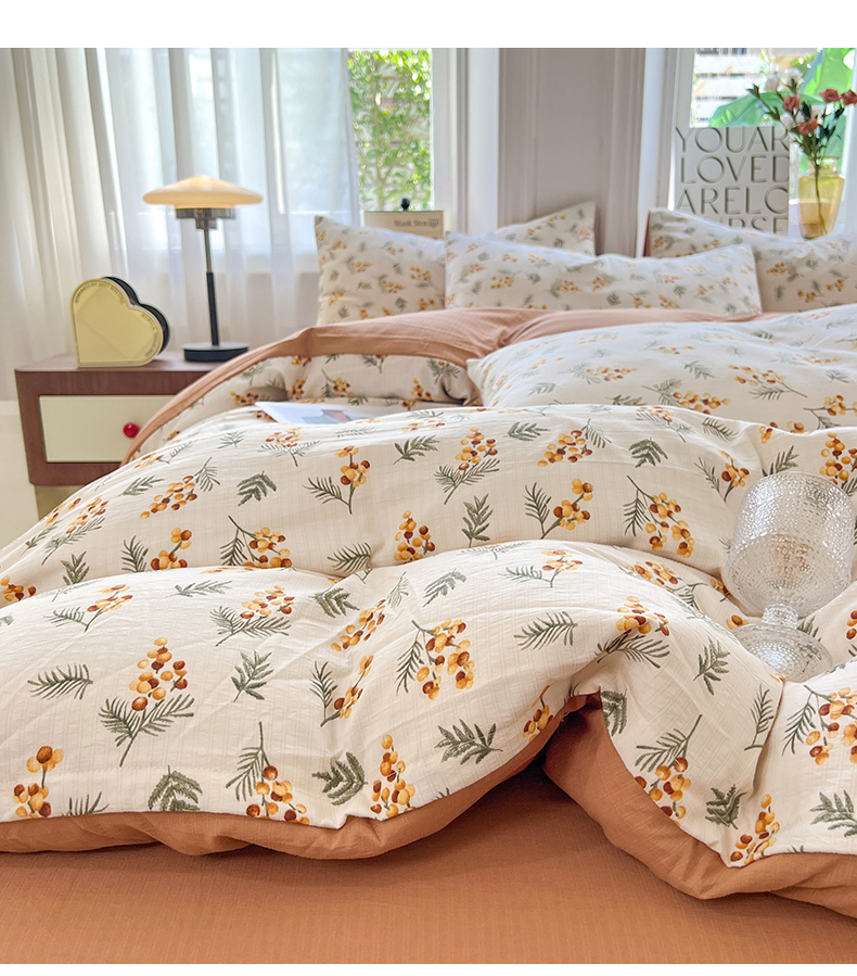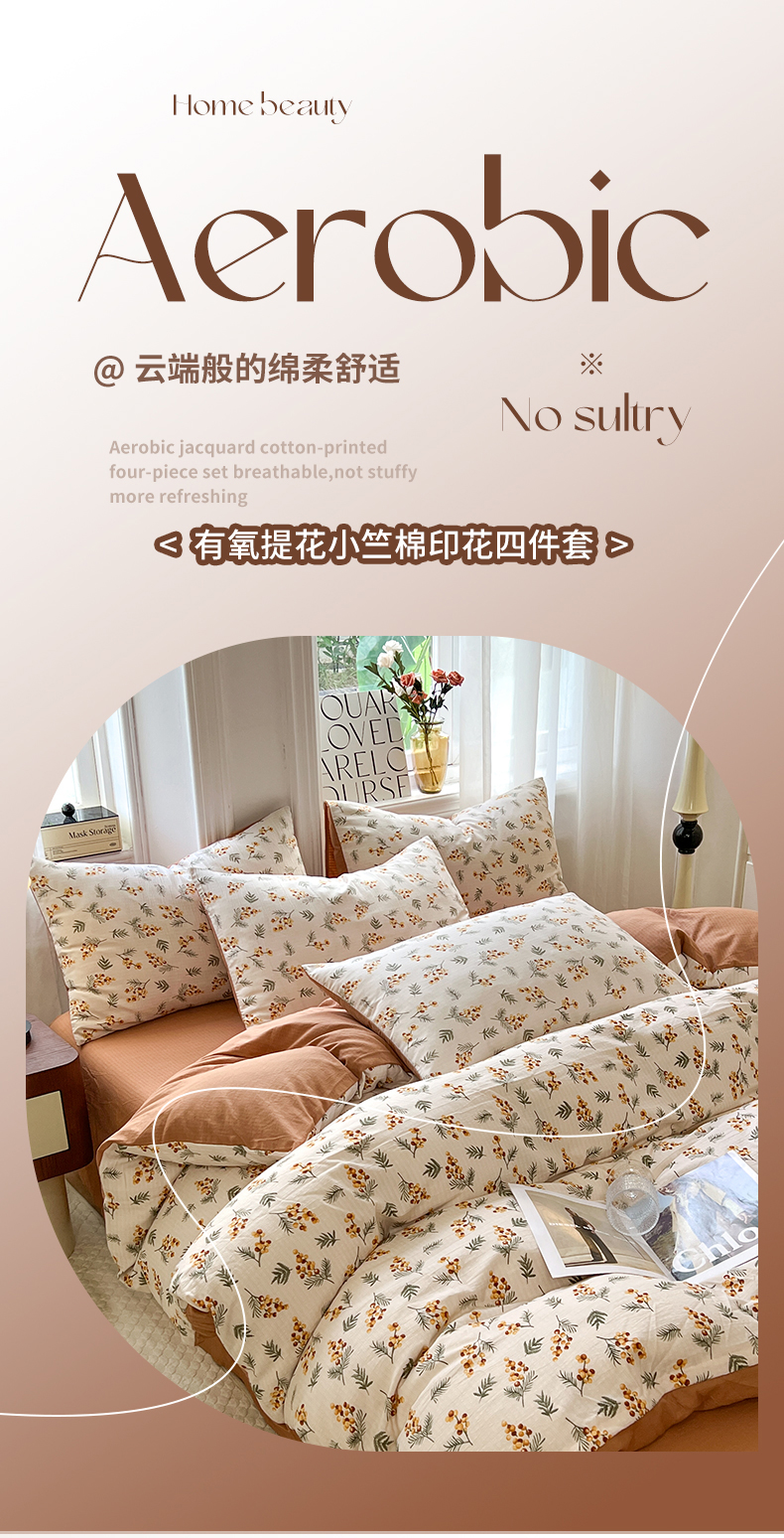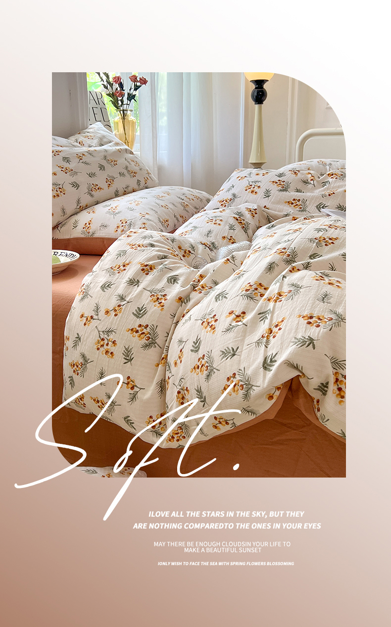 当前位置: 91家纺网 > 商品网购 > 床品套件 > 四件套 > 提花四件套 > 妖妖家纺 2023新款有氧提花小竺棉印花四件套 蜜语