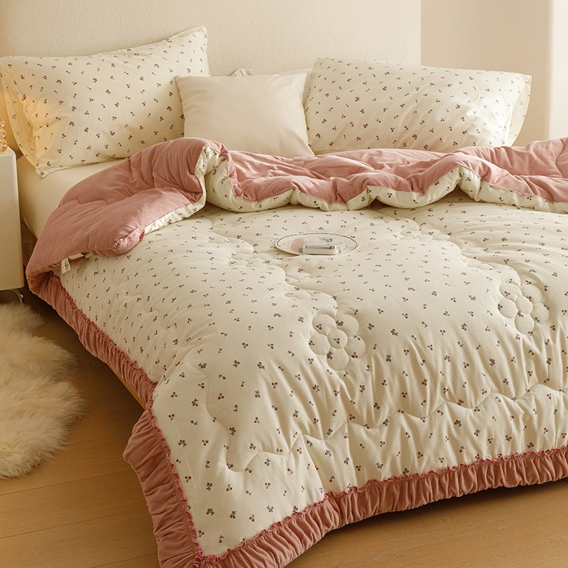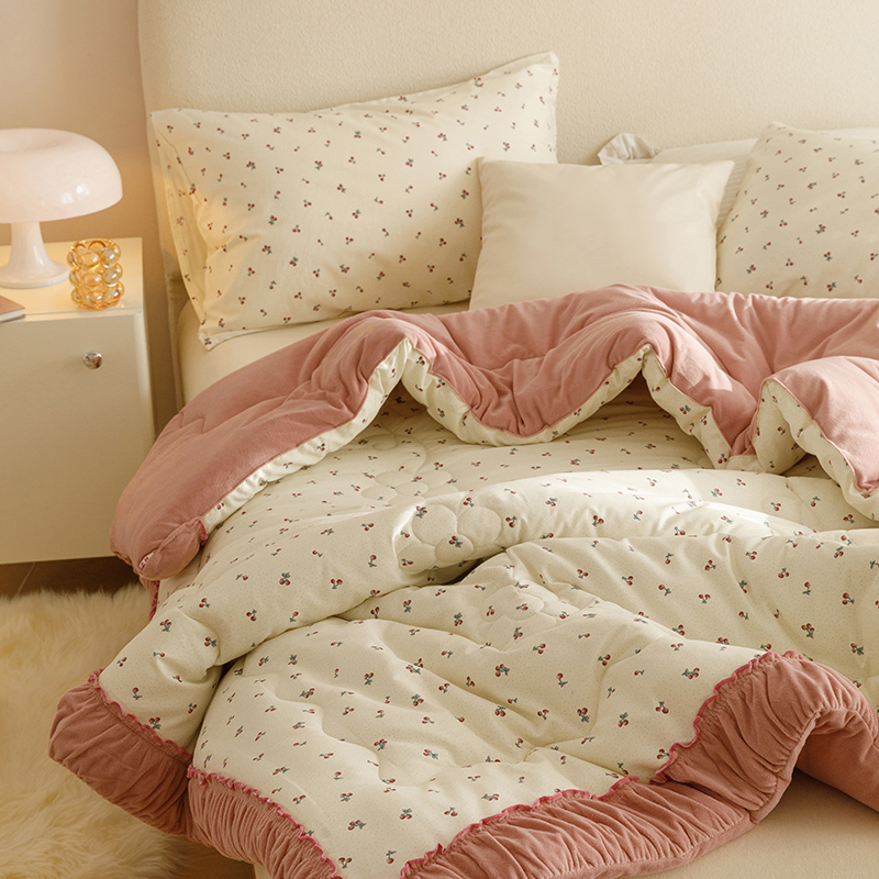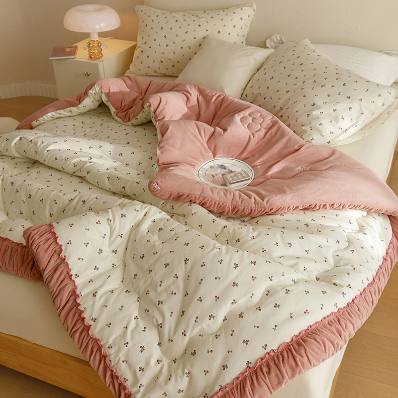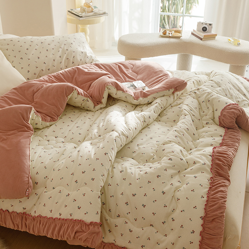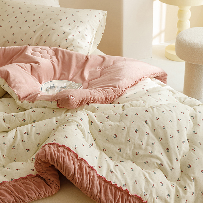 有货 2023秋冬新款韩式全棉保暖一体被 快乐樱桃