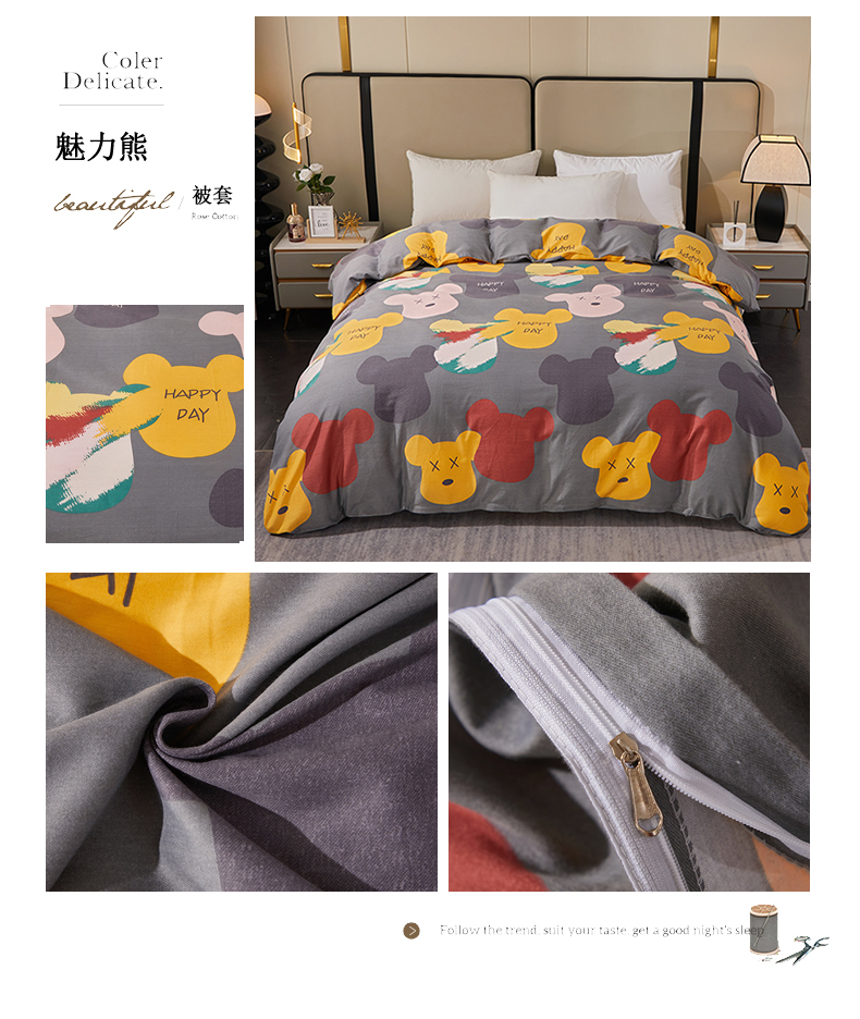 商品名称:晶缦 2023新款格林系列全棉活性磨毛单被套 魅力熊
