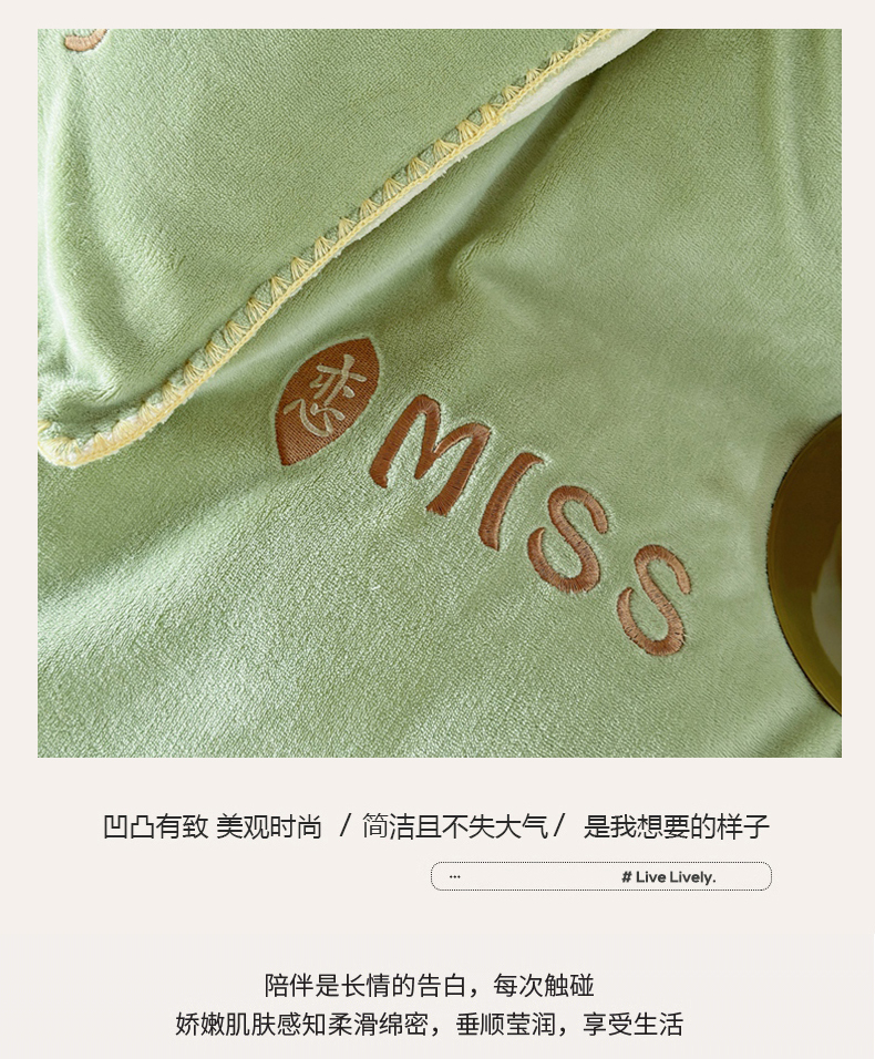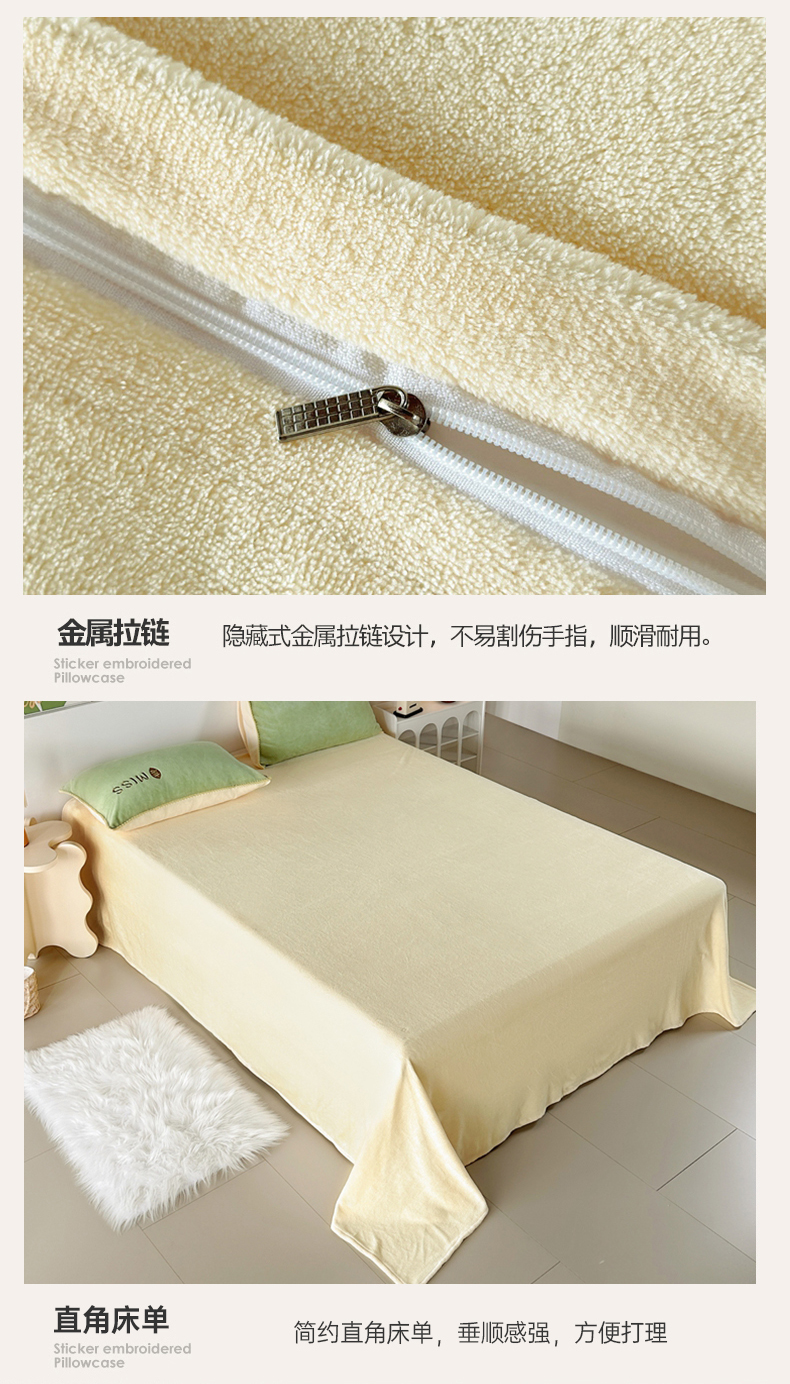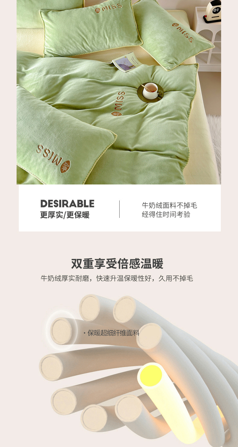当前位置: 91家纺网 > 商品网购 > 床品套件 > 四件套 > 牛奶绒四件套 > 眷恋 2024新款贝壳边牛奶绒刺绣四件套 恋-云川绿+米黄
