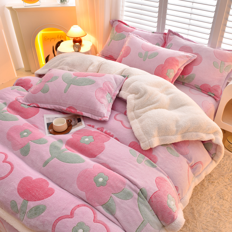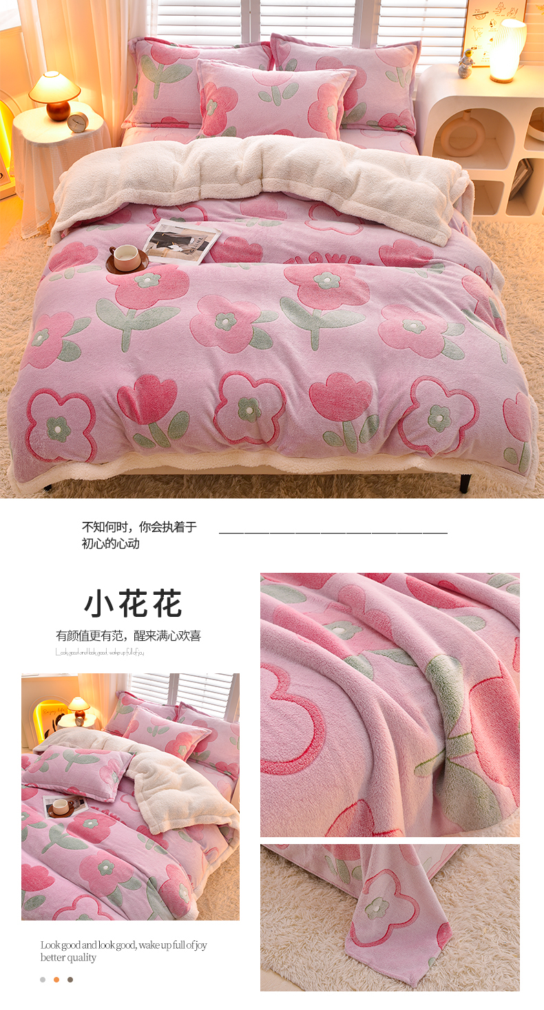 同田家纺 2023年新款雪花绒&羊羔绒四件套 小花花