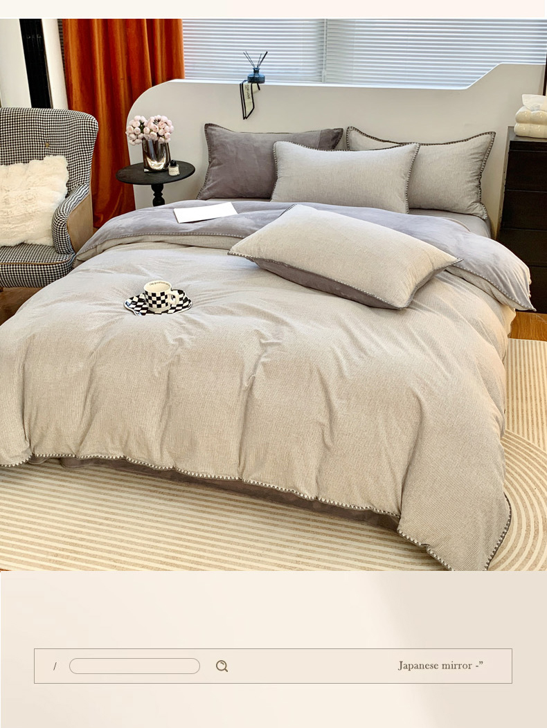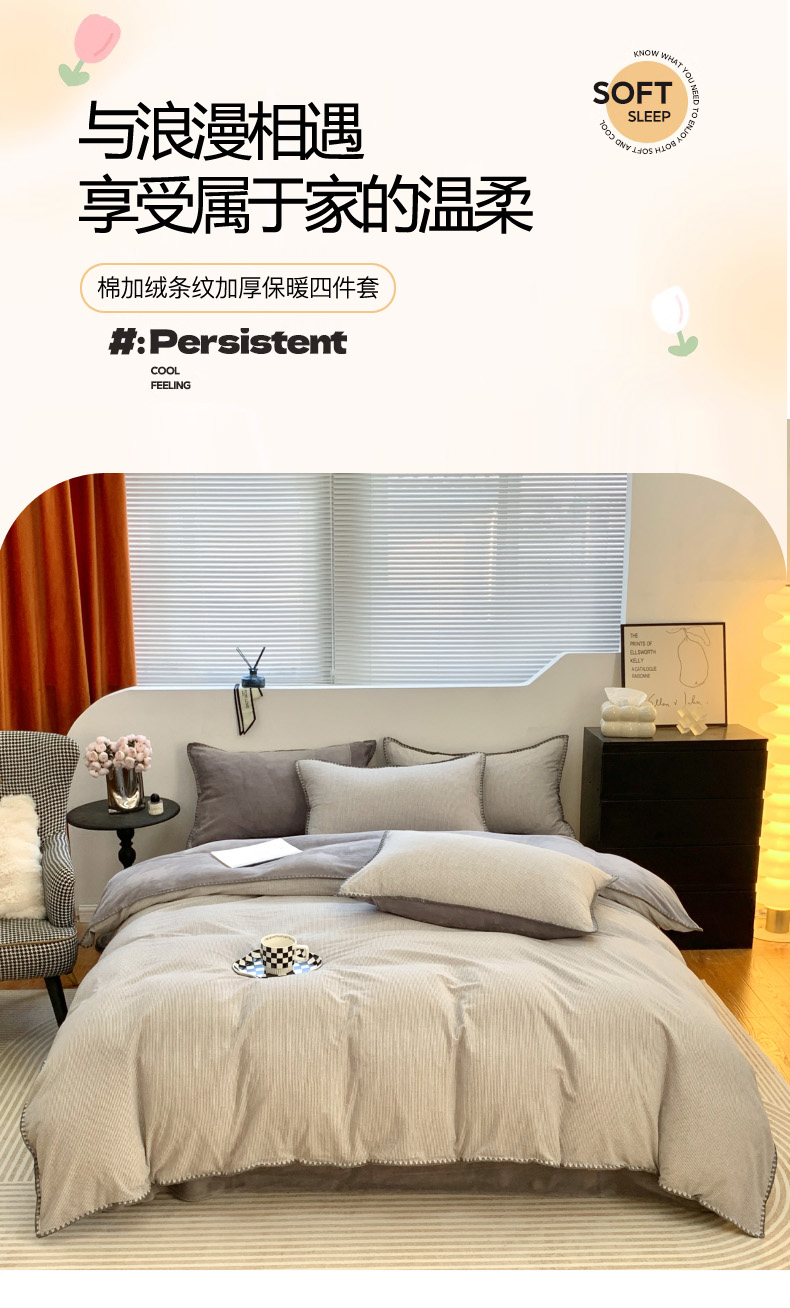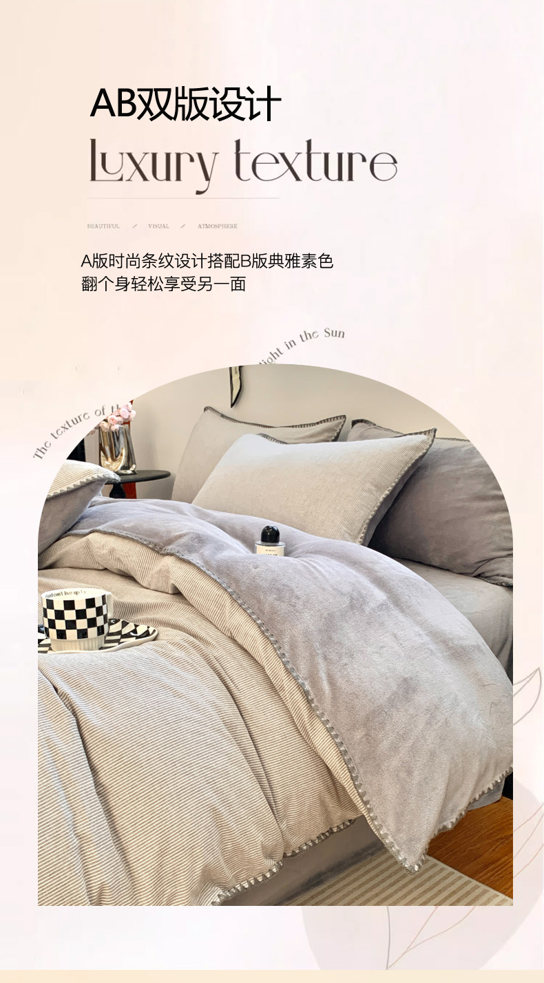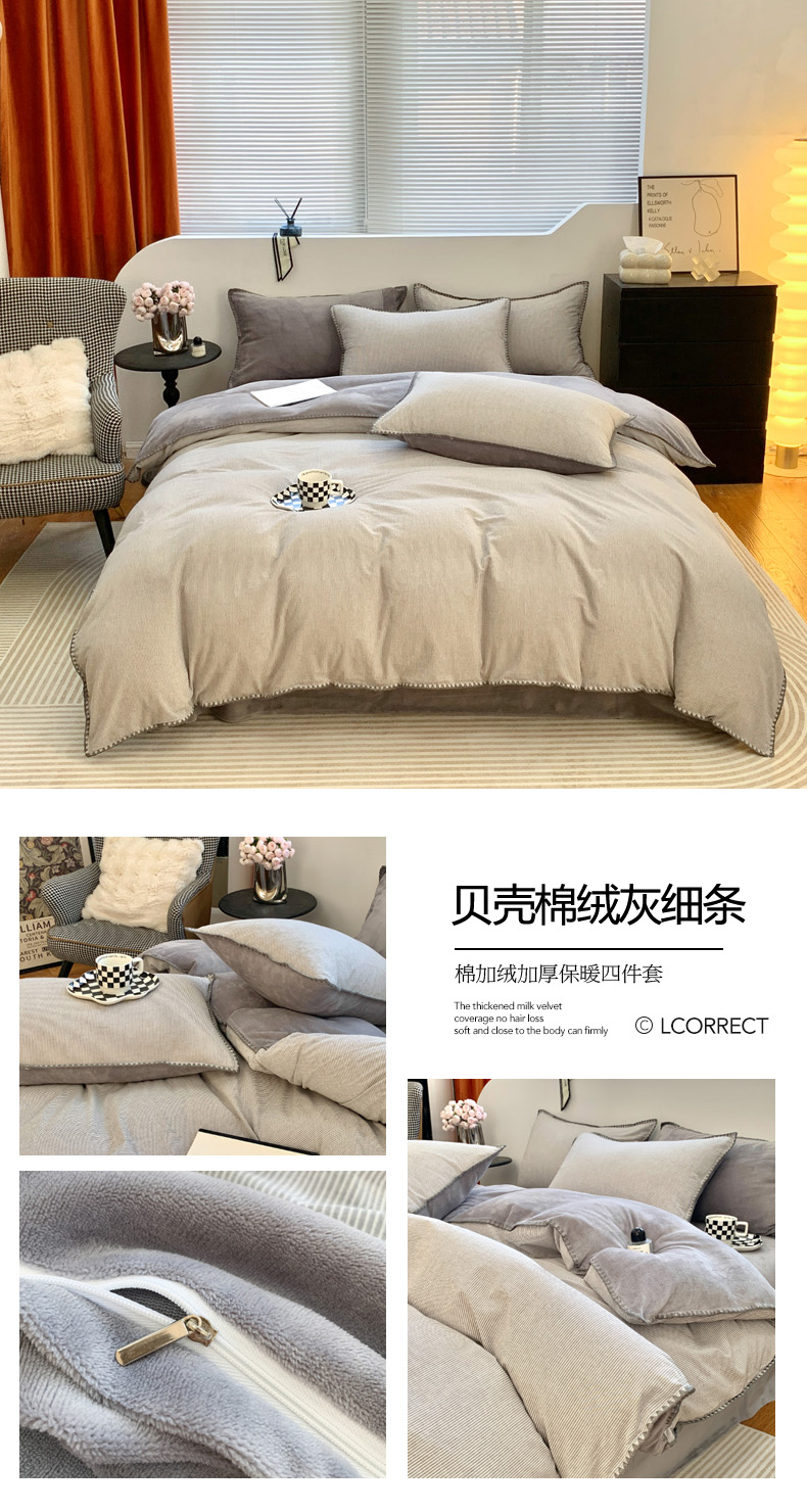 当前位置: 91家纺网 > 商品网购 > 床品套件 > 四件套 > 牛奶绒四件套 > 柠馨 2023贝壳边全棉水洗棉牛奶绒四件套含买家秀 贝壳棉绒灰细条