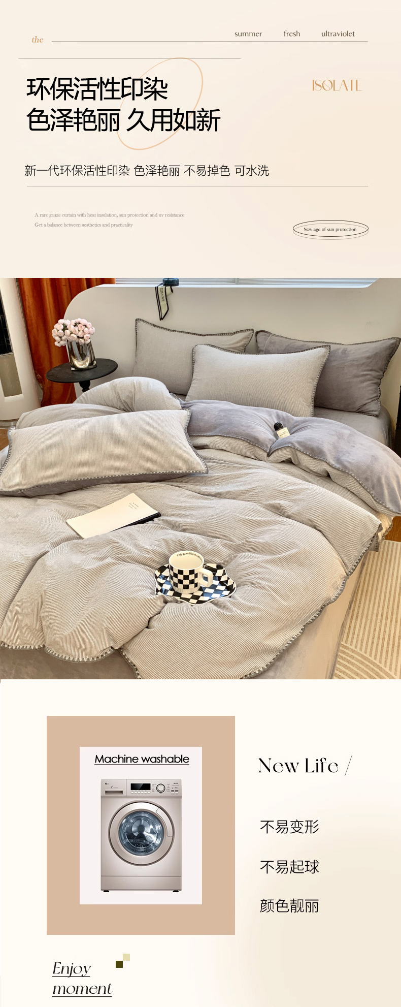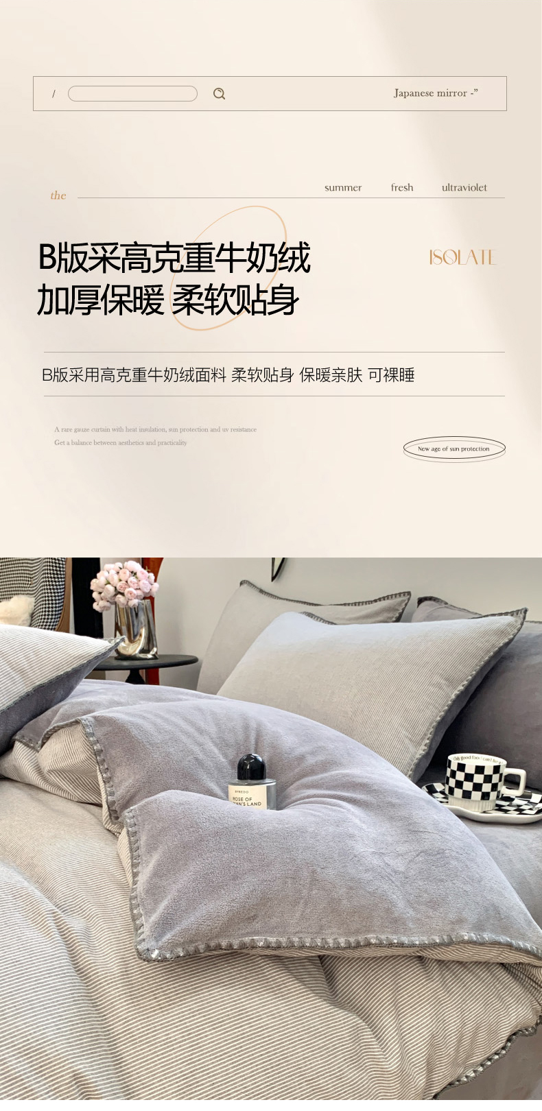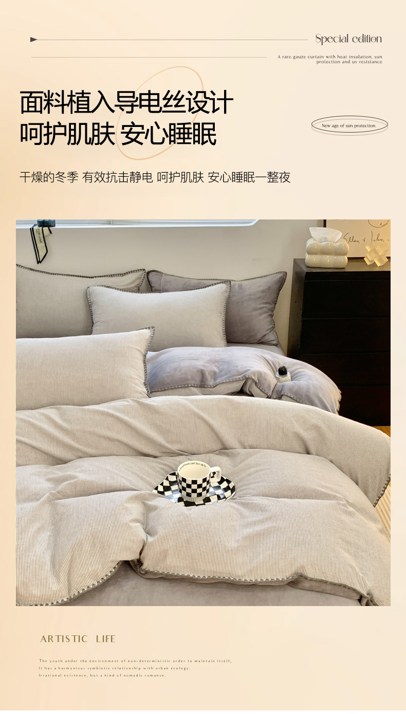 当前位置: 91家纺网 > 商品网购 > 床品套件 > 四件套 > 牛奶绒四件套 > 柠馨 2023贝壳边全棉水洗棉牛奶绒四件套含买家秀 贝壳棉绒灰细条