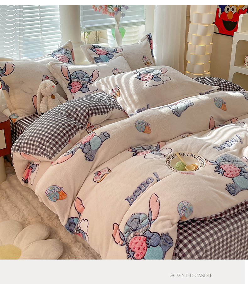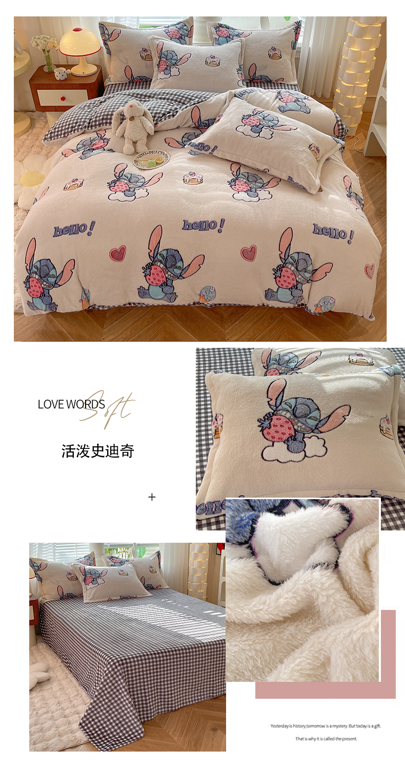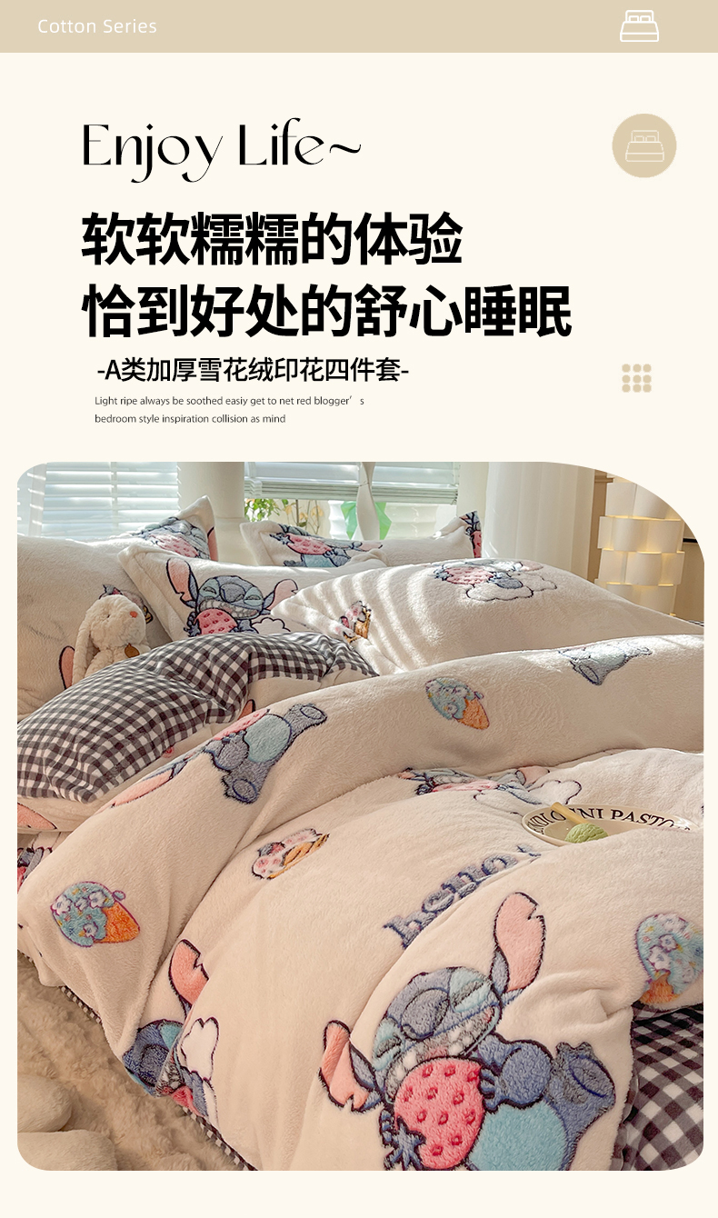 当前位置: 91家纺网 > 商品网购 > 床品套件 > 四件套 > 全棉普通四件套 > 妖妖家纺 2023新款妖妖雪花绒单品三四件套 活泼史迪仔